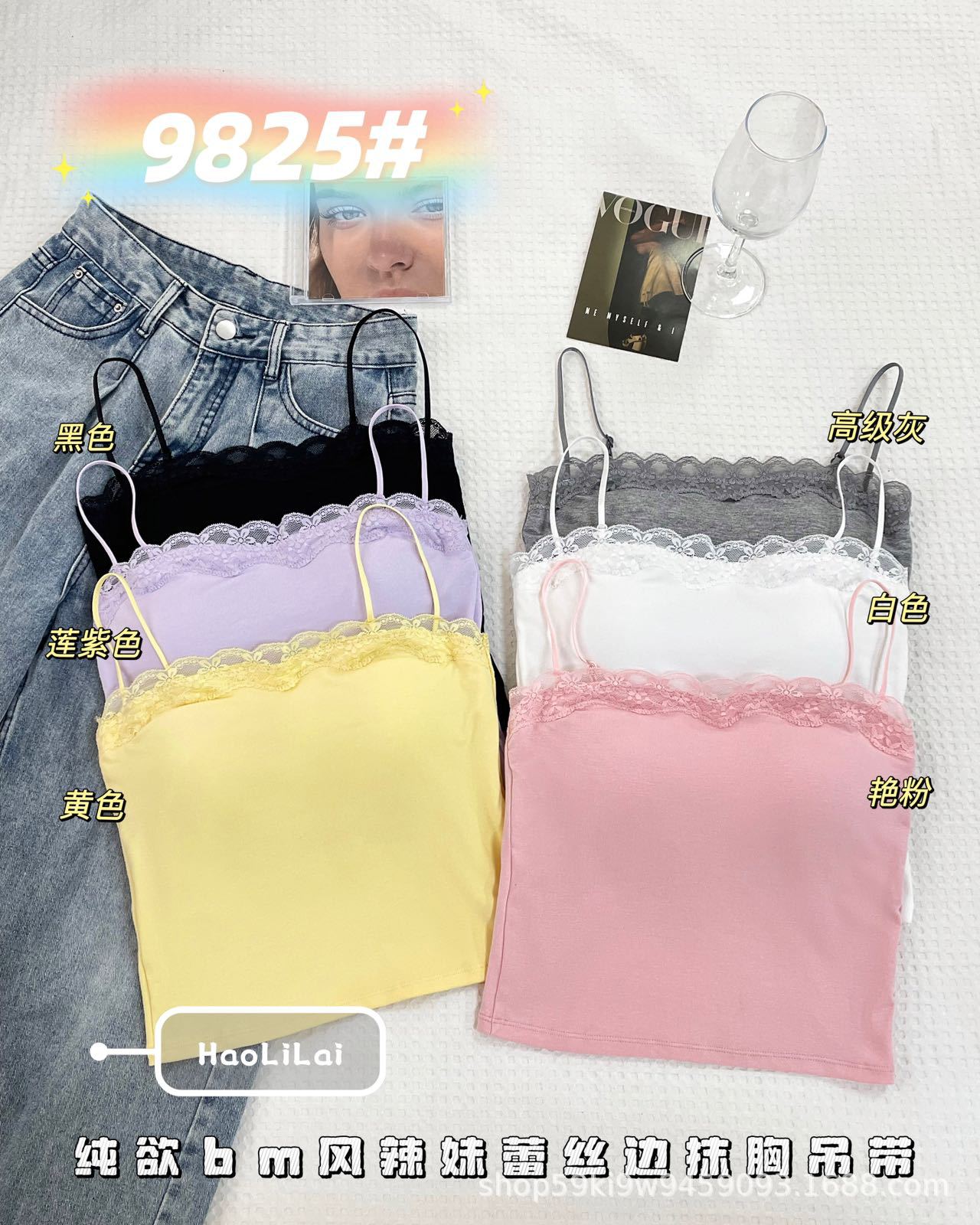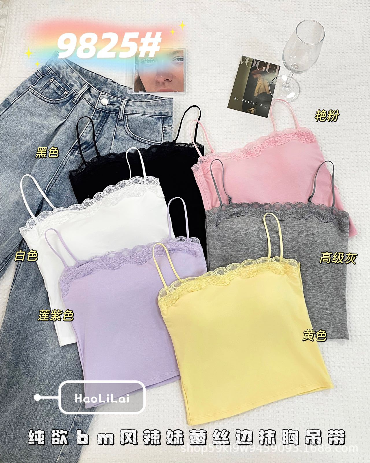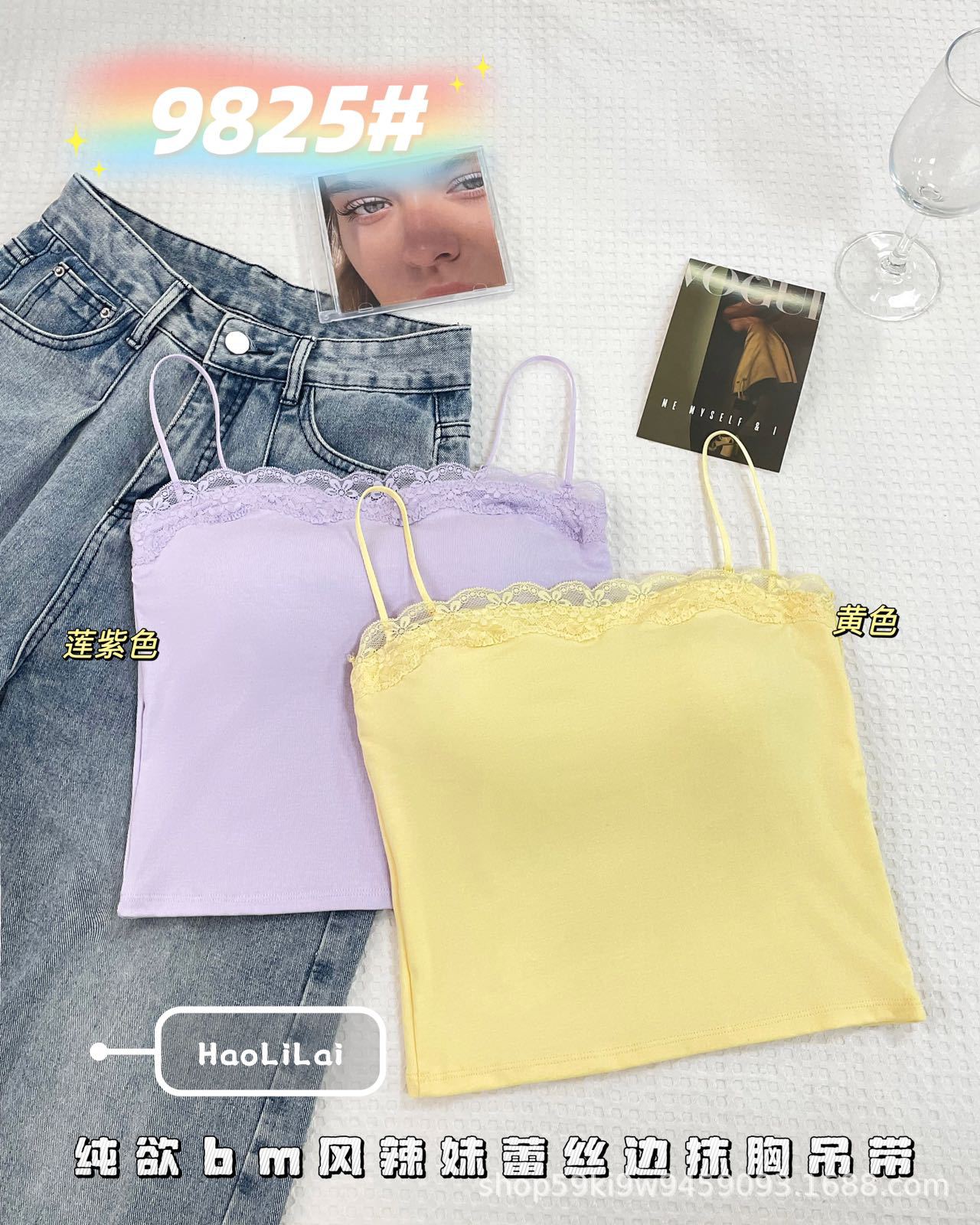 9825 # 미국 스파이스 소녀 피부 친화적 인 스티칭 레이스 카미 솔 여름 높은 허리 슬림 핏 외부 착용 내부 착용스토어 가기