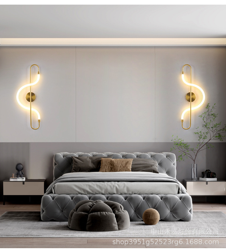 창조적 인 포스트 모던 간단한 벽 램프 거실 배경 벽 호텔 침구 장식 램프 북유럽 빛 럭셔리 긴 벽 램프스토어 가기