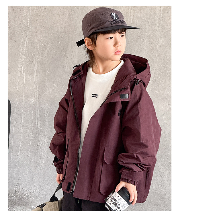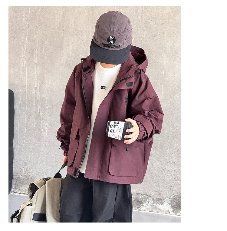 어린이 2025 봄과 가을 새로운 후드 자켓 방풍 및 방수 툴링 재킷 중 · 대형 어린이 트렌디 자켓