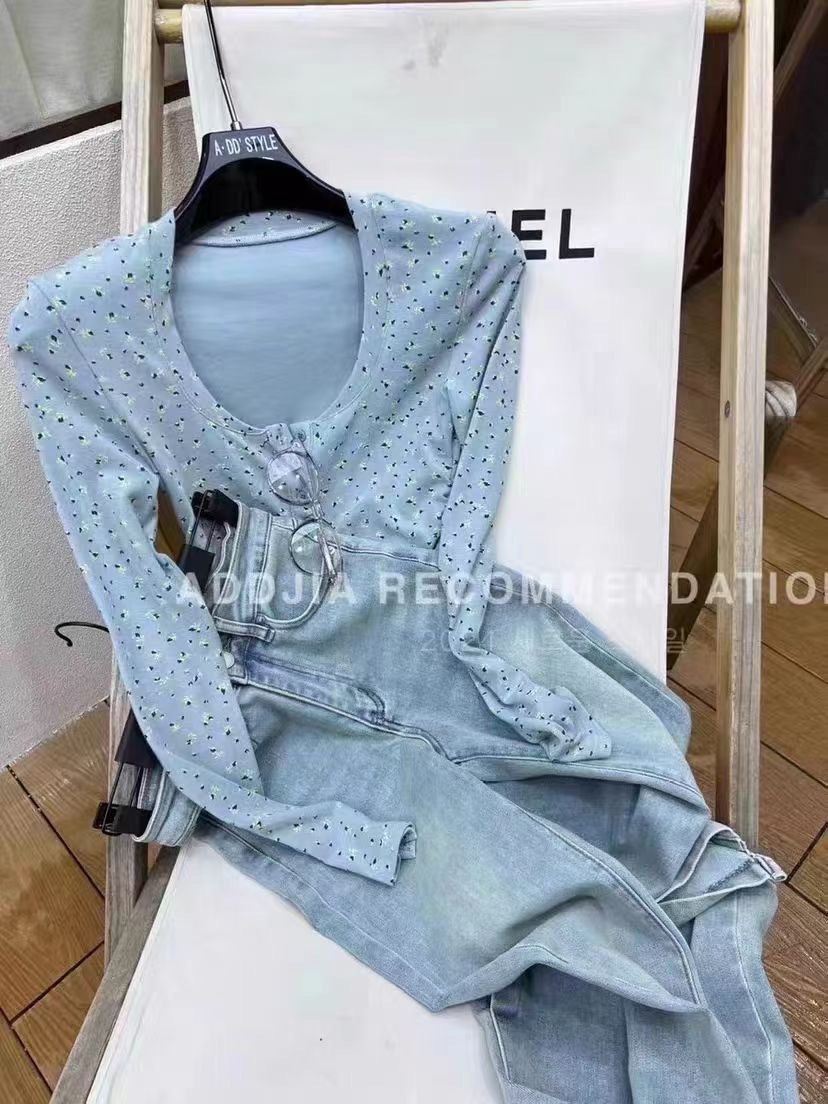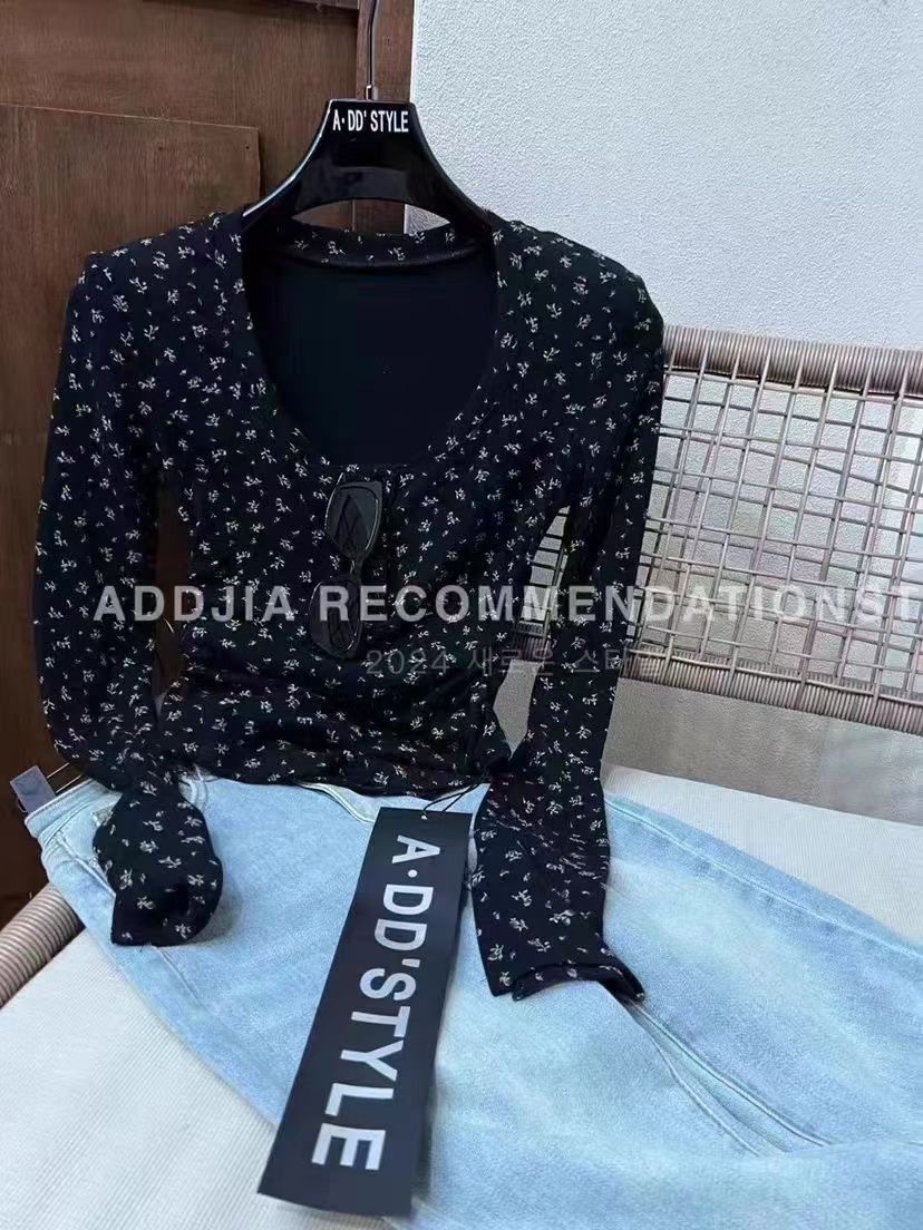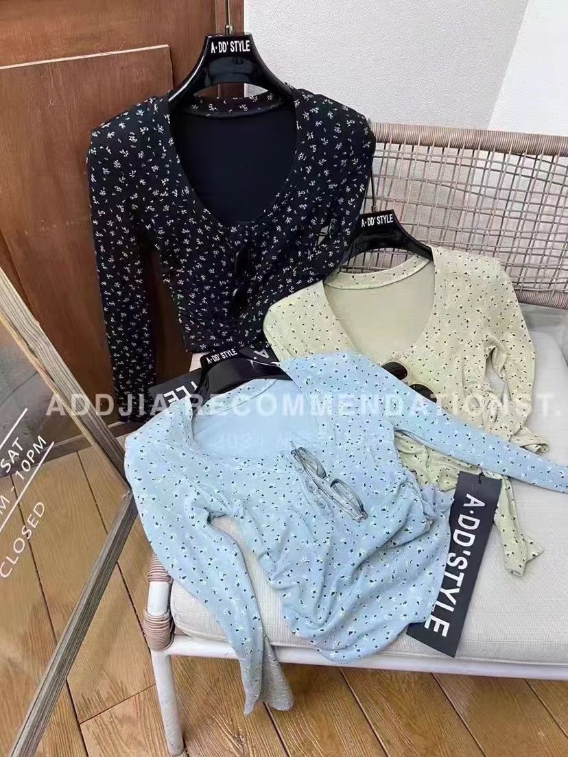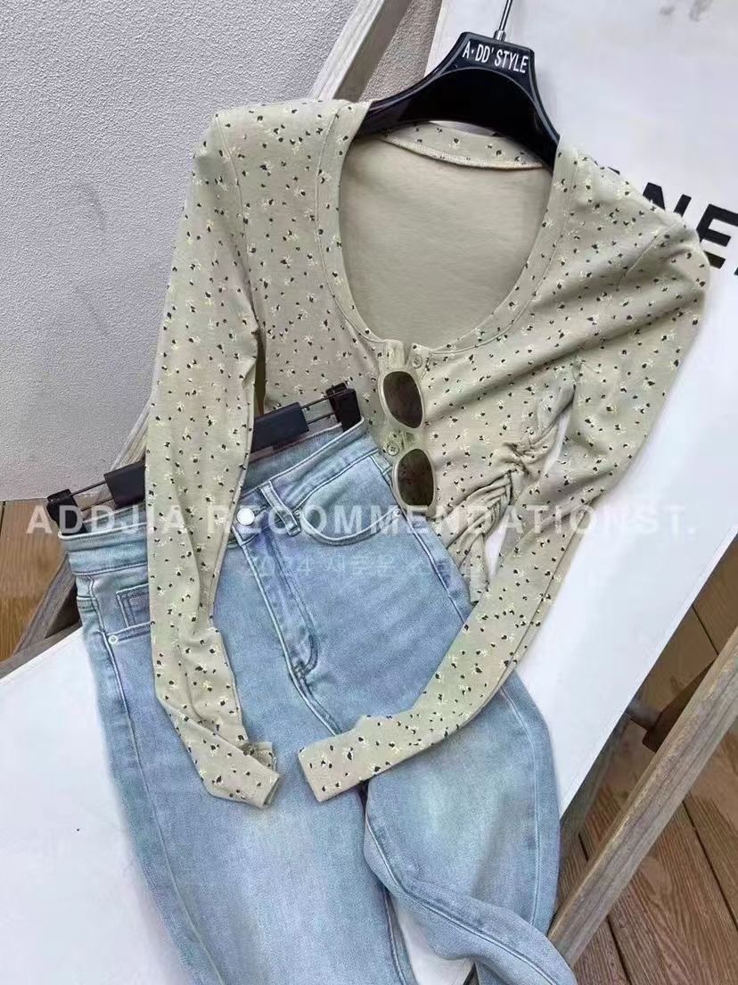 이른 봄베이스 셔츠 스퀘어 칼라 긴팔 티셔츠 여성 봄과 가을 2024 새로운 핫 걸 슬림 핏 쇼트 탑스토어 가기
