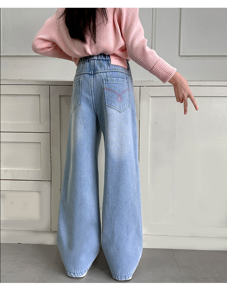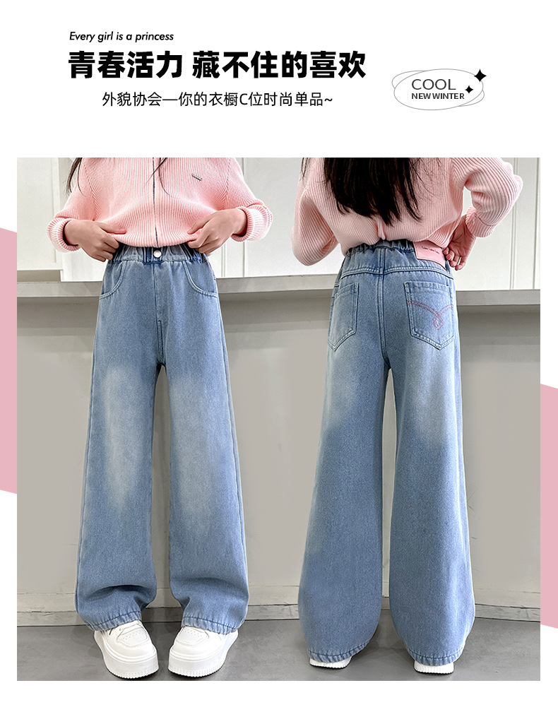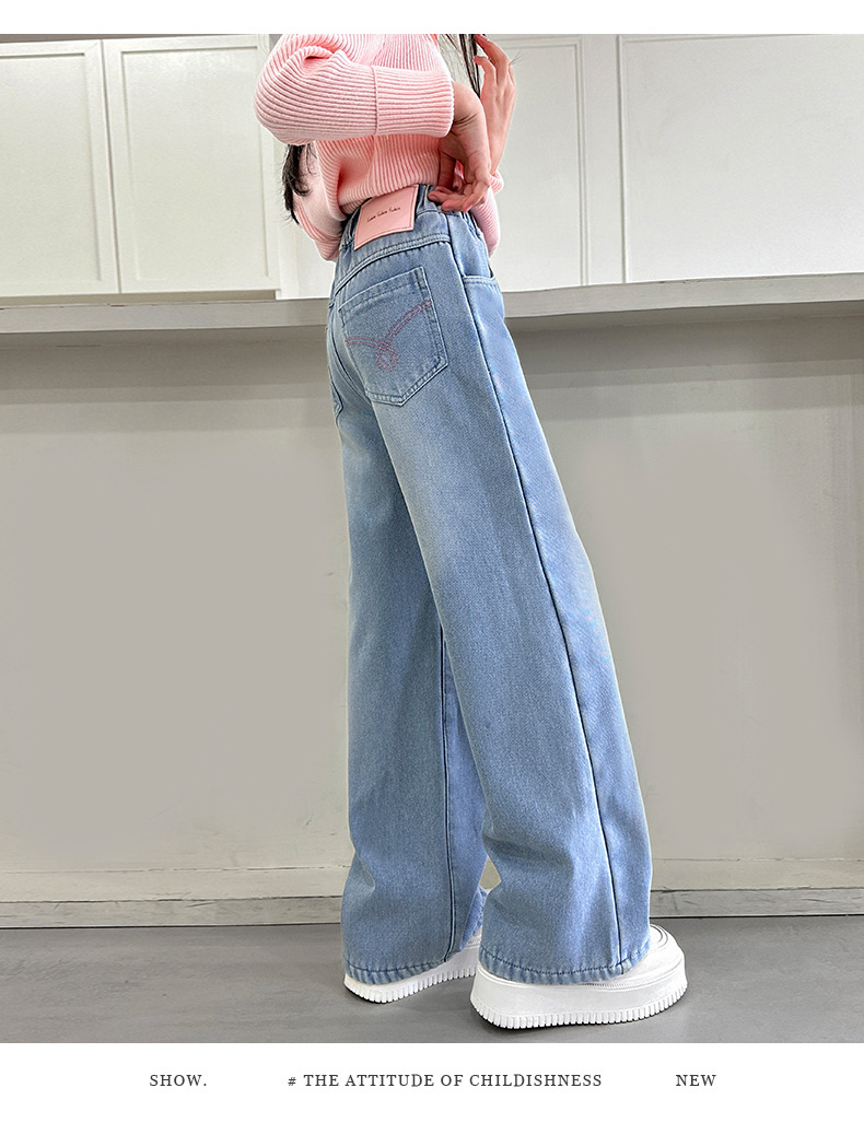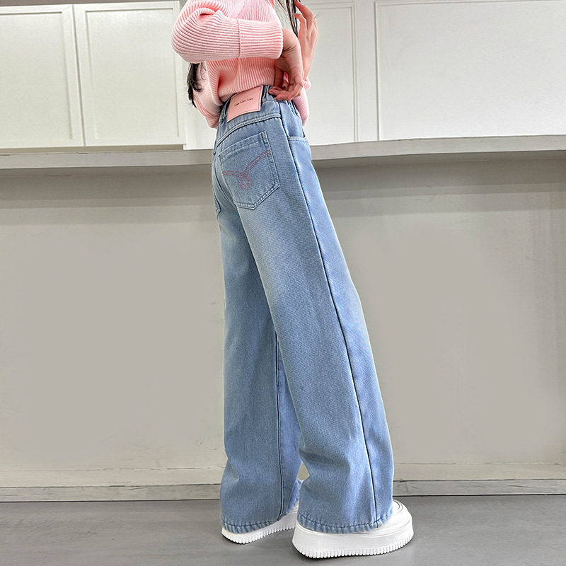 여아 바지 봄 가을 2026 신상 스타일리쉬 청바지 중대형 아동용 다용도 슬림핏 스트레이트 와이드 팬츠 트렌디한 디자인