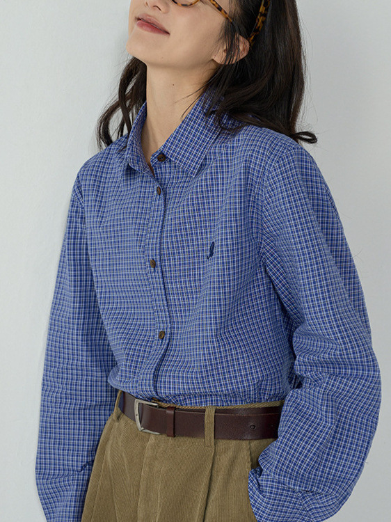 HAVE/RICE 레스토랑 Haiyan 일기 면 원사 염색 한국 레트로 조커 MIU 블루 격자 무늬 셔츠