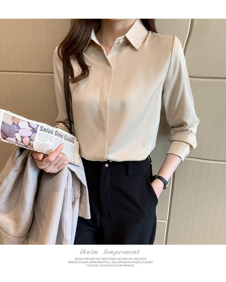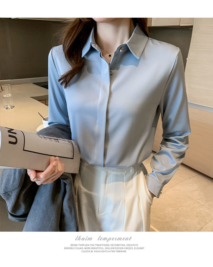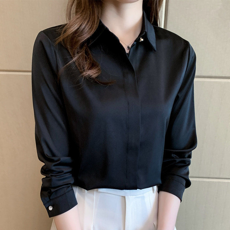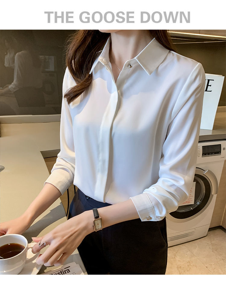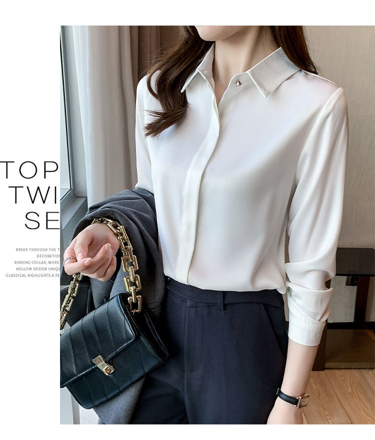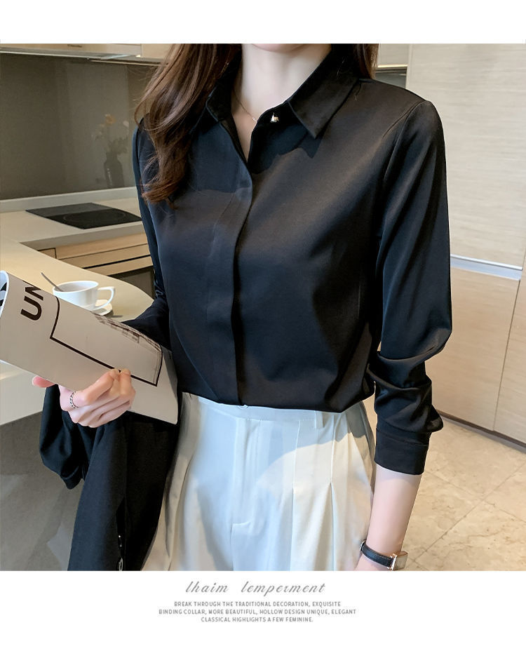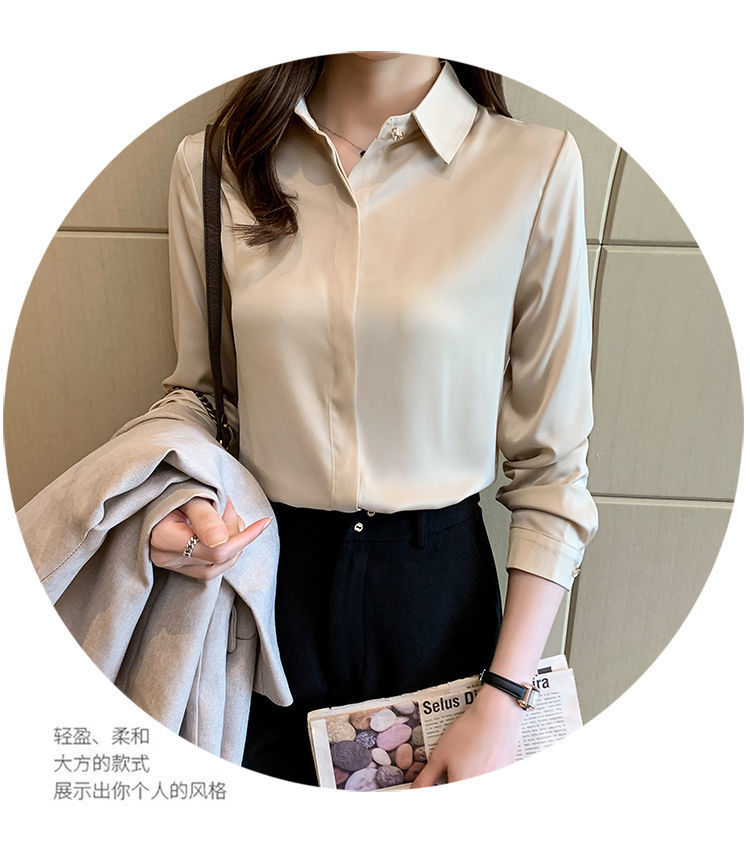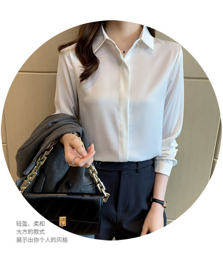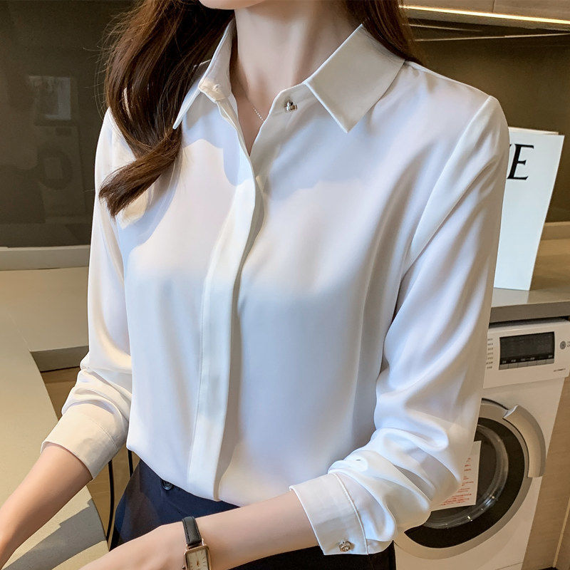 고급 새틴 화이트 셔츠 여성 전문 기질 패션 원피스 셔츠 작업장 여성 비 다림질 긴팔 탑