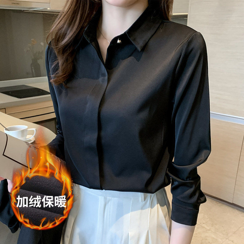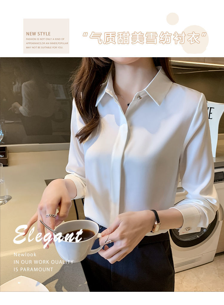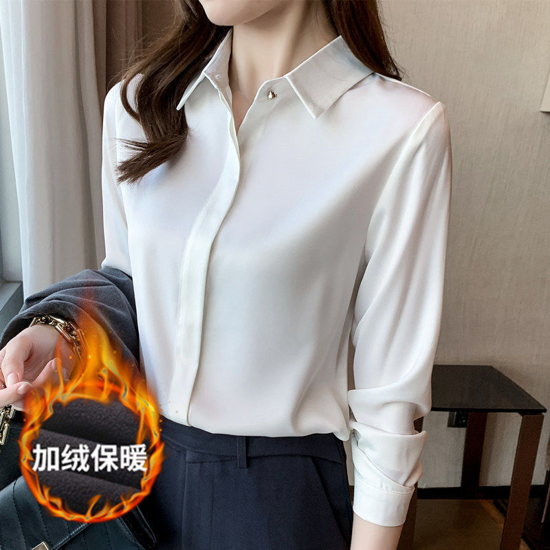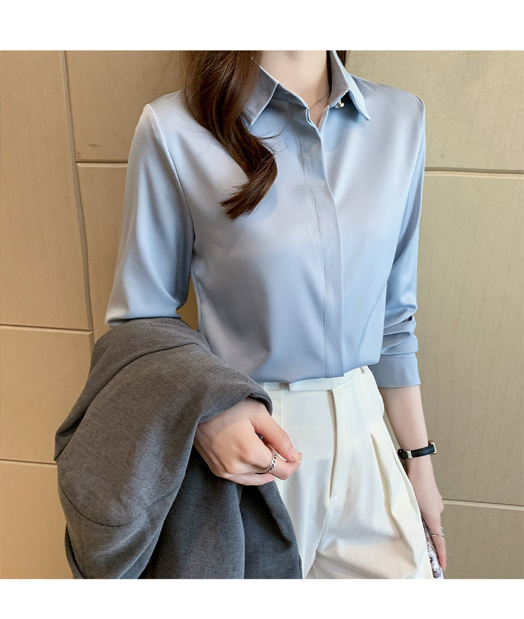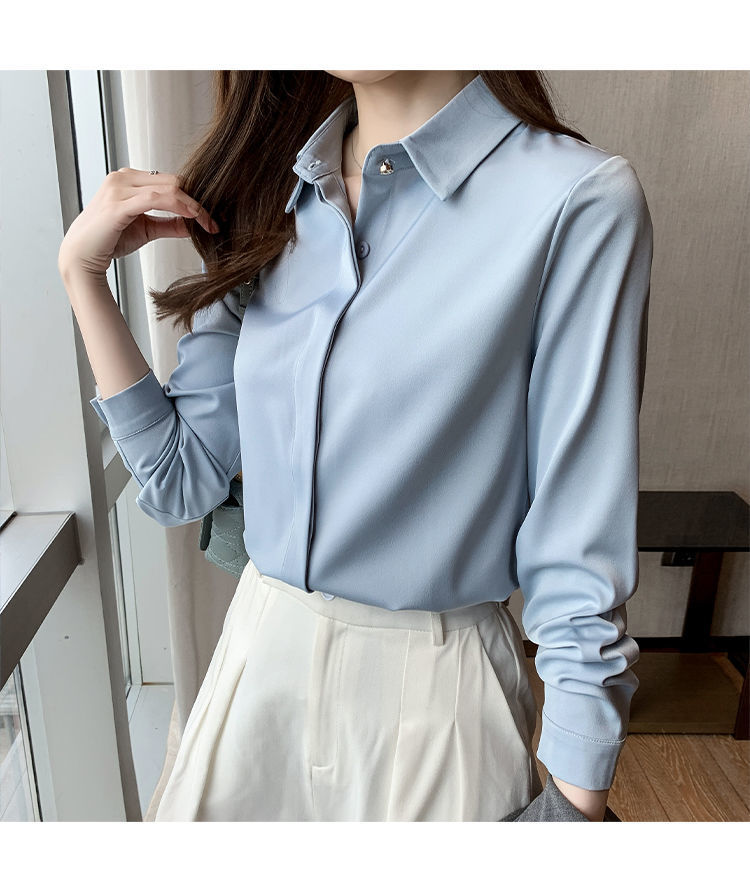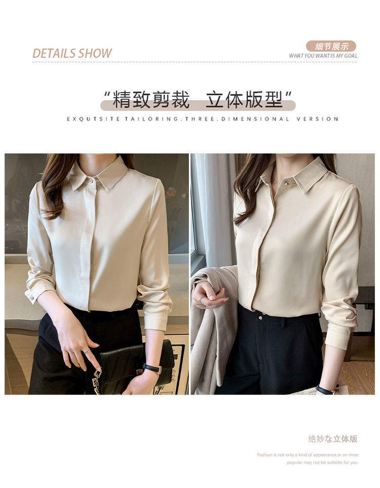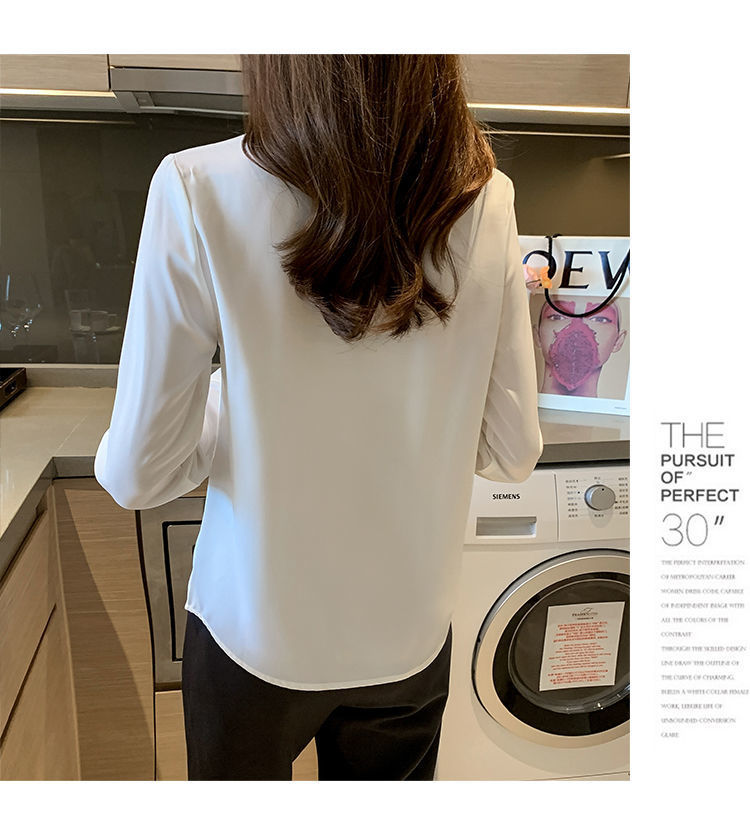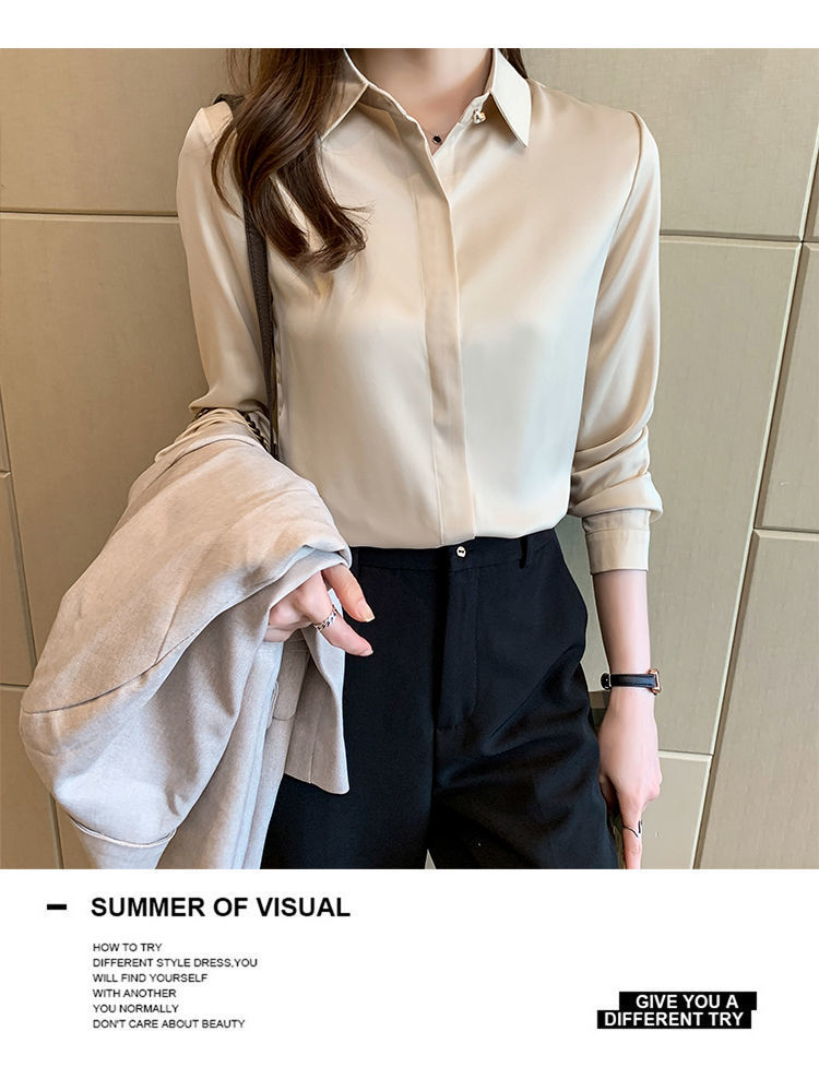 고급 새틴 화이트 셔츠 여성 전문 기질 패션 원피스 셔츠 작업장 여성 비 다림질 긴팔 탑