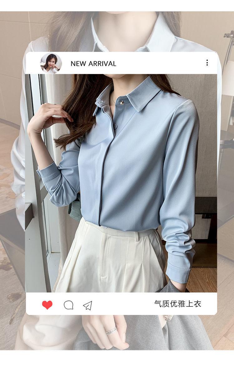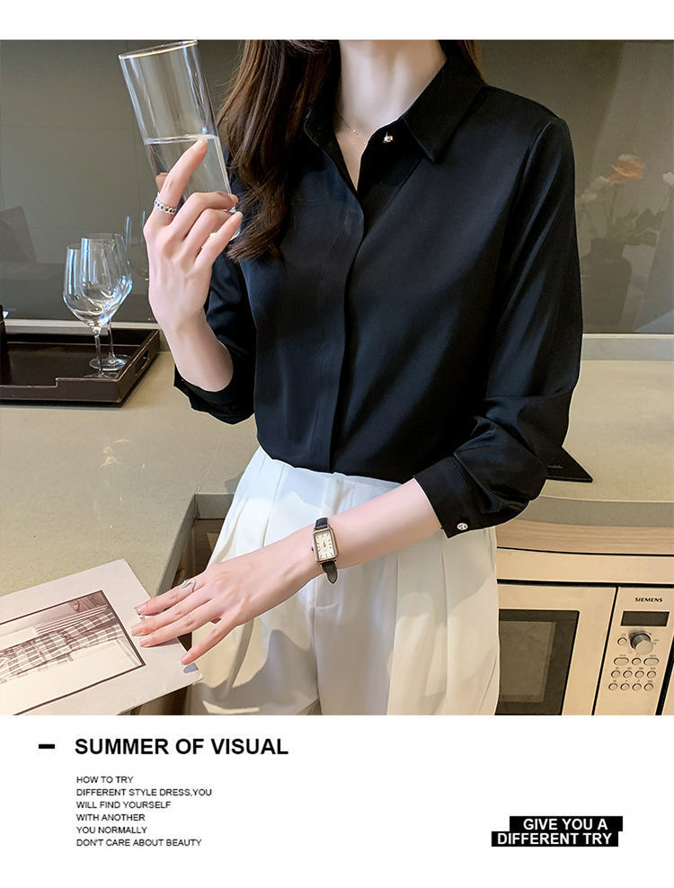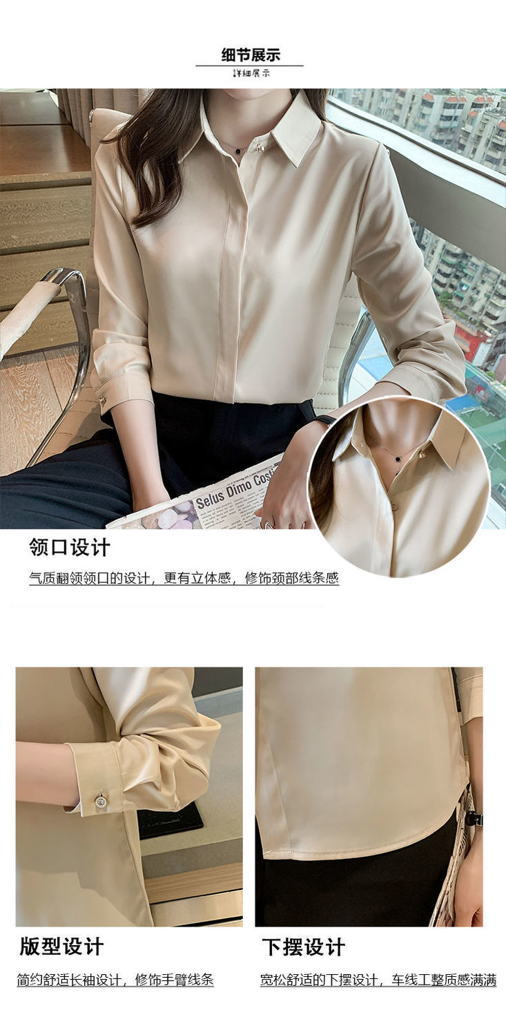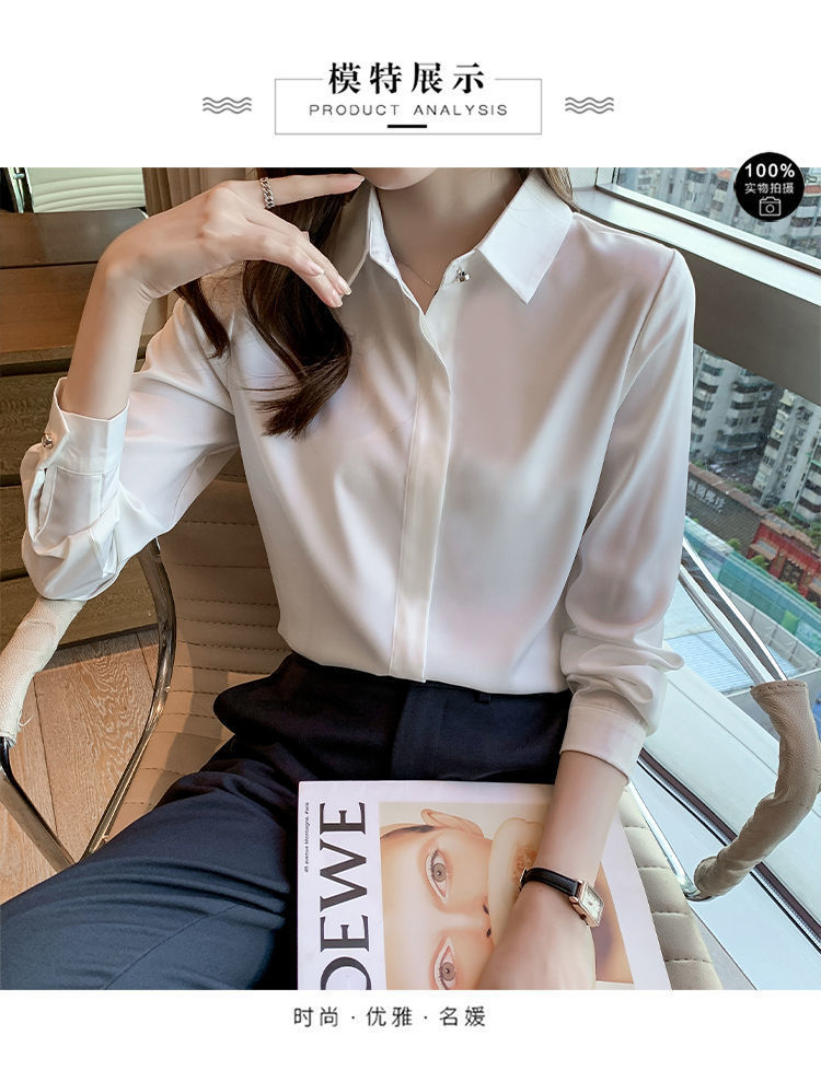 고급 새틴 화이트 셔츠 여성 전문 기질 패션 원피스 셔츠 작업장 여성 비 다림질 긴팔 탑스토어 가기