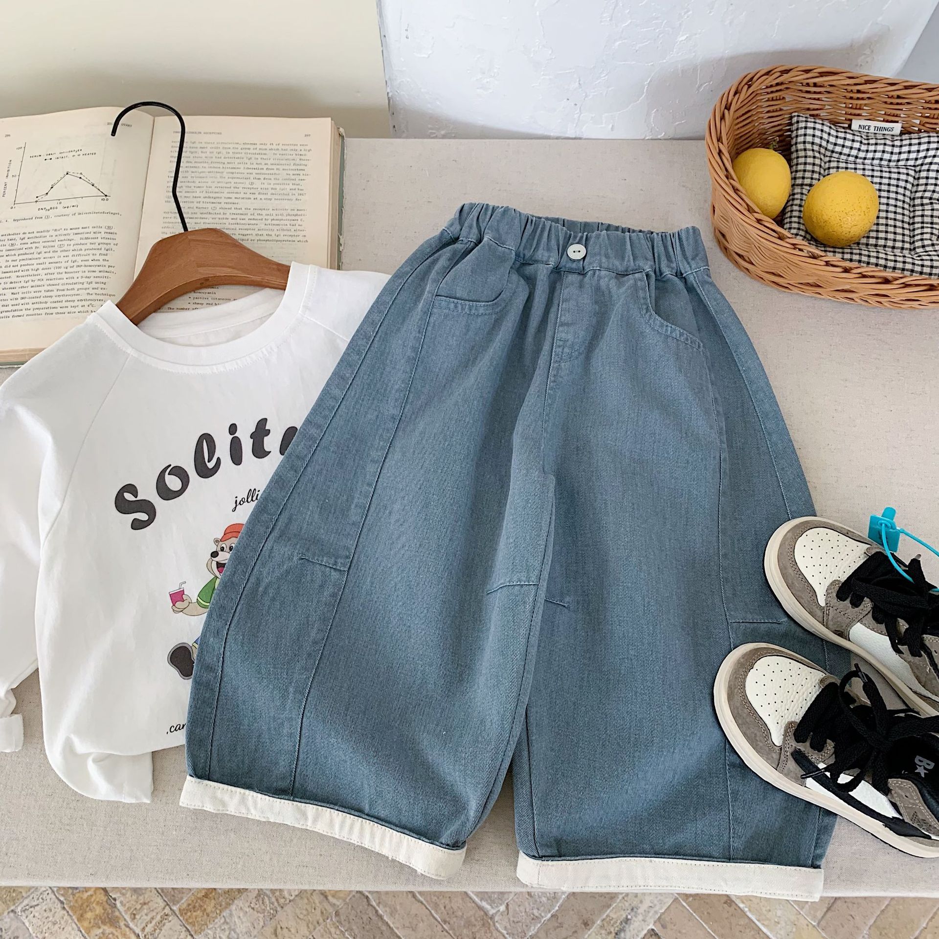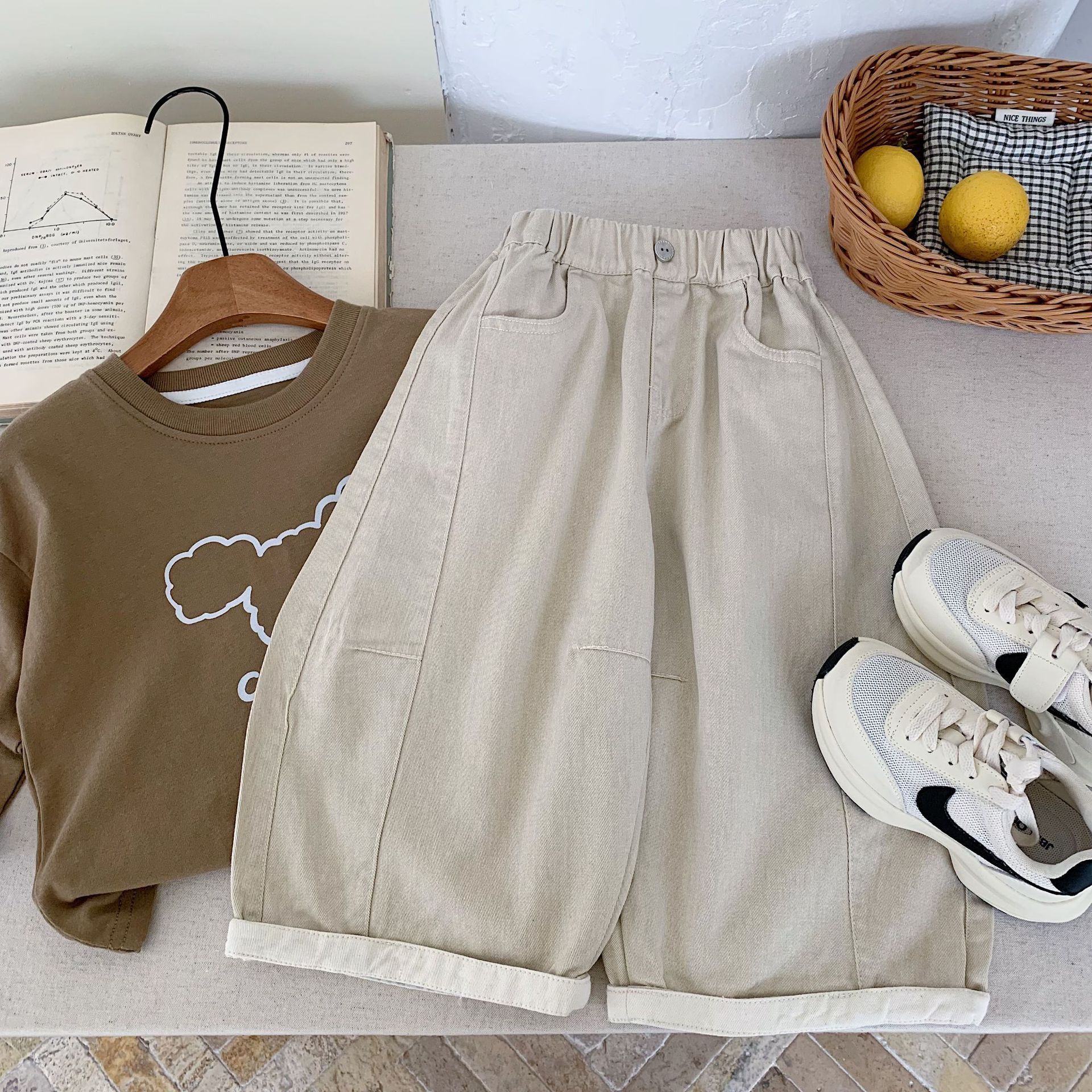 아동용 바지 Bangcheng 2026 봄 신상 남녀공용 밑단 접이식 단색 심플 캐주얼 팬츠 트렌디 H0129스토어 가기