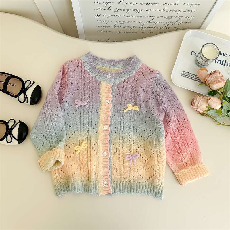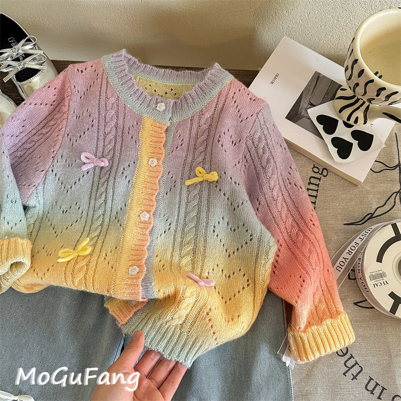 여자 스웨터 봄 2025 새로운 베이비 카디건 코트 스웨터 그라디언트 스웨터 청바지 세트 트렌디스토어 가기