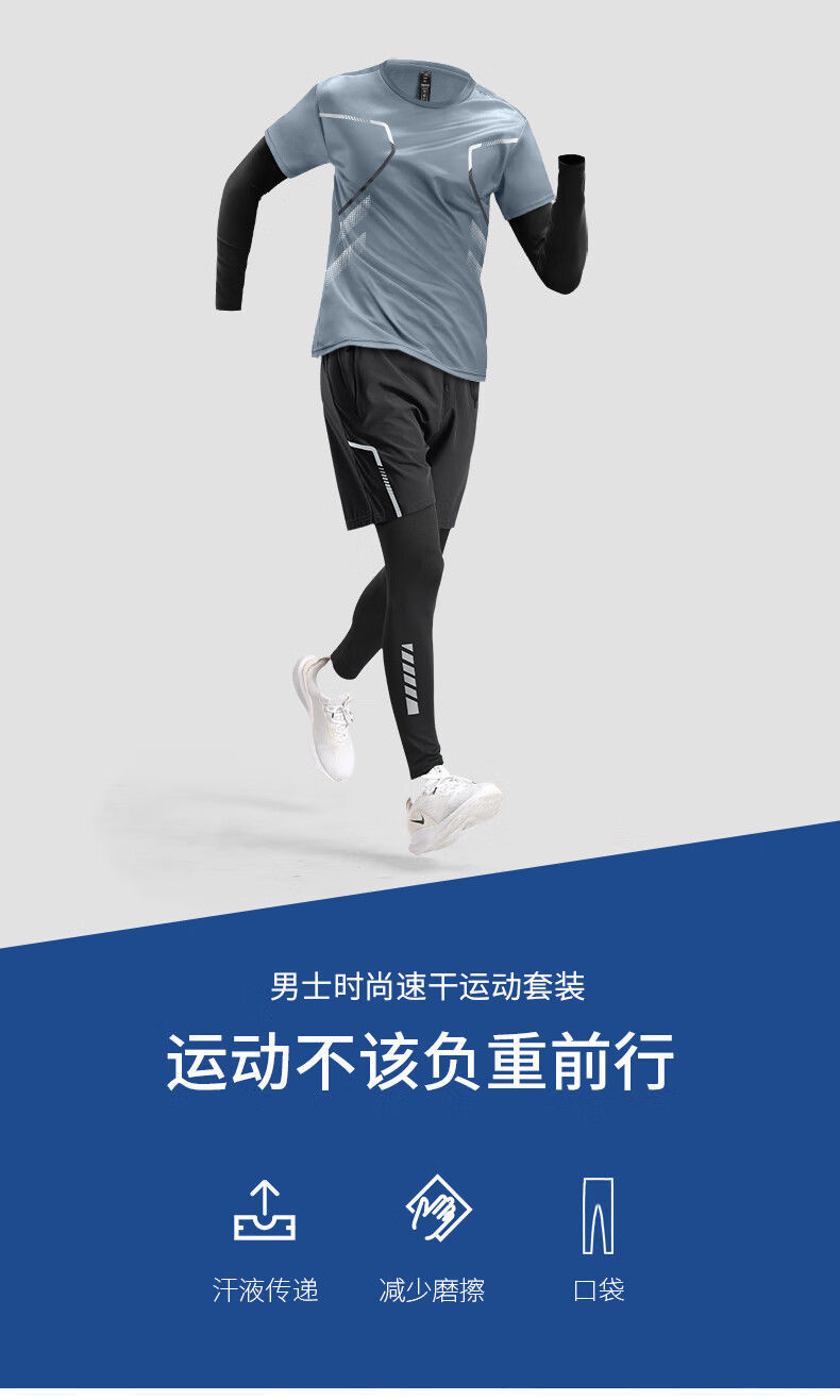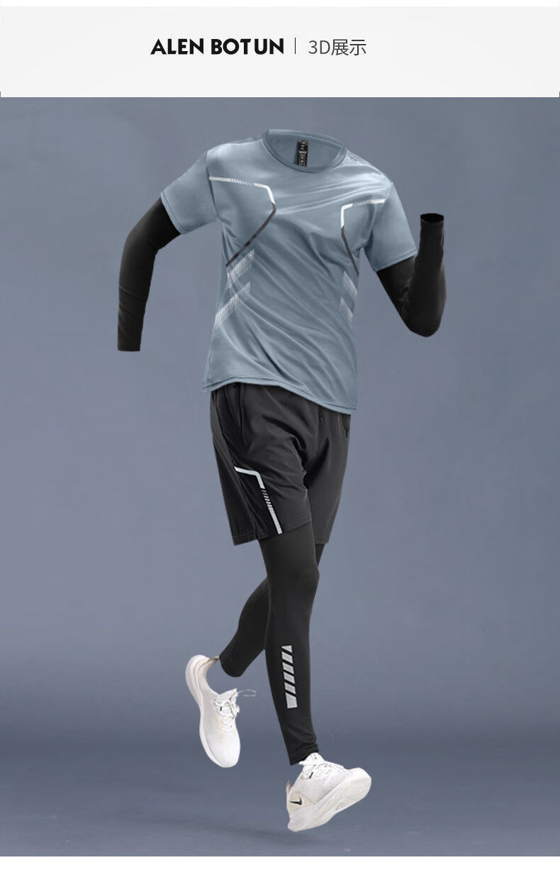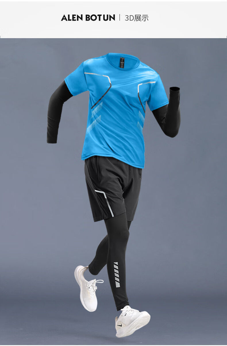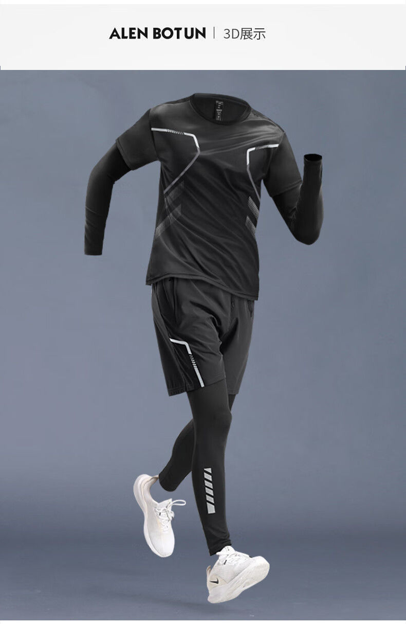 달리기 세트 남자 여름 빠른 건조 운동복 얇은 아이스 실크 훈련 꽉 피트니스 옷 아침 달리기 사이클링 4 종 세트스토어 가기