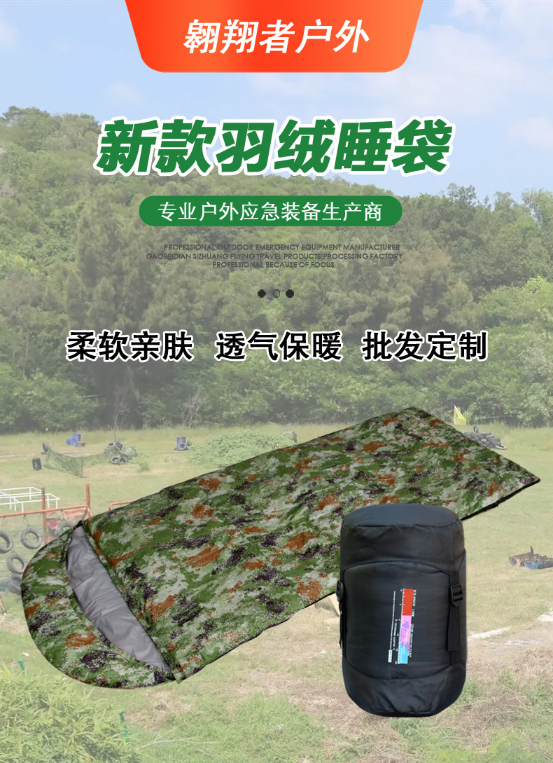 봉투 확대 침낭 오리 아래로 위장 두꺼운 사계절 야외 성인 침낭 캠핑 침낭 도매