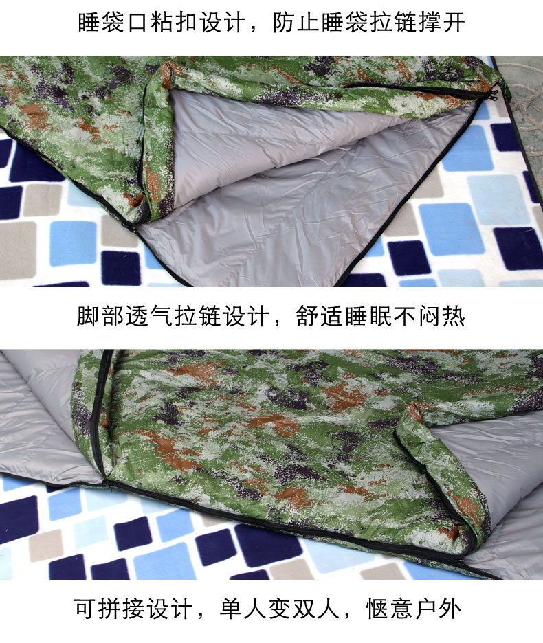 봉투 확대 침낭 오리 아래로 위장 두꺼운 사계절 야외 성인 침낭 캠핑 침낭 도매스토어 가기