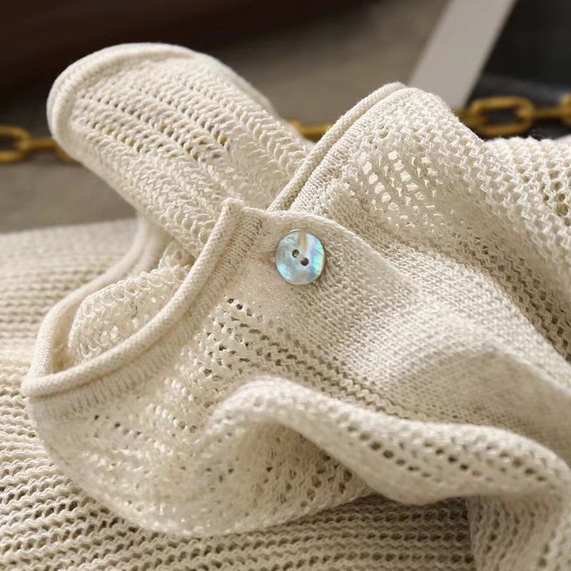 淘么淘 出游BI穿腔调感防晒开衫 葡萄洞镂空勾花天丝麻针织开衫女
