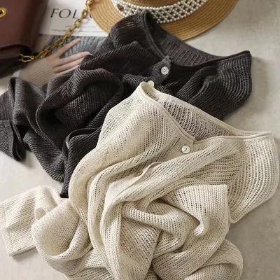 게으른 팬! 드림 캐처 카디건! 텐셀 리넨 수제 구멍 따기 빈 카디건 여성용 에어컨 선스크린 셔츠