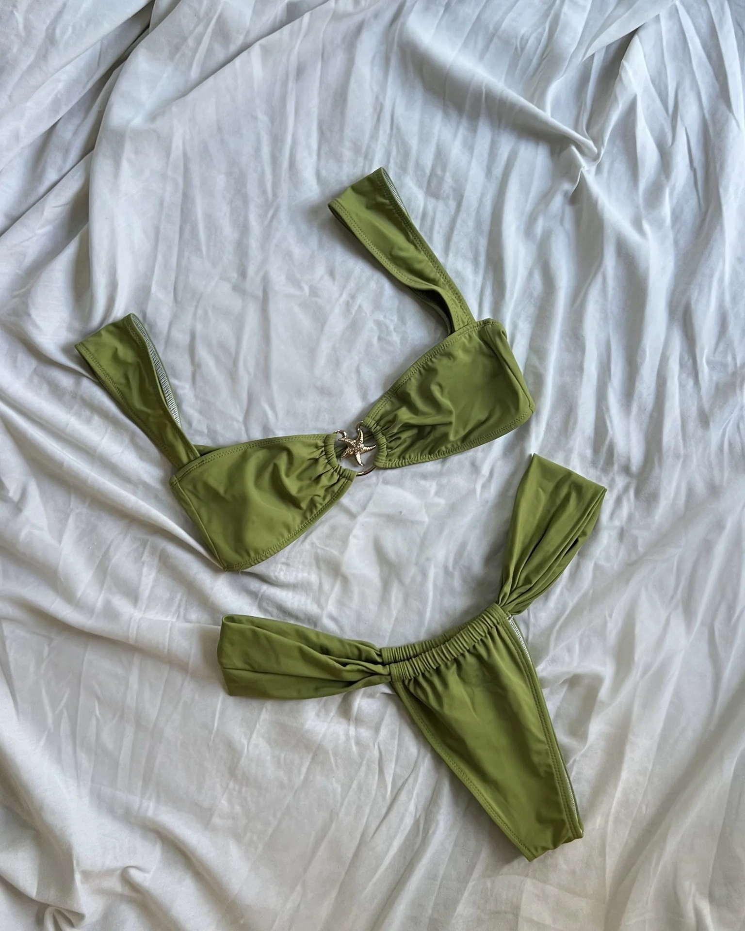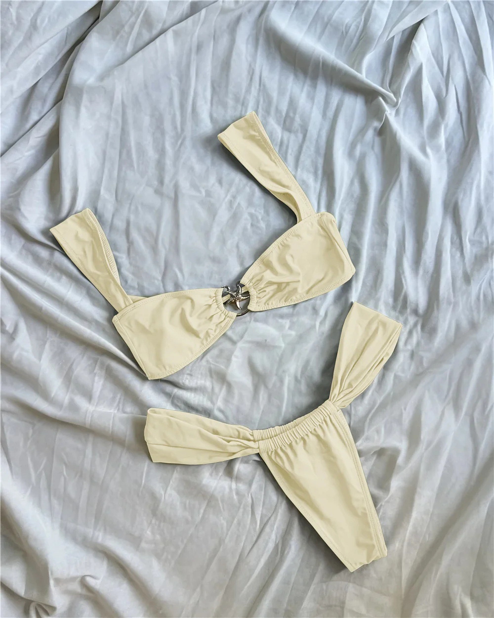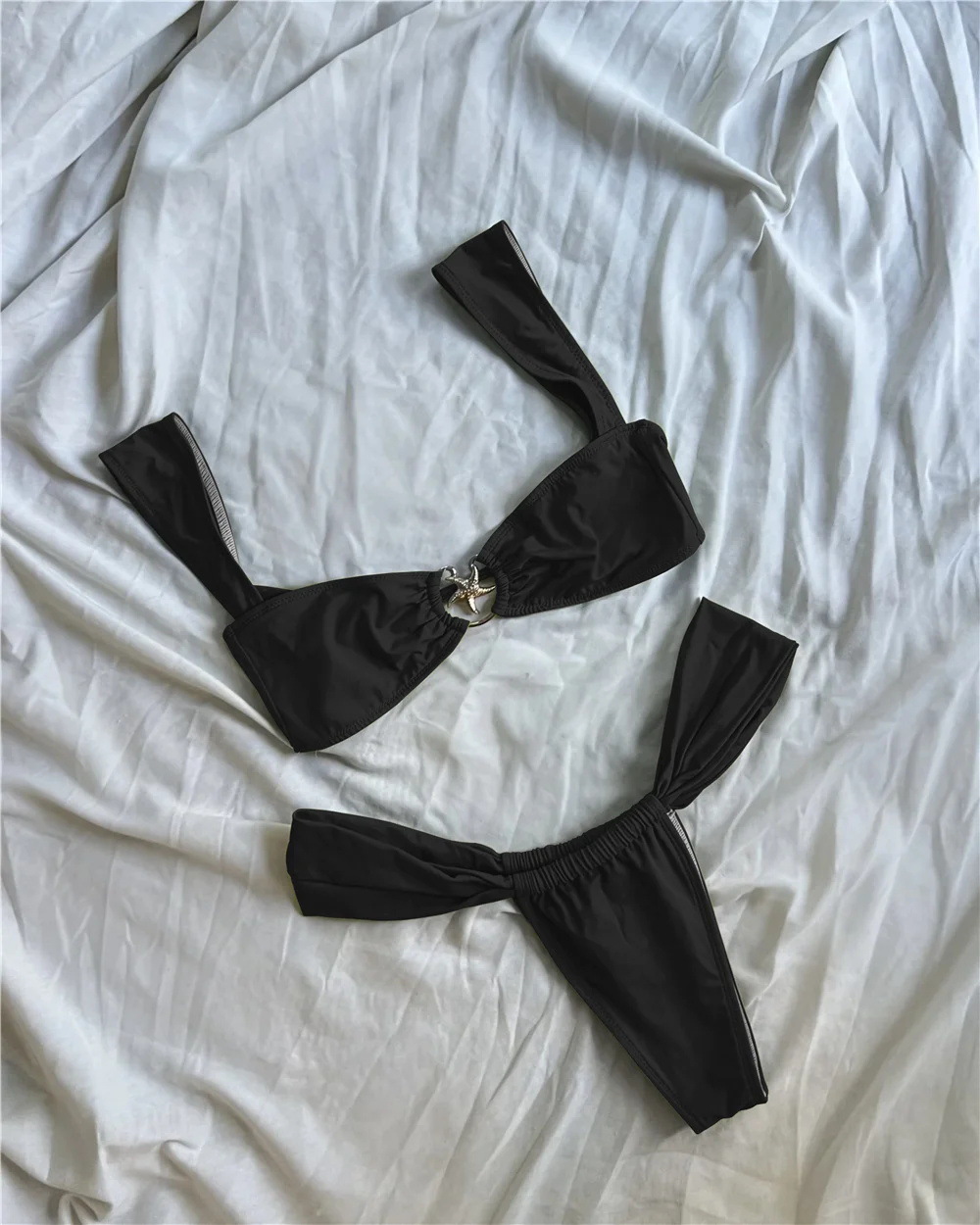 2025 년 유럽과 미국의 새로운 단색 불가사리 여성 스플릿 수영복 비키니 비키니 국경 간 폭발스토어 가기