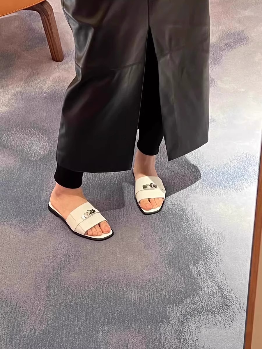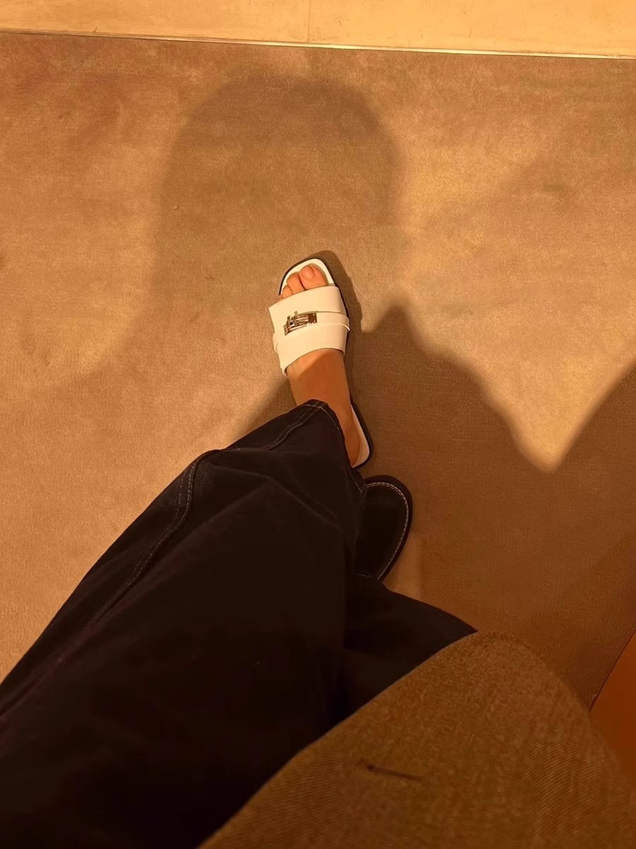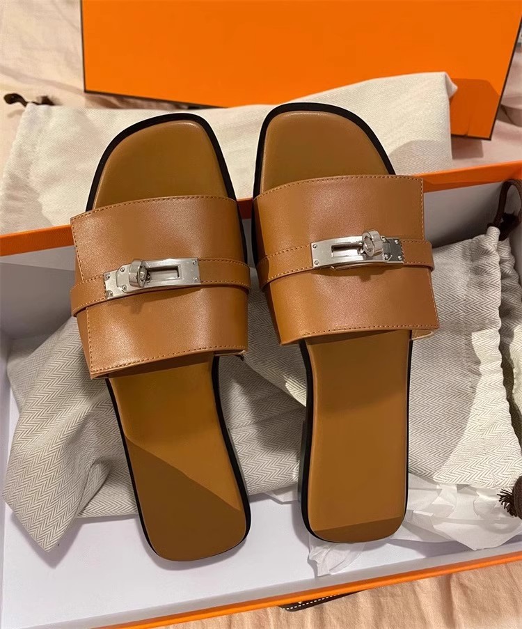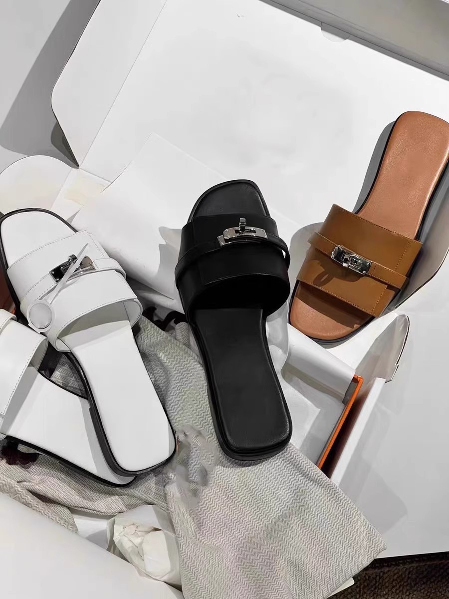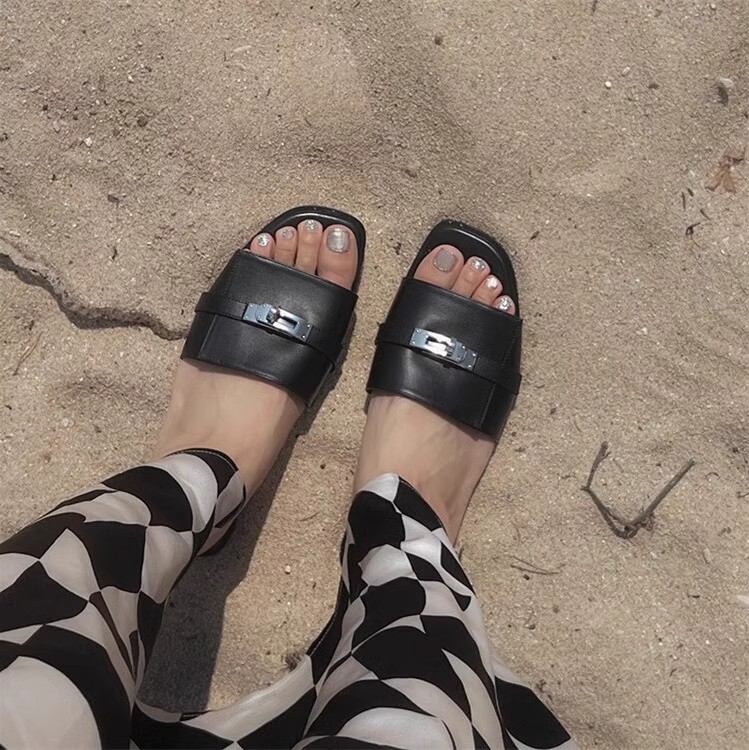 재고 하이 퀄리티 사이버 인기있는 소형 잠금 슬리퍼 여성 패션 올 매치 컬러 매칭 스퀘어 헤드 플랫 아우터 샌들 여름스토어 가기