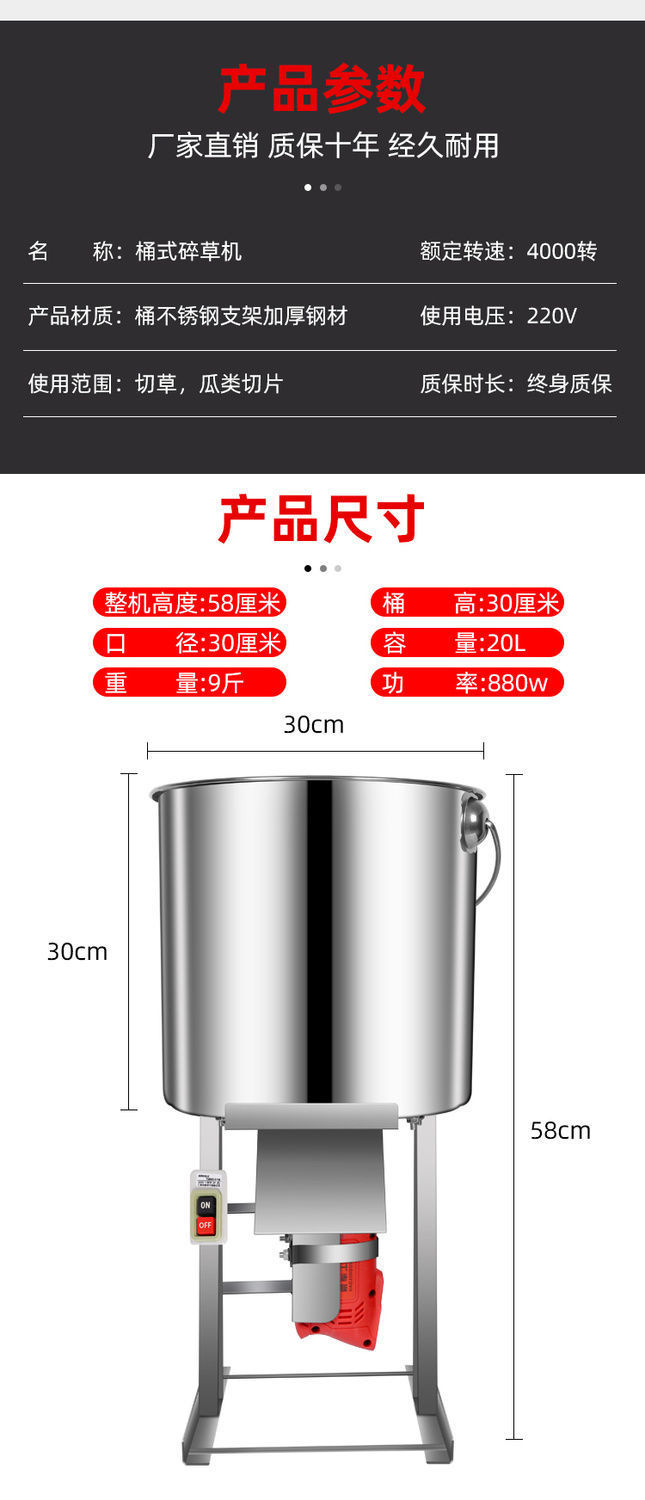 880W 스테인레스 스틸 새로운 야채 크러셔 치킨 먹이 배럴 유형스토어 가기