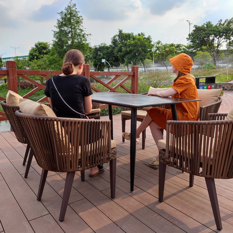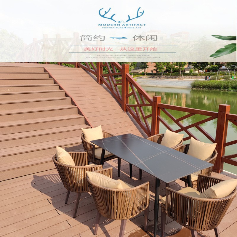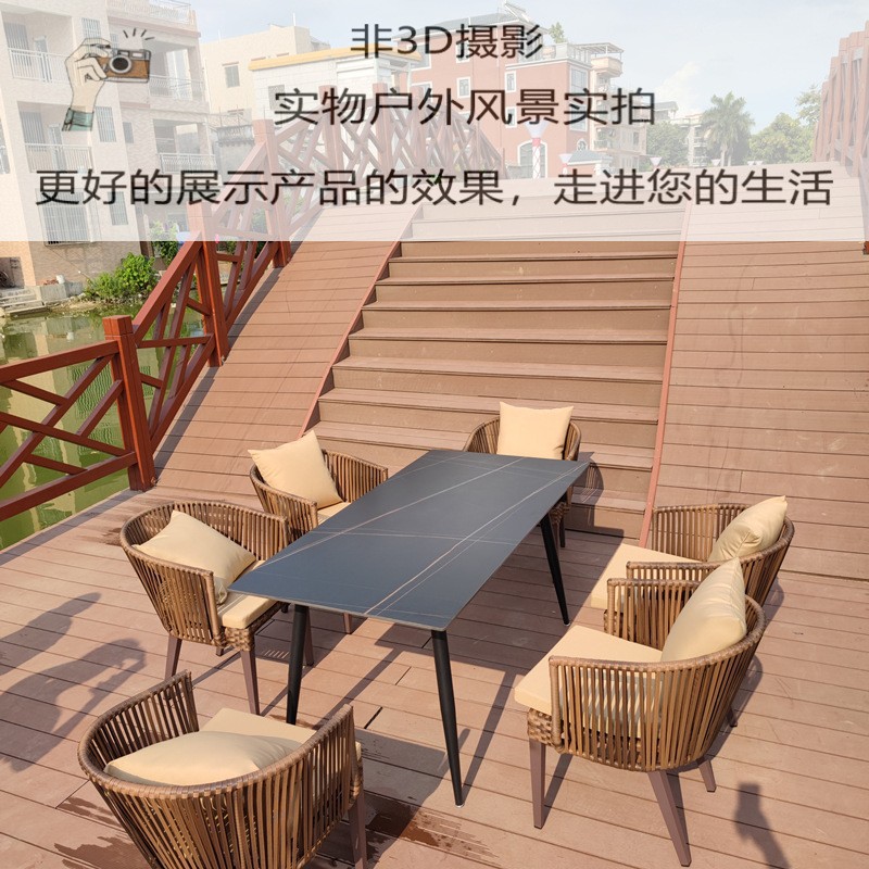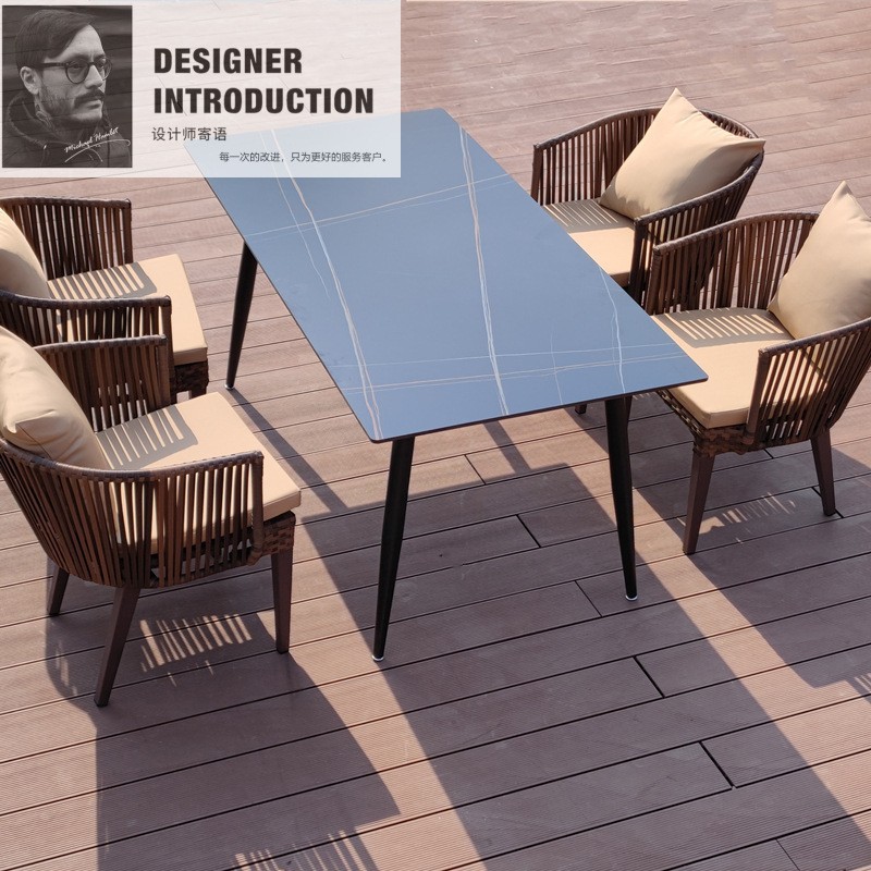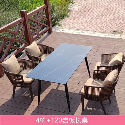 야외 테이블과 의자 파티오 테라스 발코니 레저 등나무 의자 조합 빌라 정원 야외 록 보드 식탁 방수 태양 보호