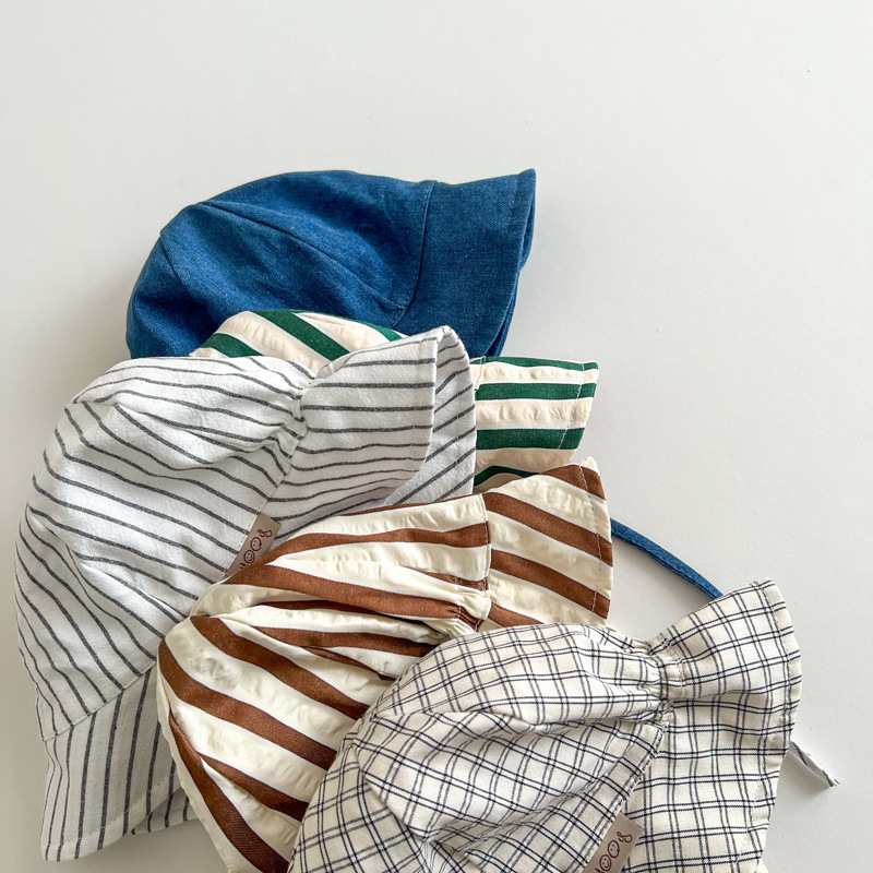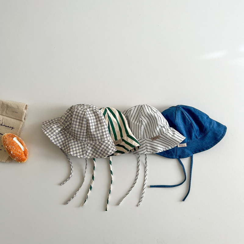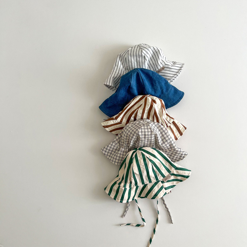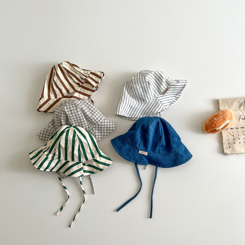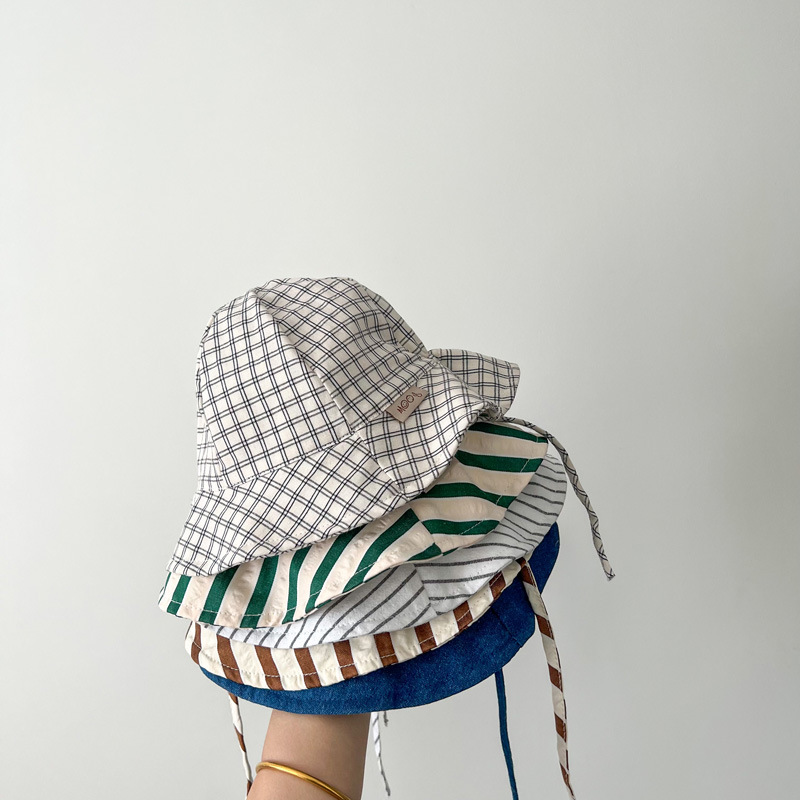 봄과 여름 얇은 차양 줄무늬 아기와 어린 아이들을위한 어부의 모자 격자 무늬 데님 분지 모자스토어 가기