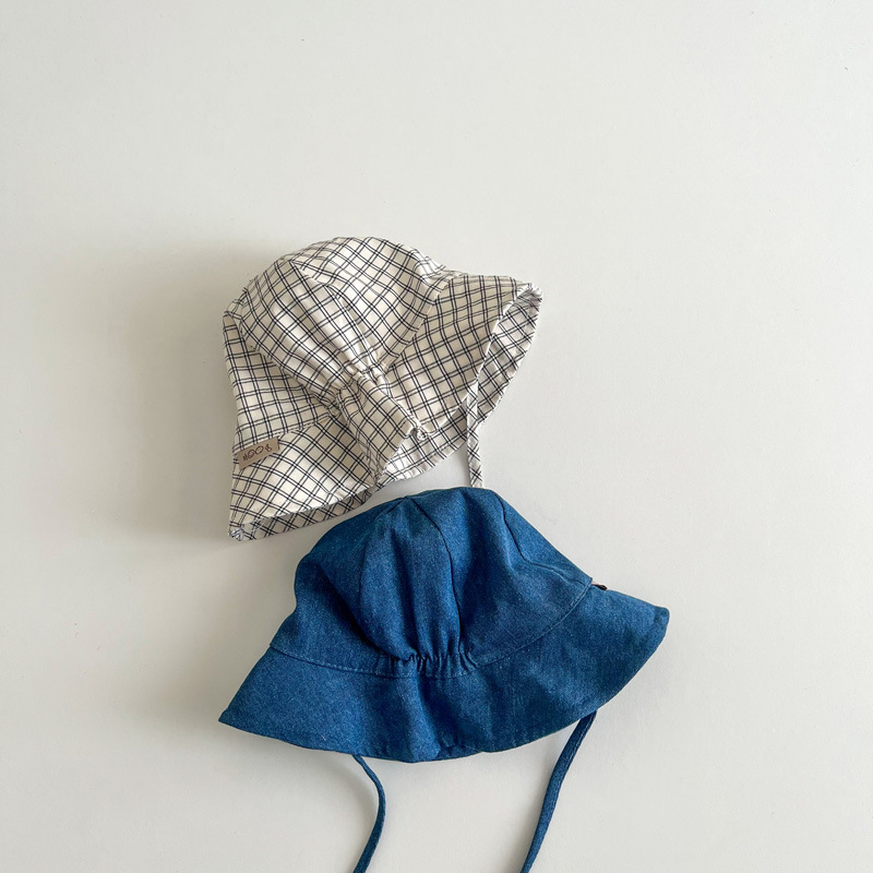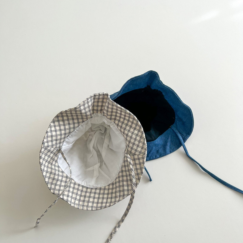 봄과 여름 얇은 차양 줄무늬 아기와 어린 아이들을위한 어부의 모자 격자 무늬 데님 분지 모자