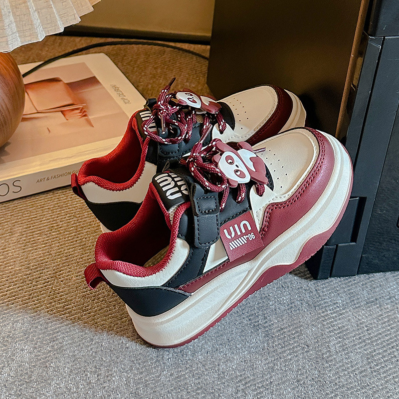 [5447 컬렉션] 발목 레드 어린이 캐주얼 보드 신발 2025 봄 가을 새로운 한국 소녀 운동화