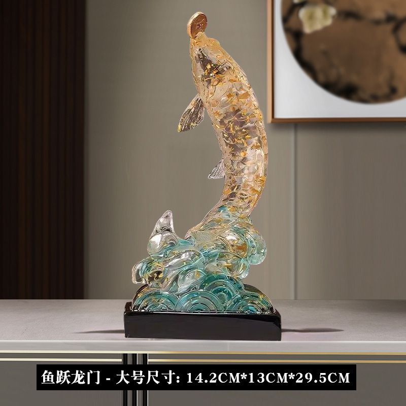 새로운 중국 스타일 물고기 뛰어 드래곤 게이트 골드 호일 크리스탈 드래곤 생선 장식품 공예 거실 비즈니스 사무실 집들이 개회식