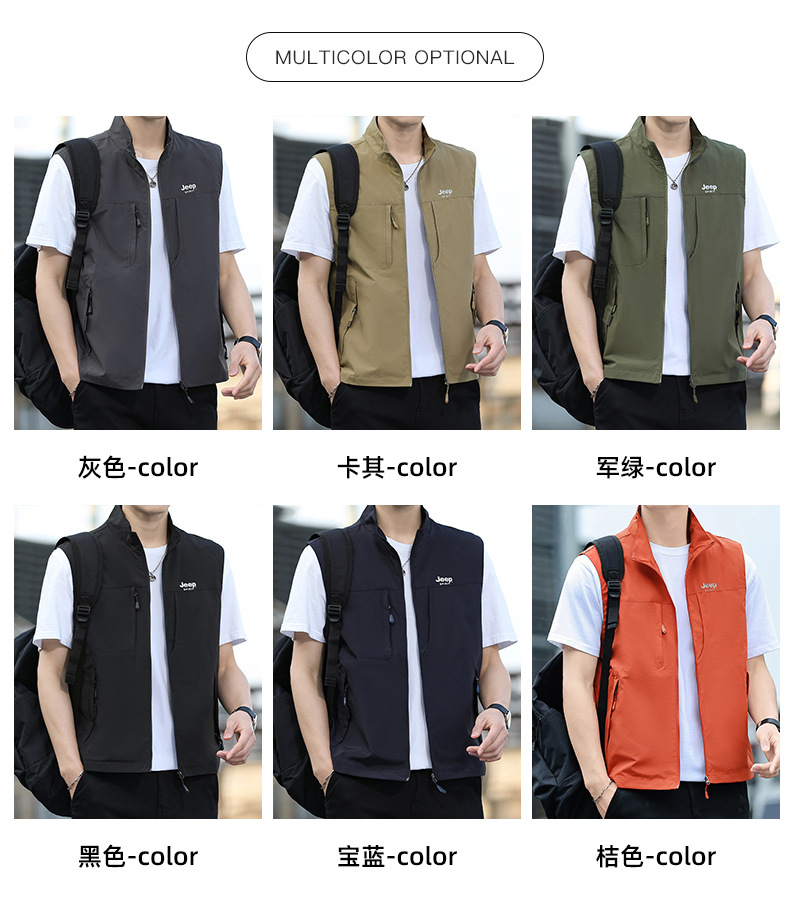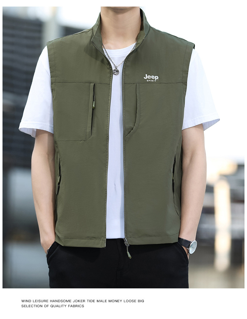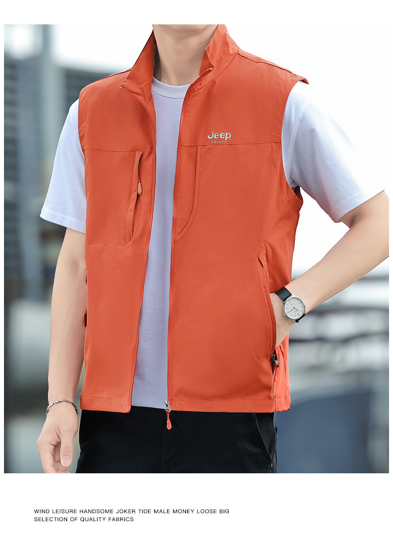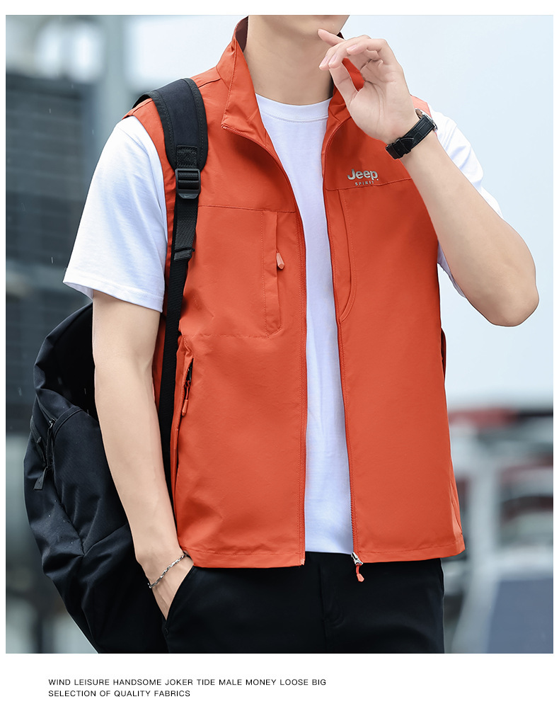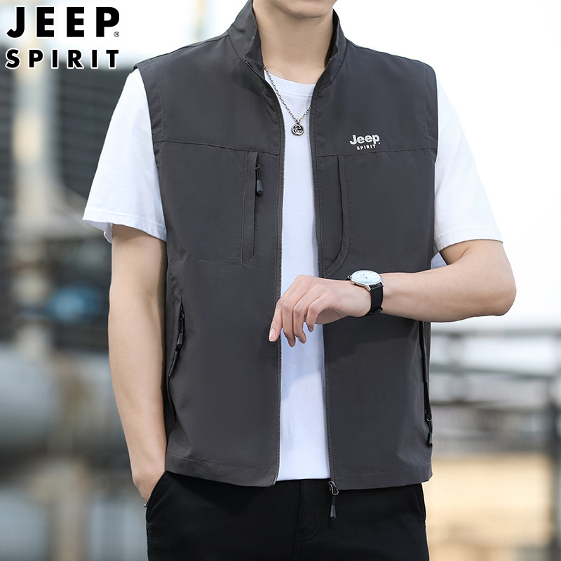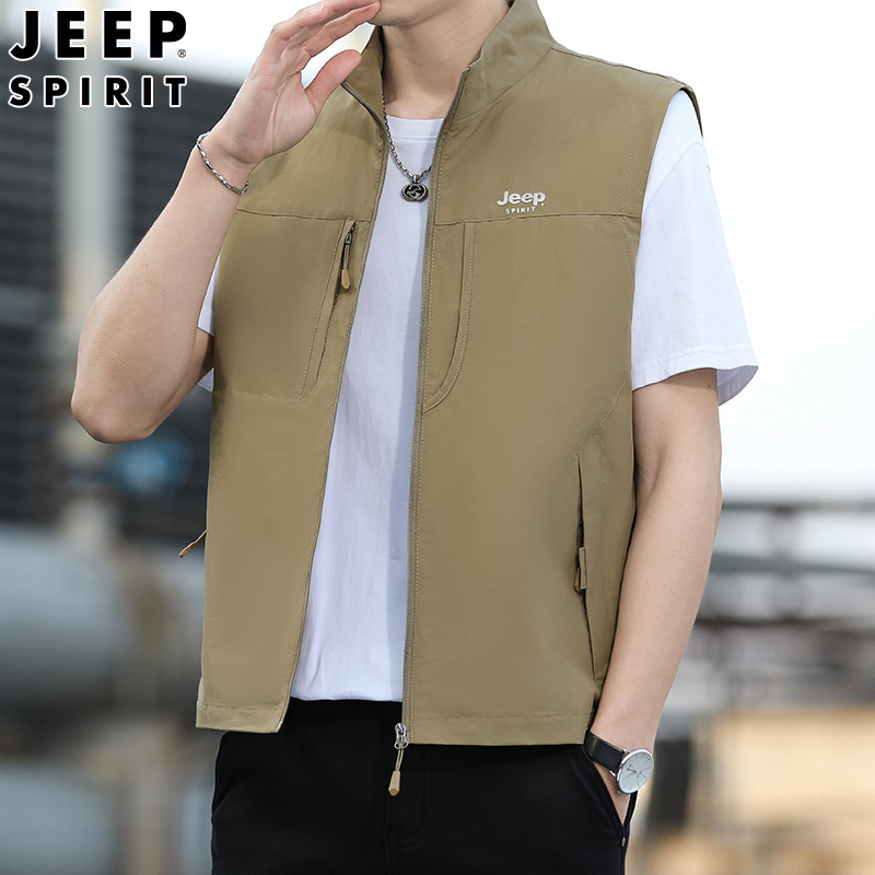 JEEP SPIRIT 봄 남자의 빠른 건조 조끼 잘 생긴 조끼 외부 착용 캐주얼 칼라 야외 스포츠스토어 가기