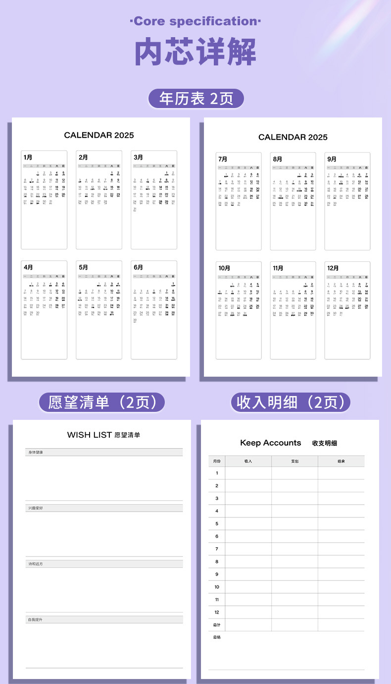 2025 년 연중 일정 새 노트북 서브 워크 로그 일기 달력 메모장스토어 가기