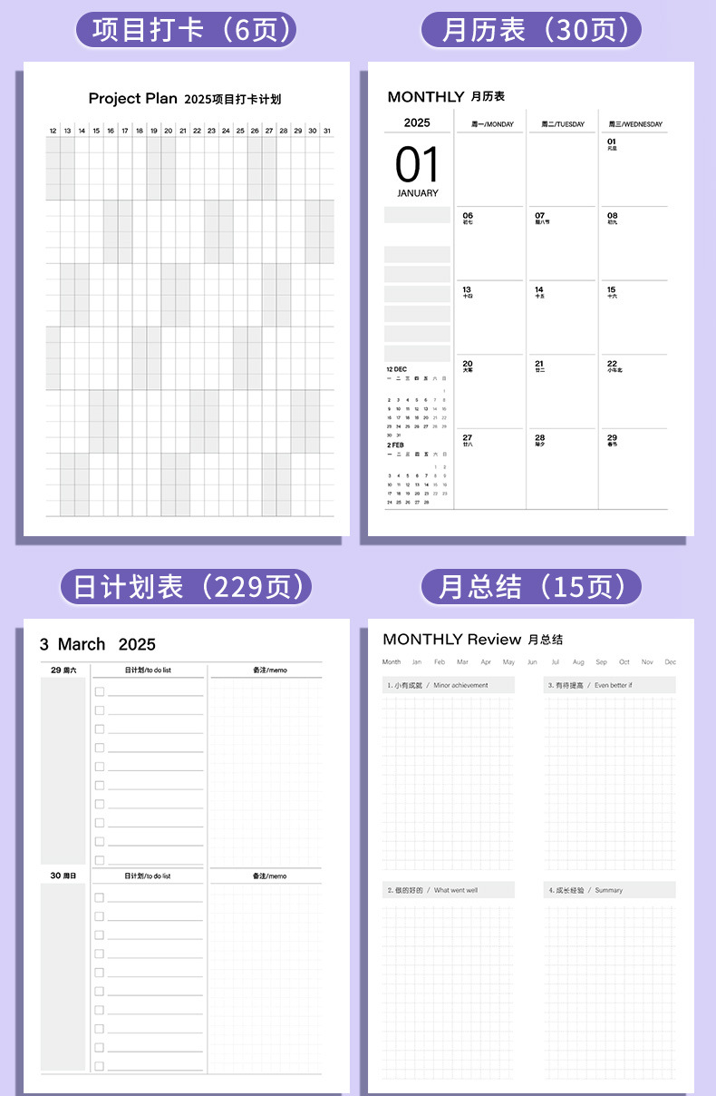 2025 년 연중 일정 새 노트북 서브 워크 로그 일기 달력 메모장