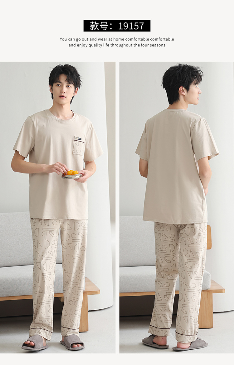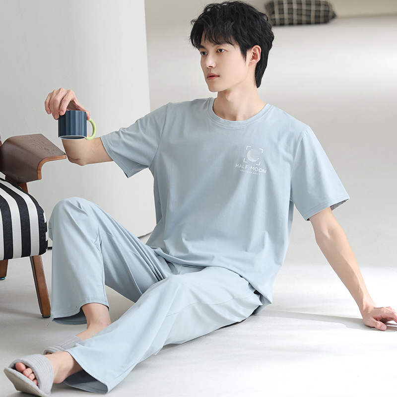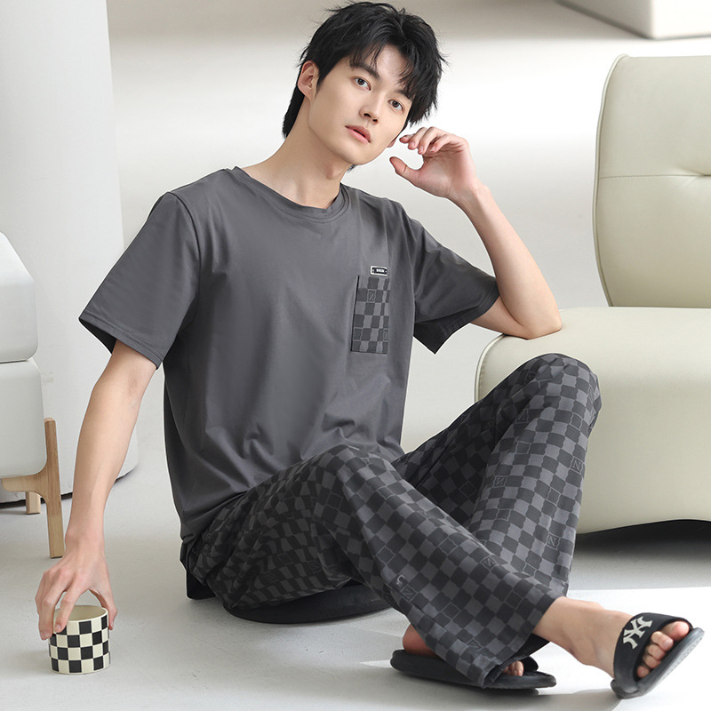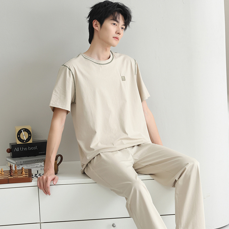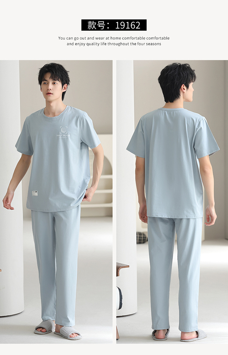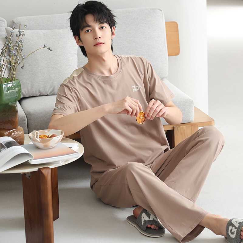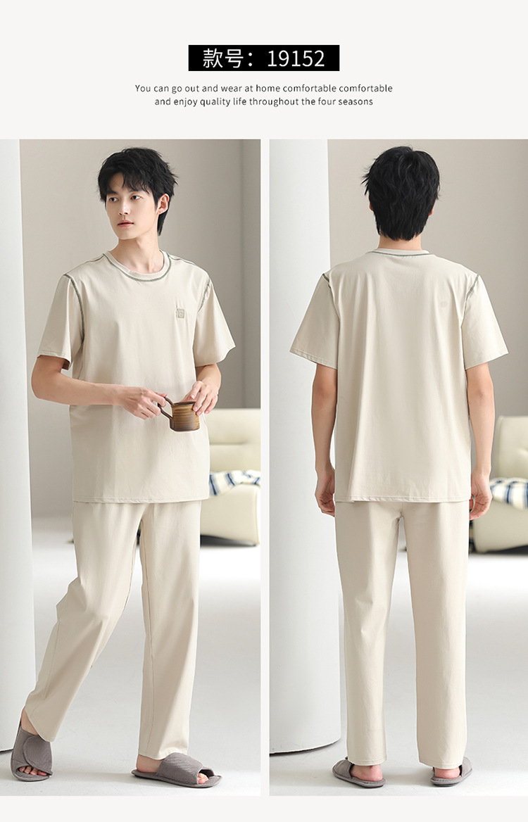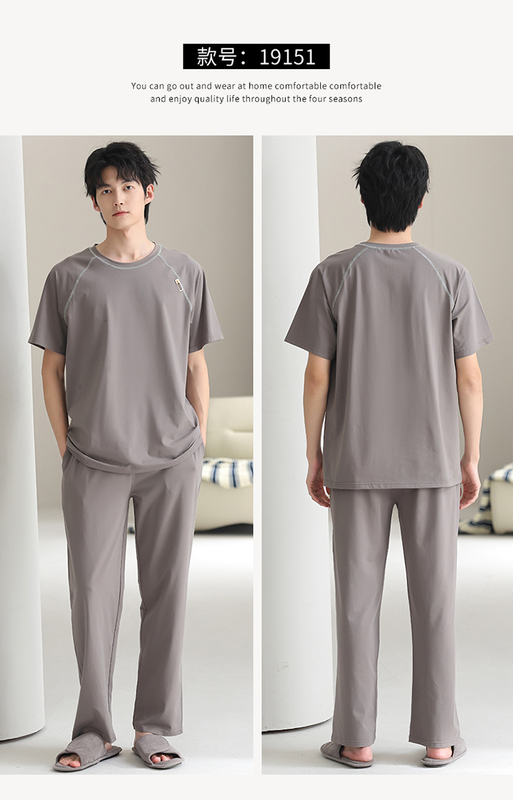 모달 파자마 남자 여름 반팔 바지 2025 새로운 여름 간단한 홈 의류 세트 여름스토어 가기
