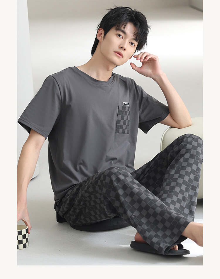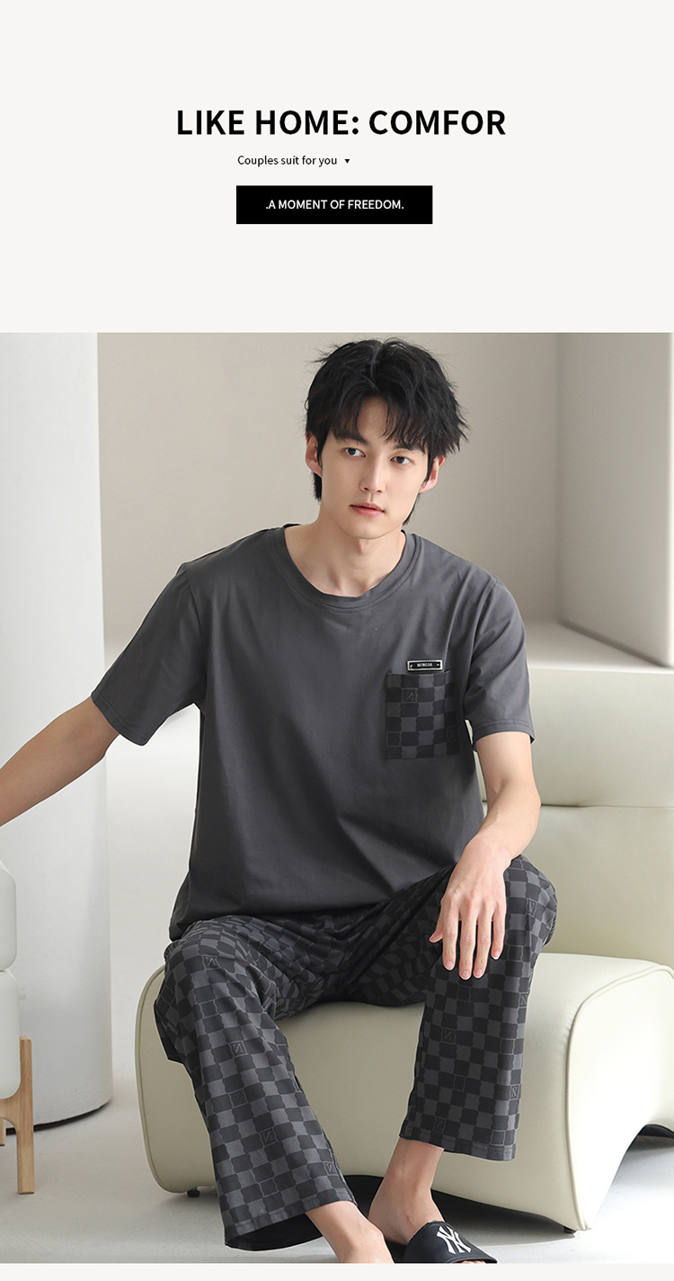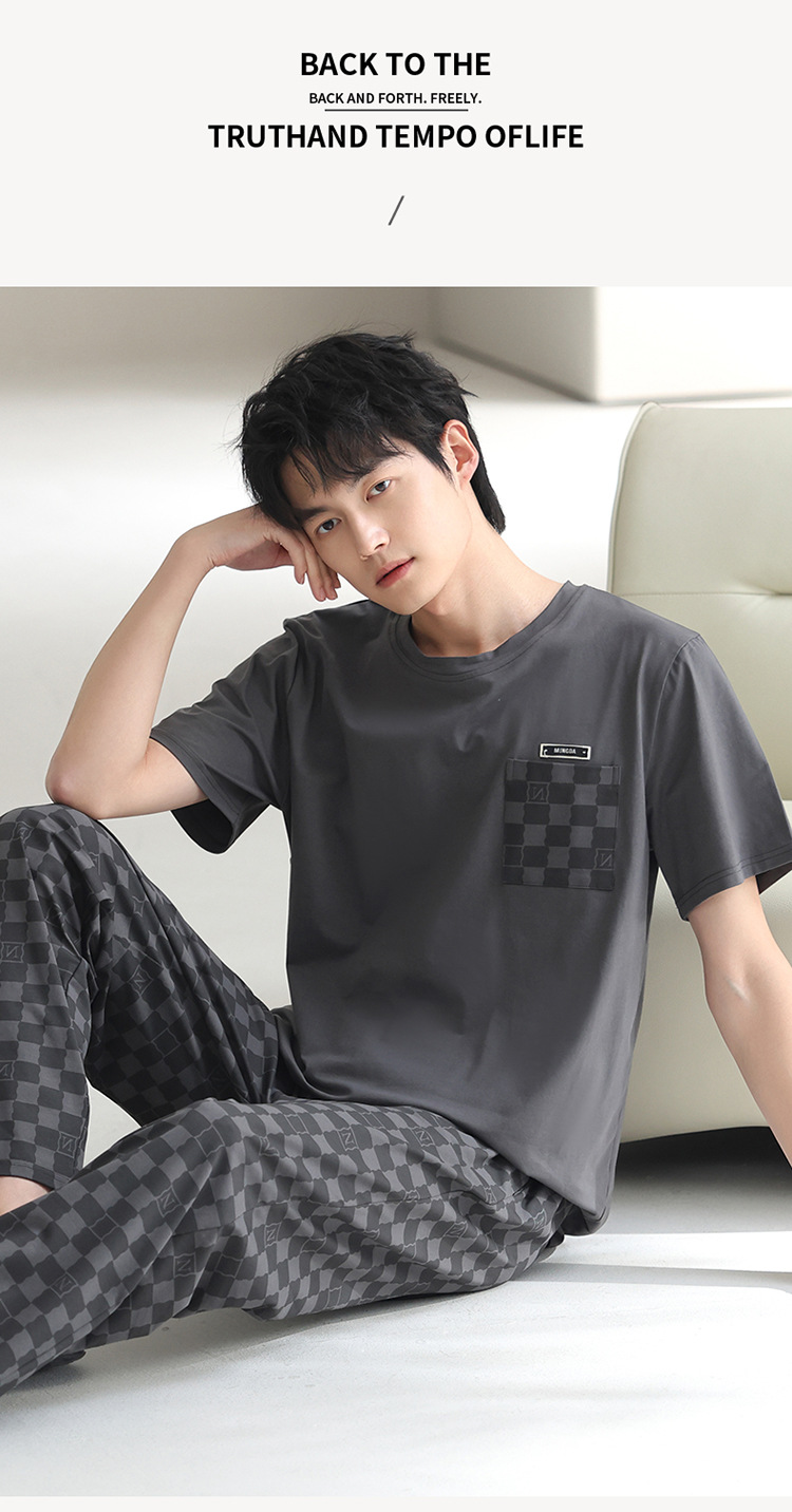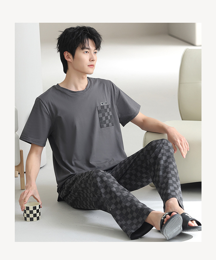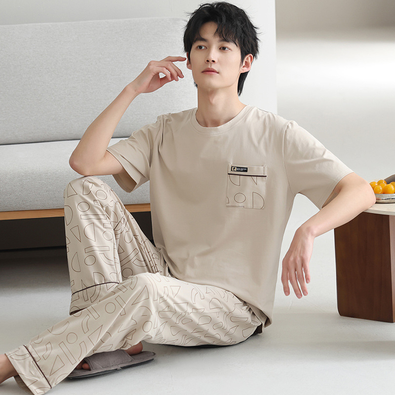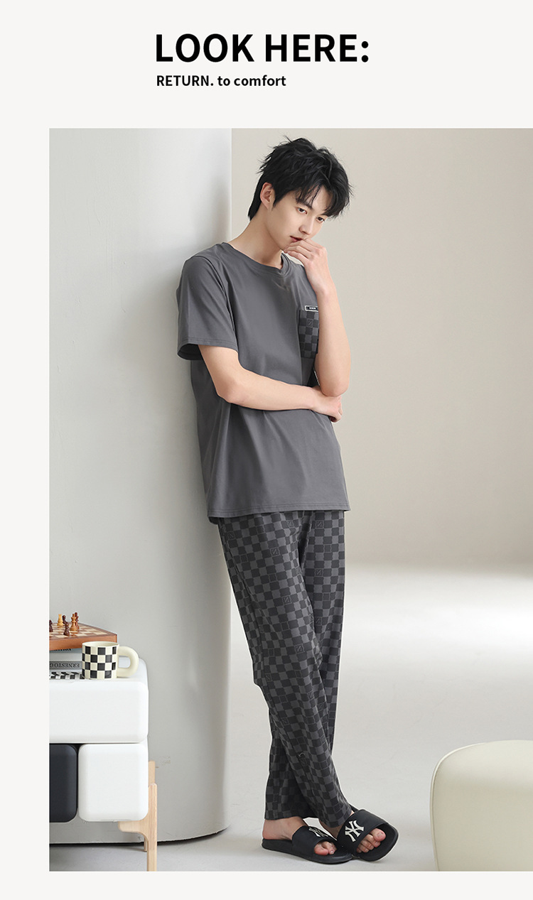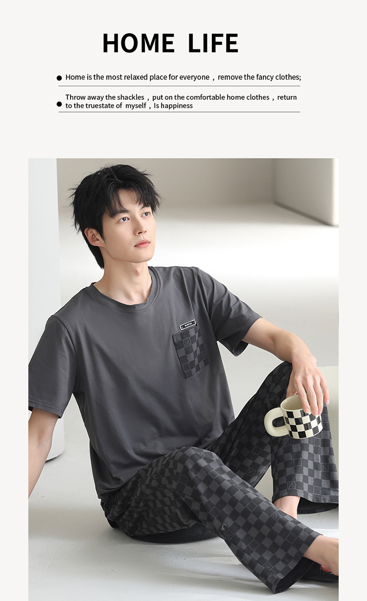 모달 파자마 남자 여름 반팔 바지 2025 새로운 여름 간단한 홈 의류 세트 여름스토어 가기