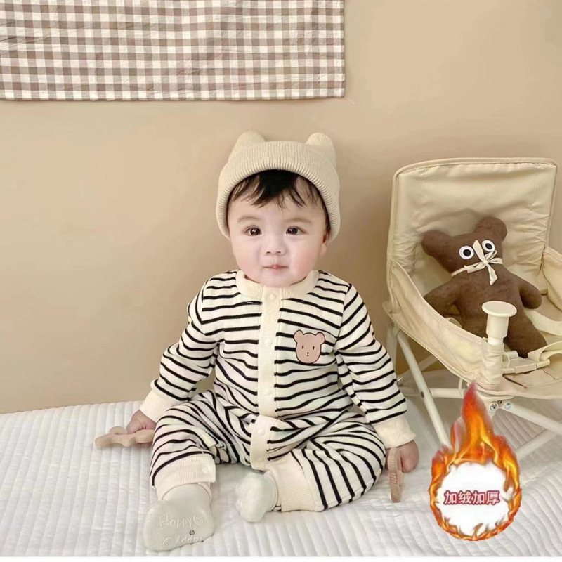 • [가을과 겨울 스타일] 벨벳 스트라이프 베어 점프수트