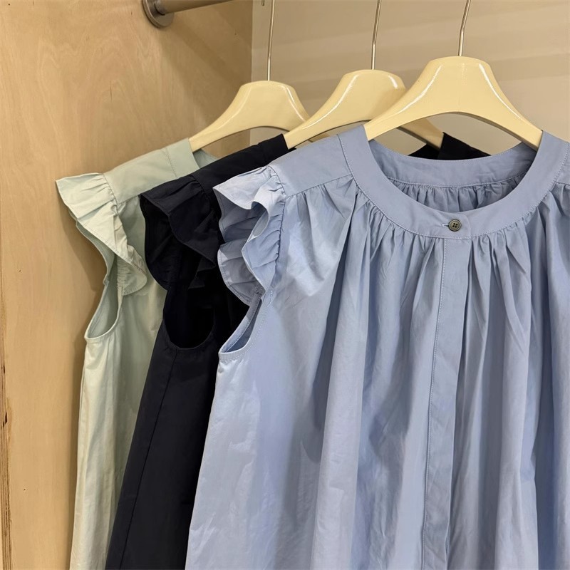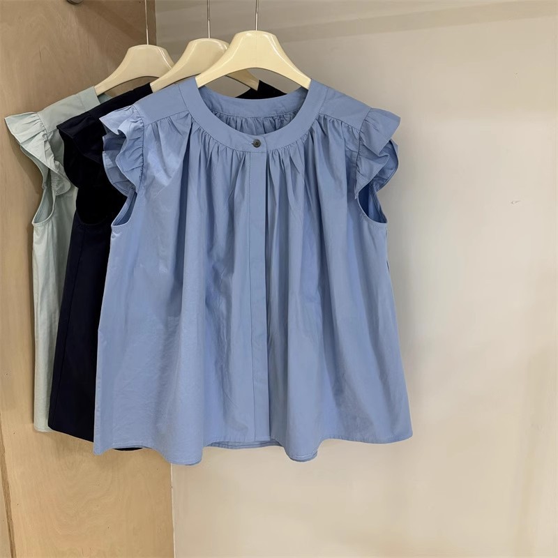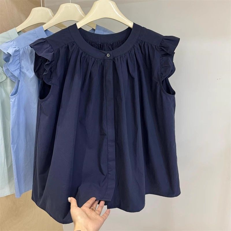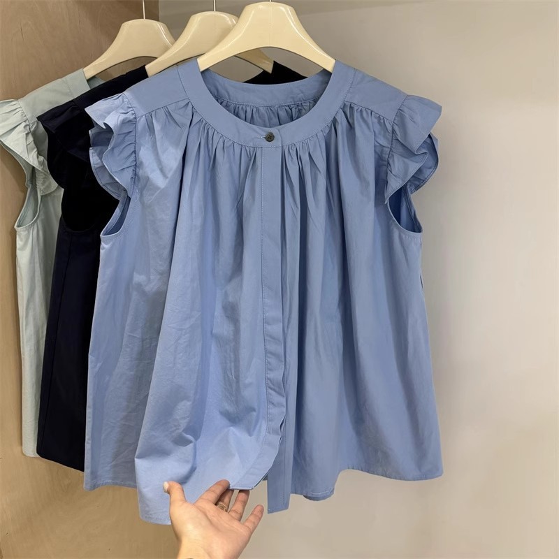 2024 여름 소녀의 트렌디 한 인형 셔츠 작은 비행 소매 쉬폰 셔츠 큰 소년 소녀의 유행 셔츠 탑스토어 가기