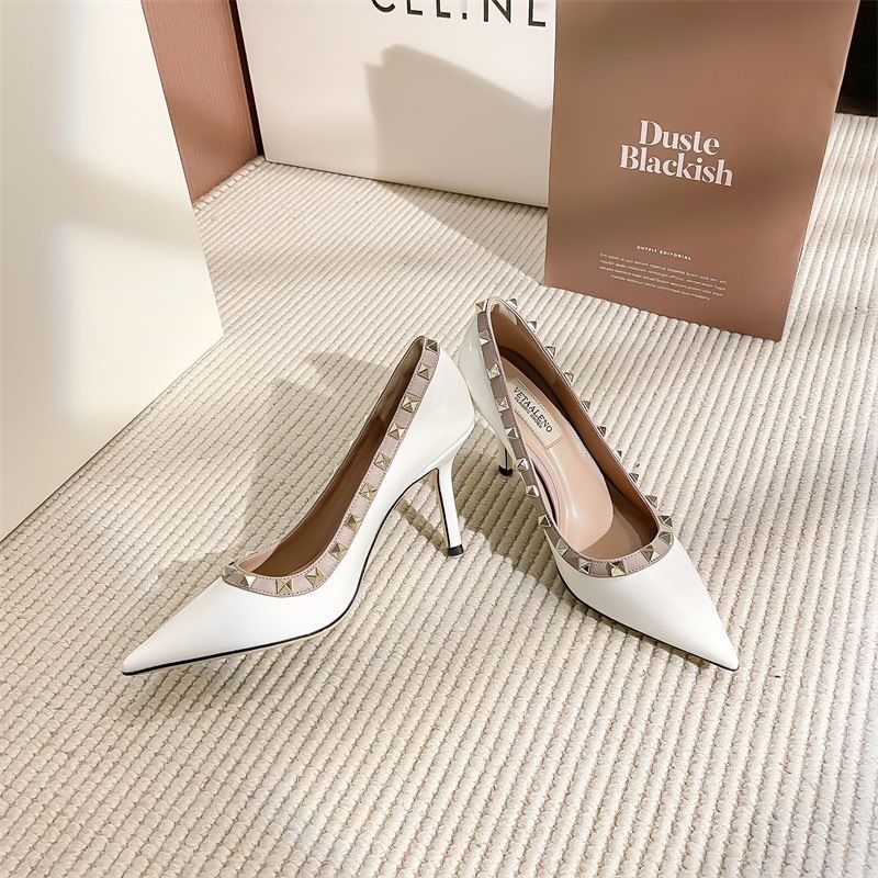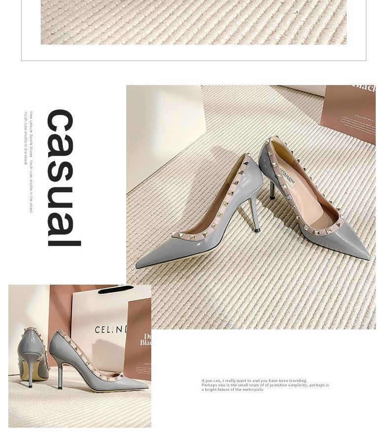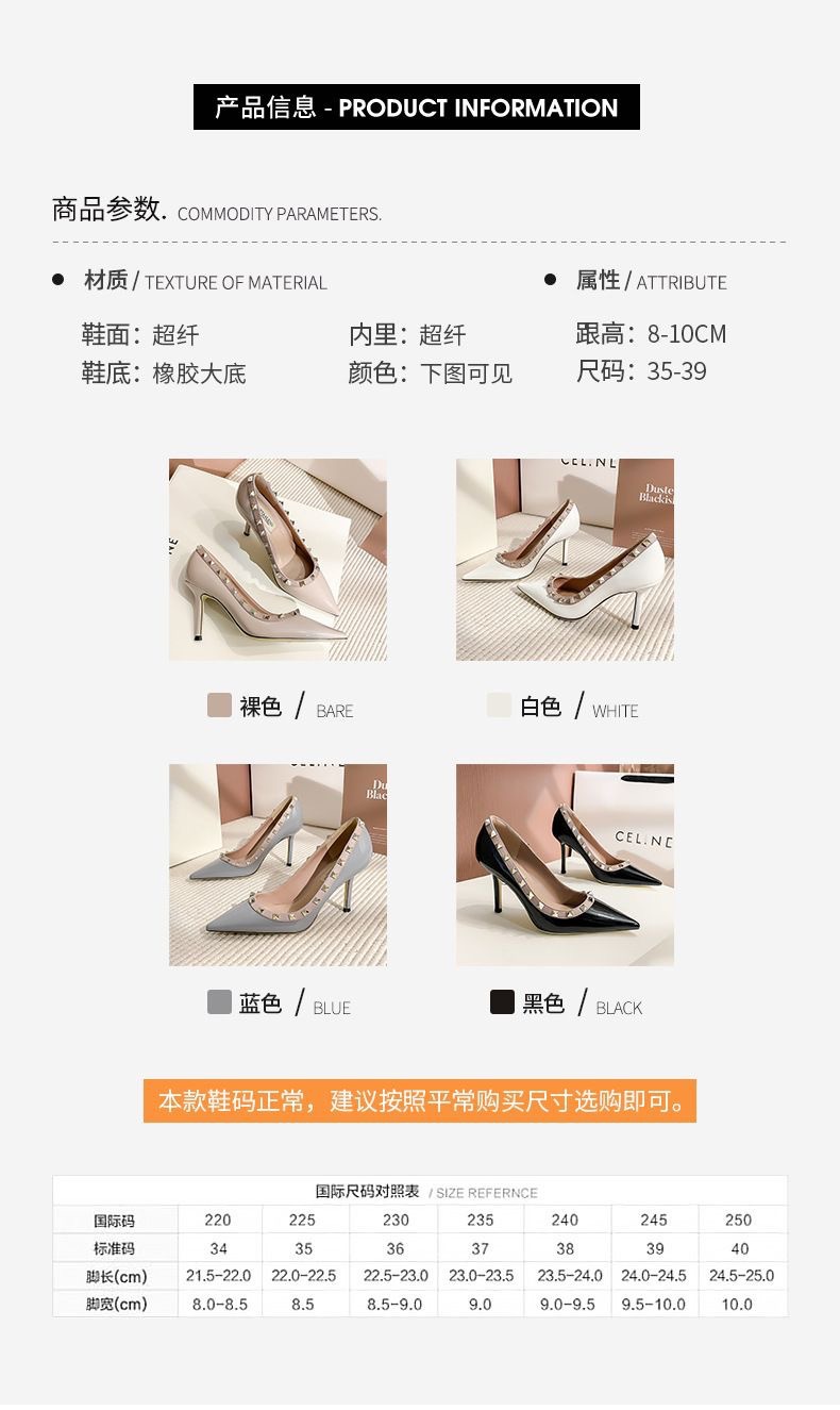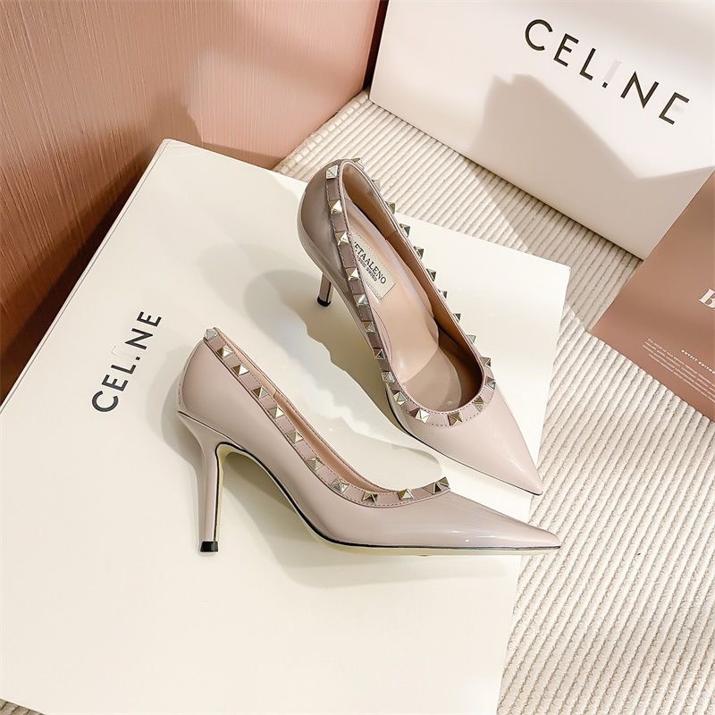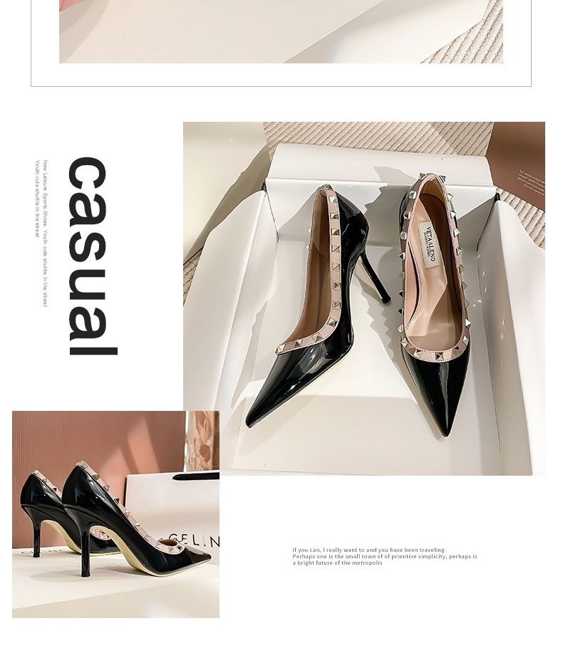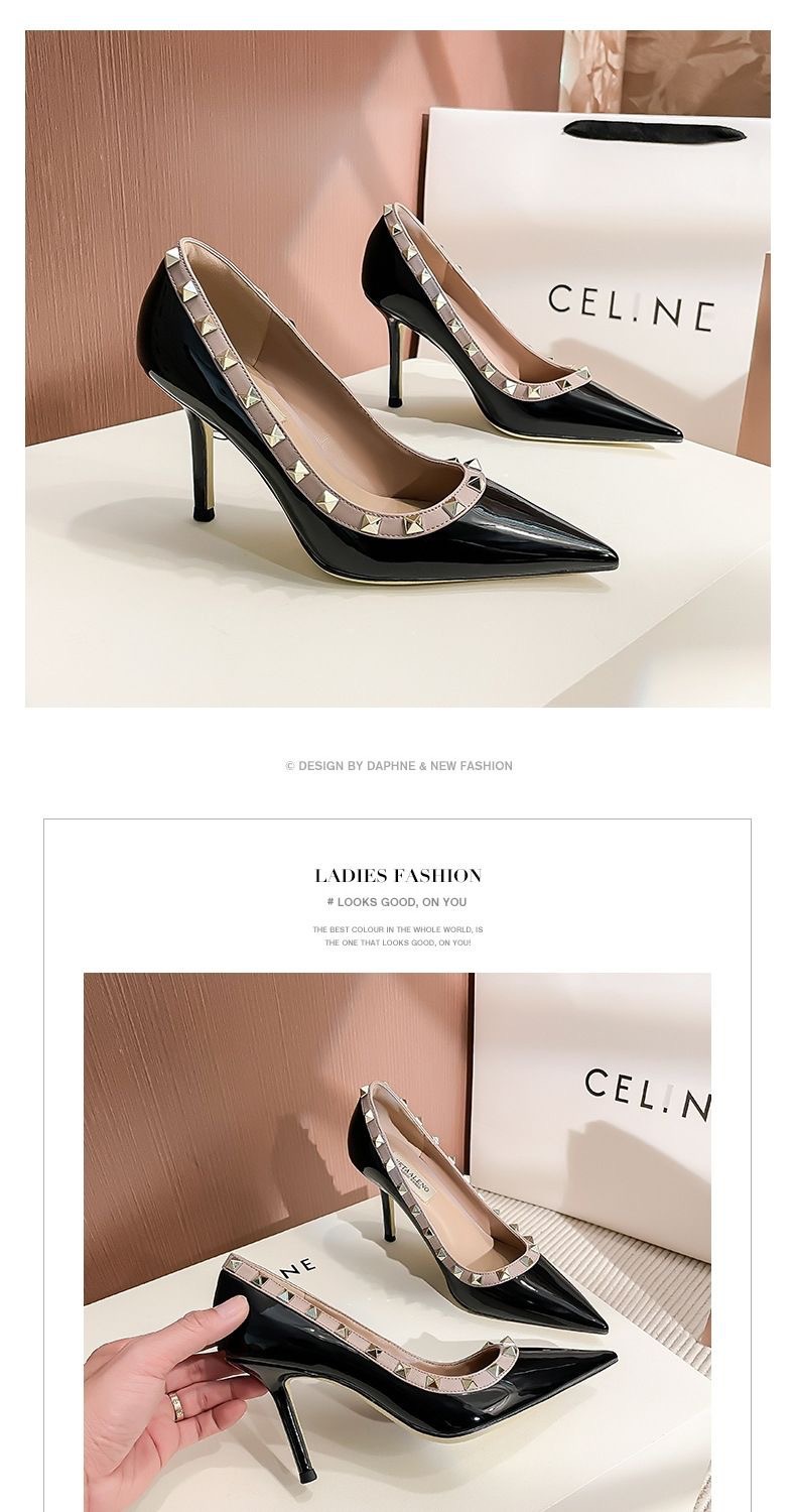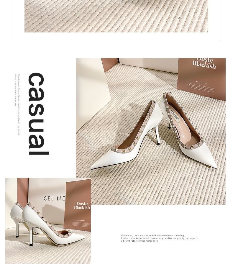 리벳 하이힐 여성 스틸레토 힐 2024 가을 새로운 디자인 감각 틈새 기질 Liu Ding 지적 누드 신발스토어 가기