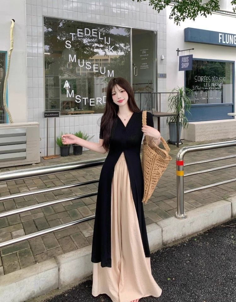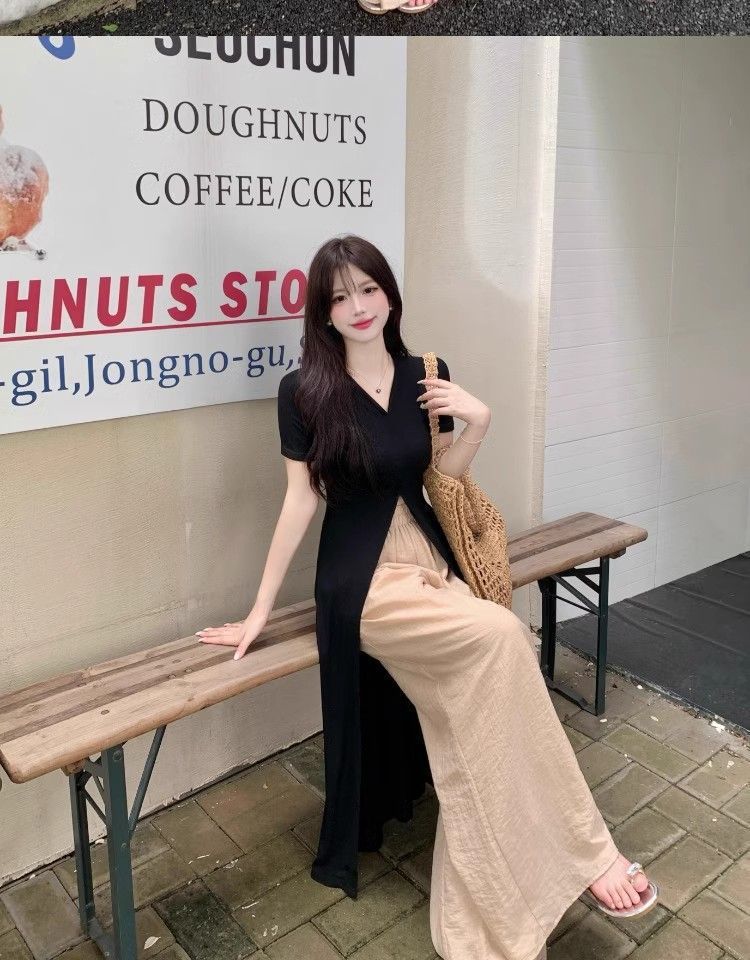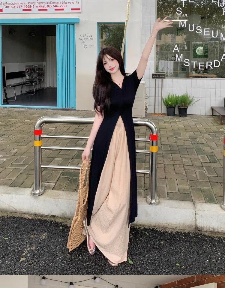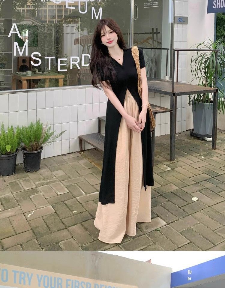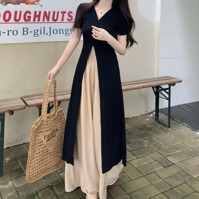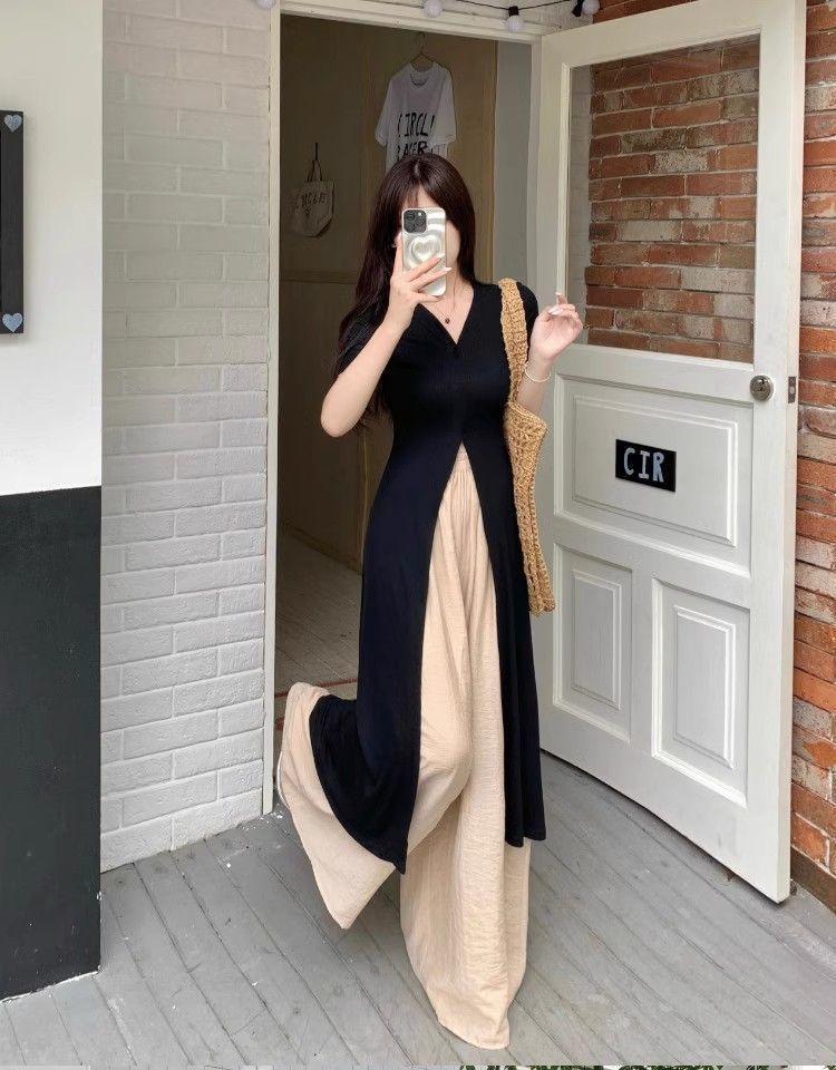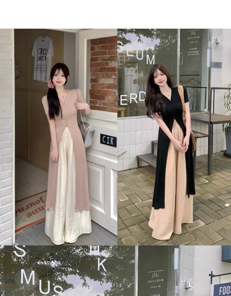 플러스 사이즈 통통녀 배꼽 숨기기 고기 치마 바지 세트 여성 여름 새 헵번 스타일 캐주얼 바지 슬리밍 스커트 투피스 세트스토어 가기