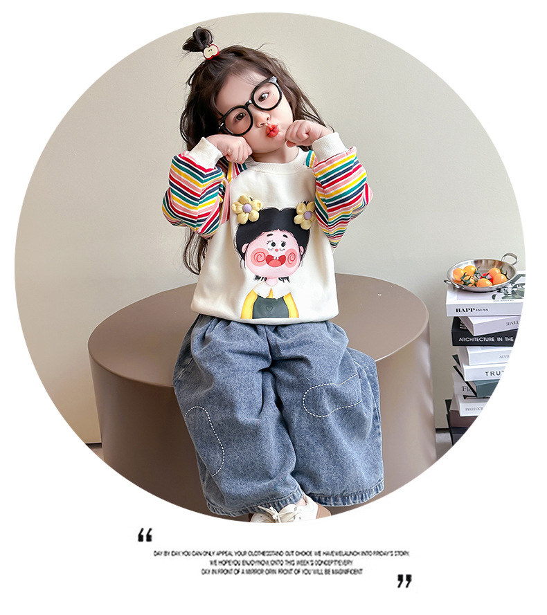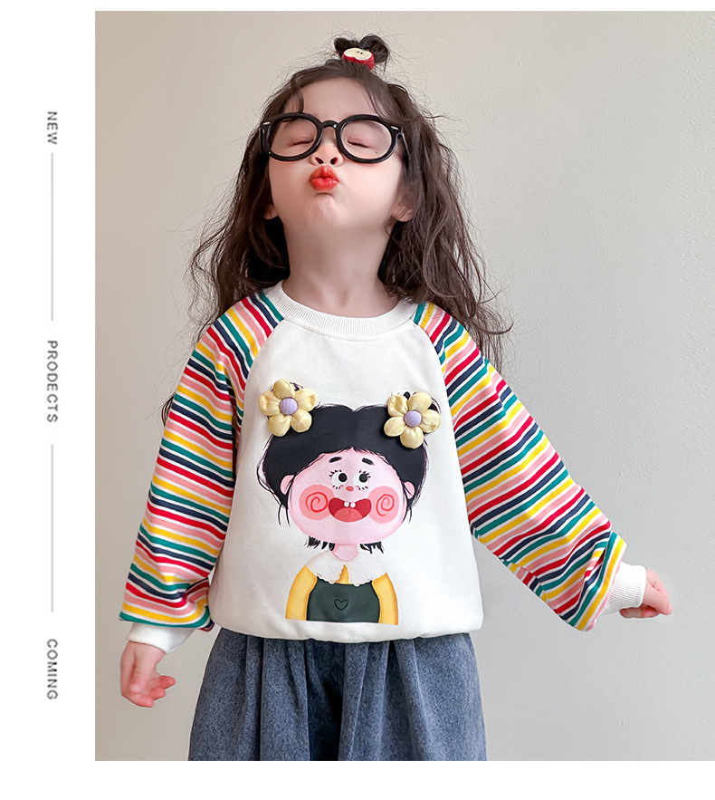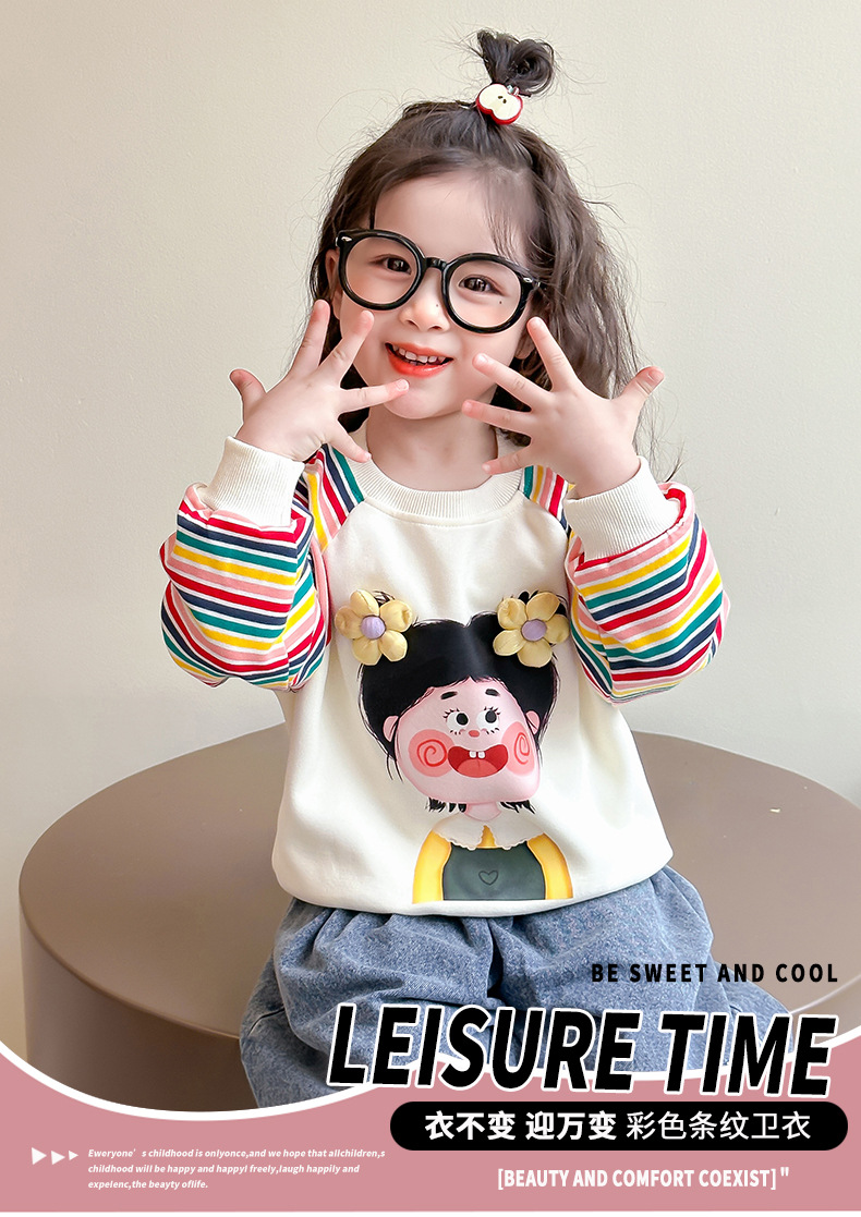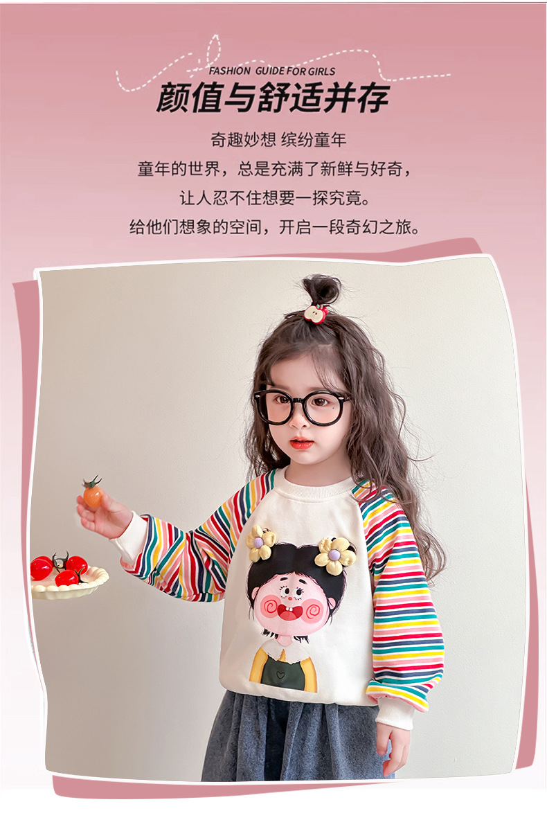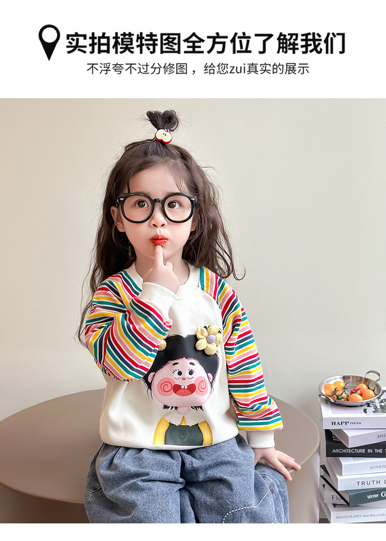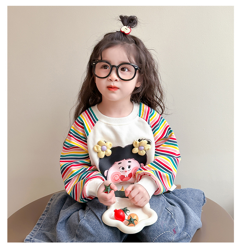 2025 봄과 가을 새로운 소녀 컬러 스트라이프 스웨터 어린이 유행베이스 셔츠 7 아기의 올 매치 롱 슬리브 티셔츠스토어 가기