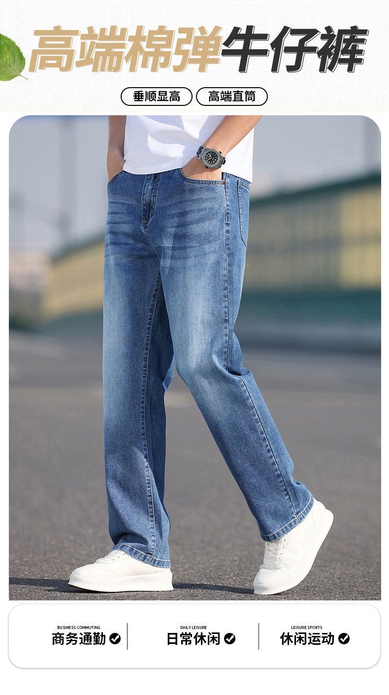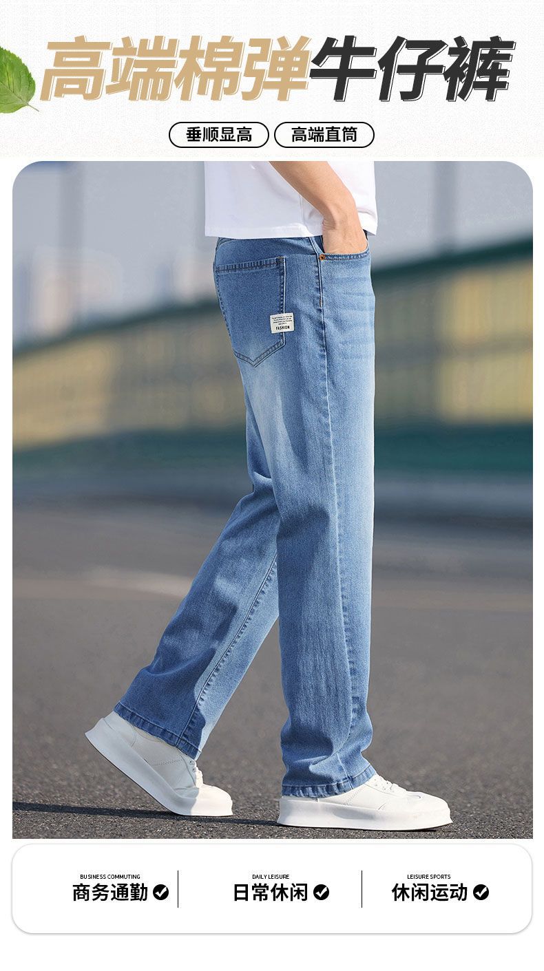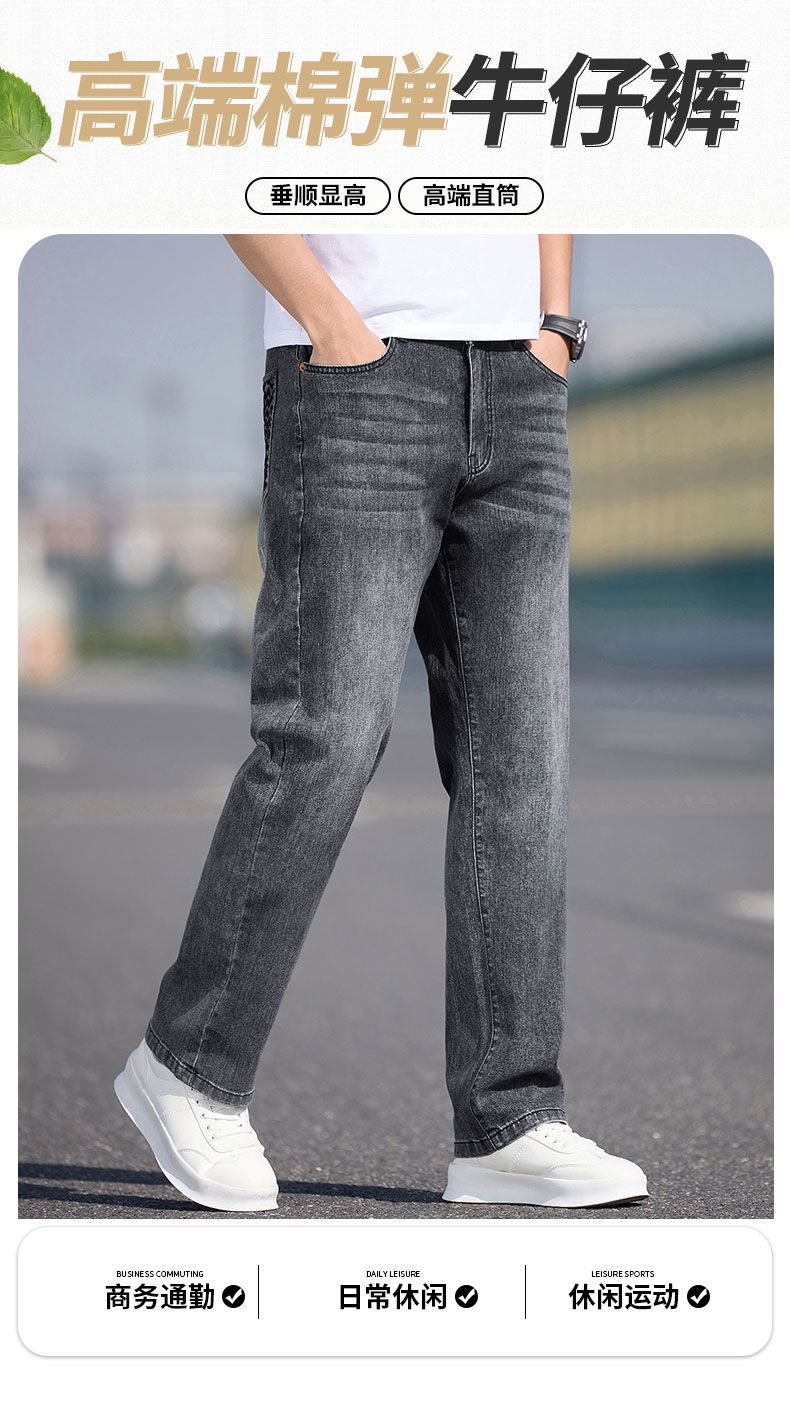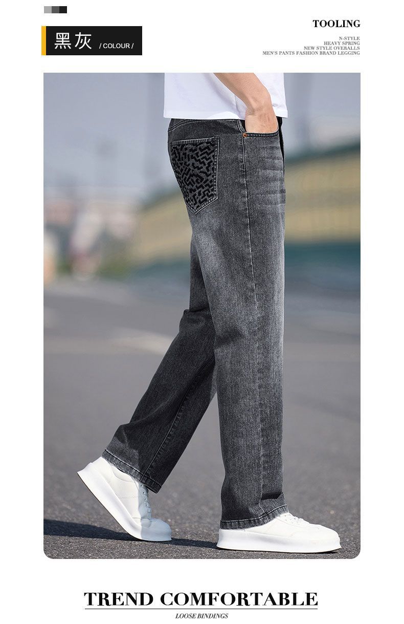 남자 청바지 느슨한 스트레이트 트렌디 브랜드 남자 2025 년 봄과 여름 새로운 올 매치 스트레치 캐주얼 롱 바지스토어 가기