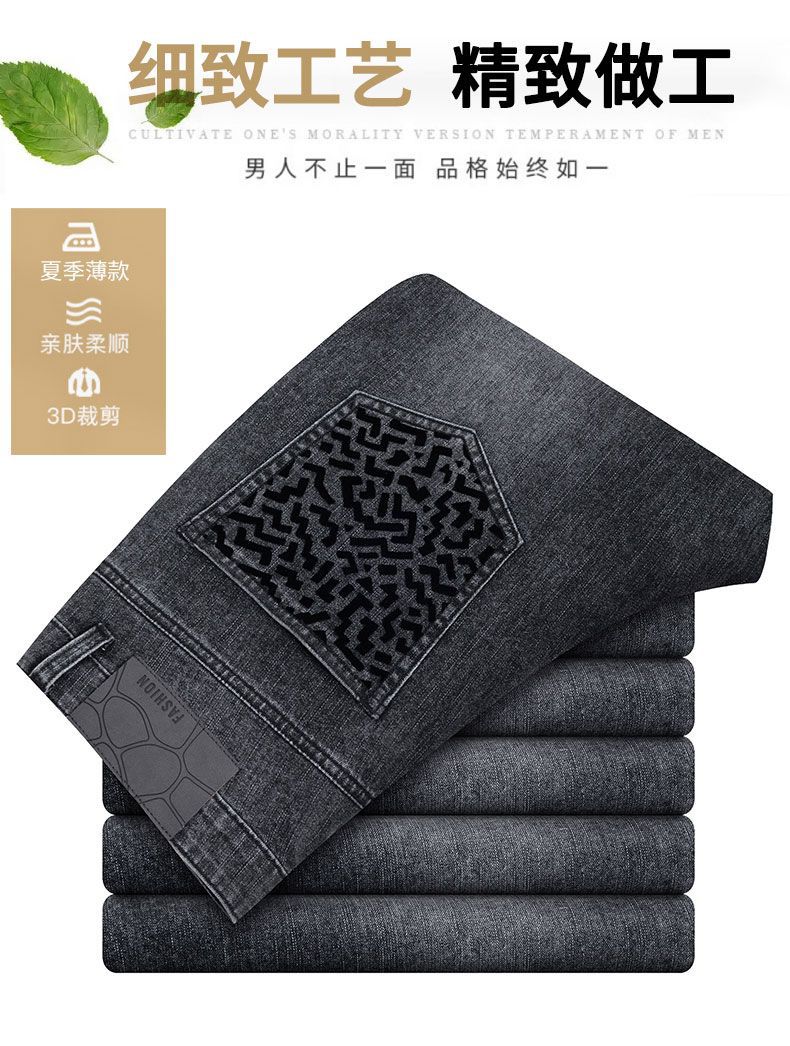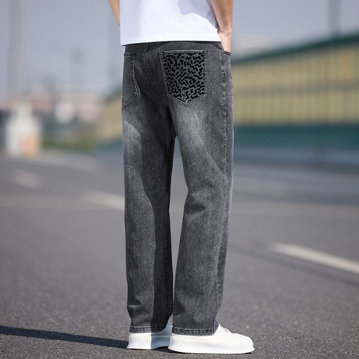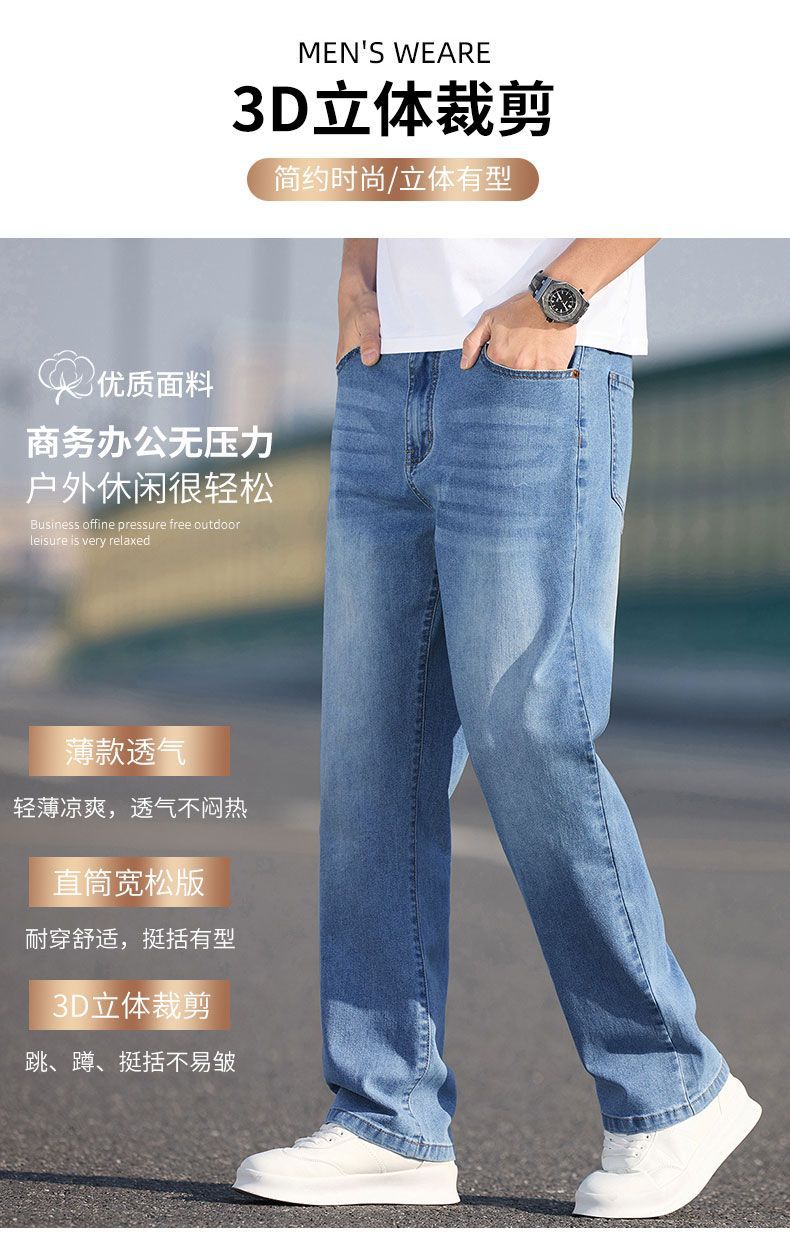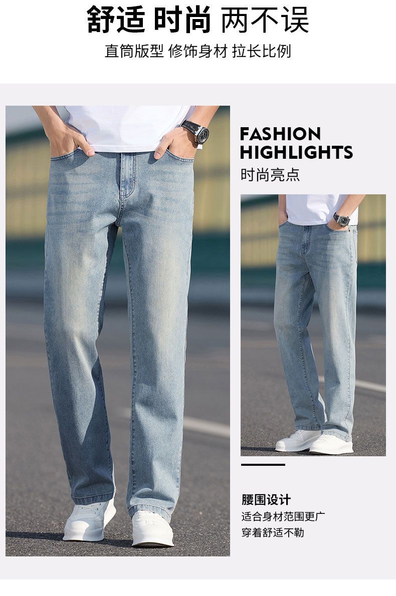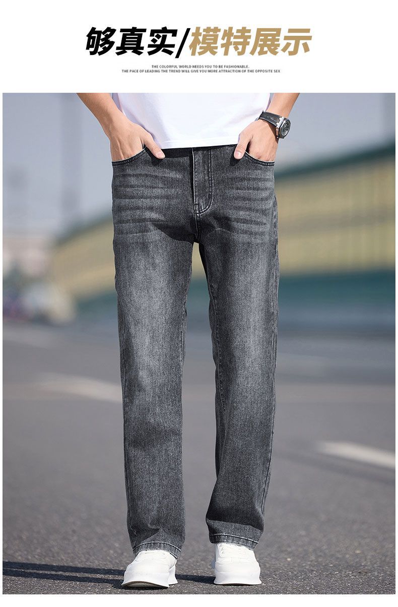 남자 청바지 느슨한 스트레이트 트렌디 브랜드 남자 2025 년 봄과 여름 새로운 올 매치 스트레치 캐주얼 롱 바지스토어 가기