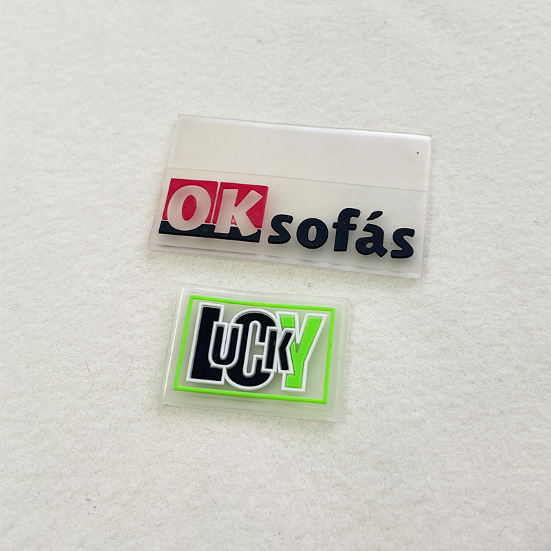 다운 재킷 완장 3 차원 투명 부드러운 고무 플라스틱 드롭 라벨 수하물 신발 및 모자 성형 라벨 라벨 PVC 상표