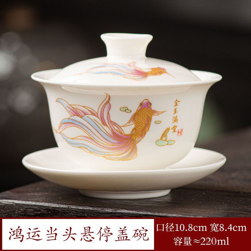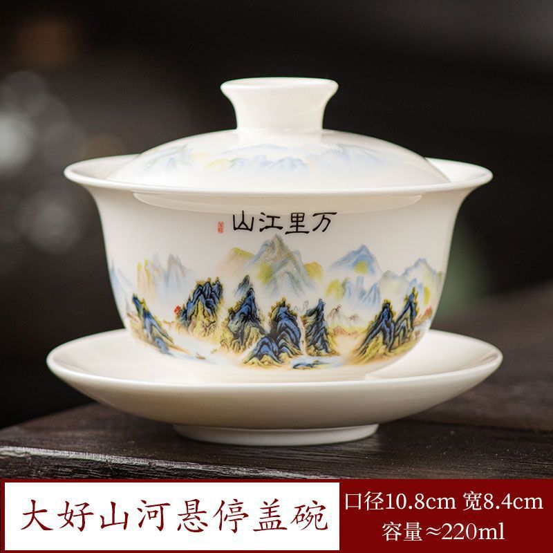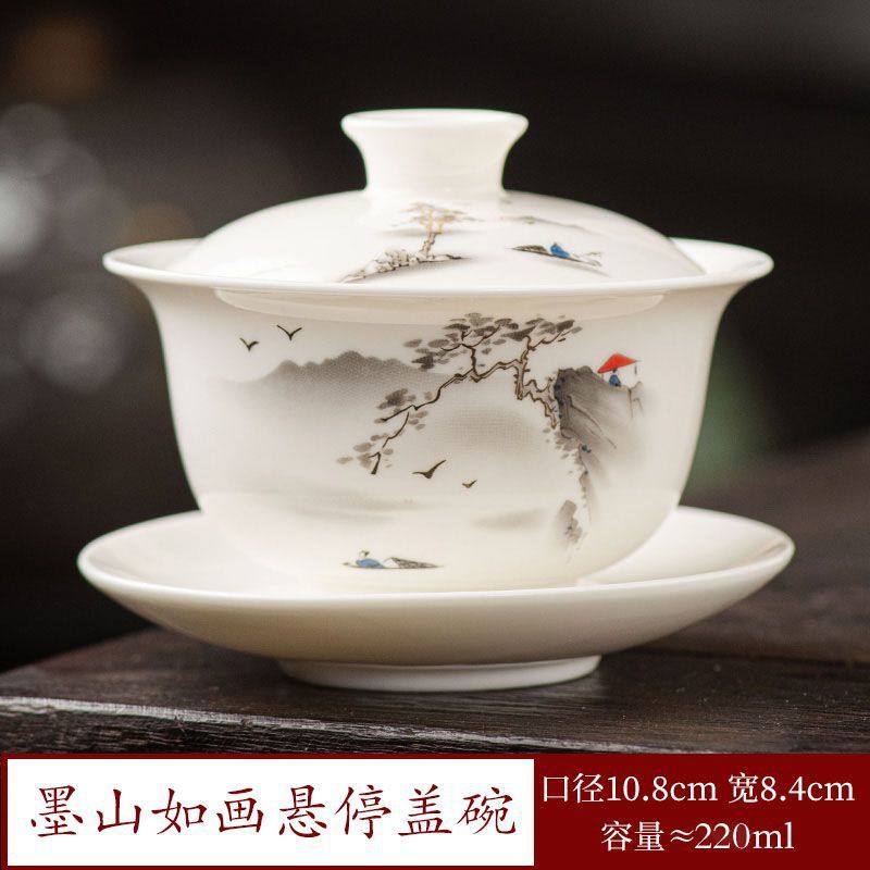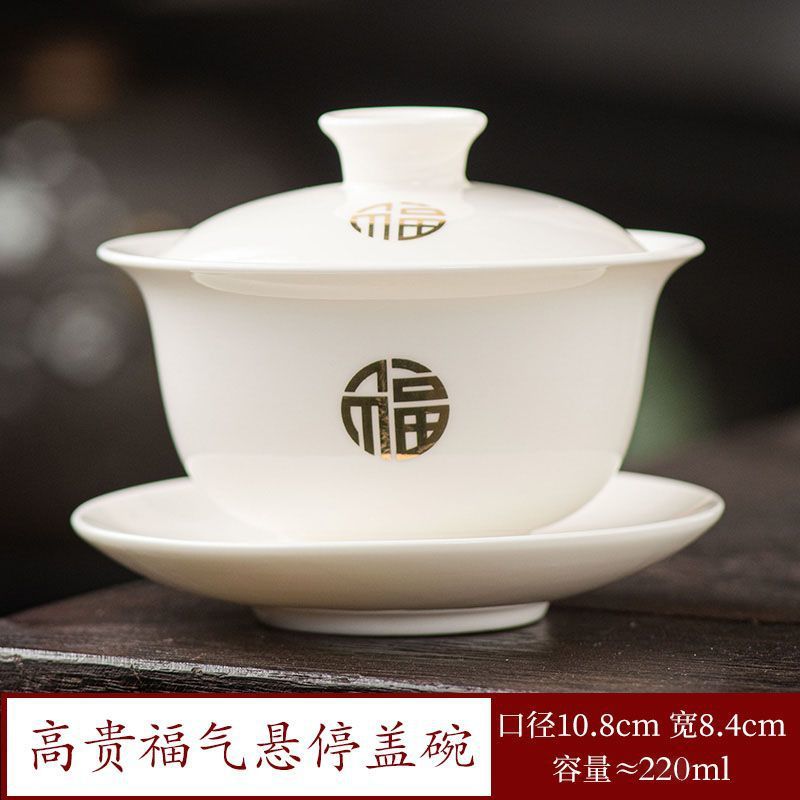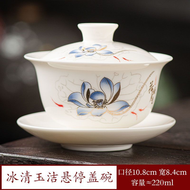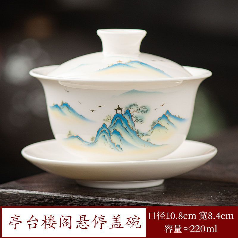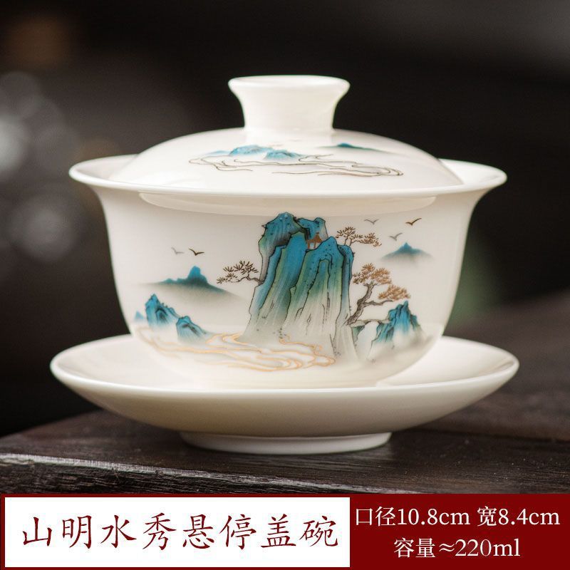 흰색 도자기 커버 그릇 손으로 그린 큰 파란색과 흰색 세라믹 순수한 흰색 차 그릇 쿵푸 차 세트 차 메이커 징콴 지스토어 가기
