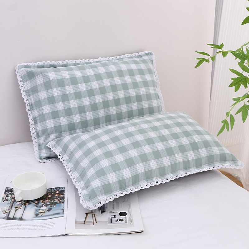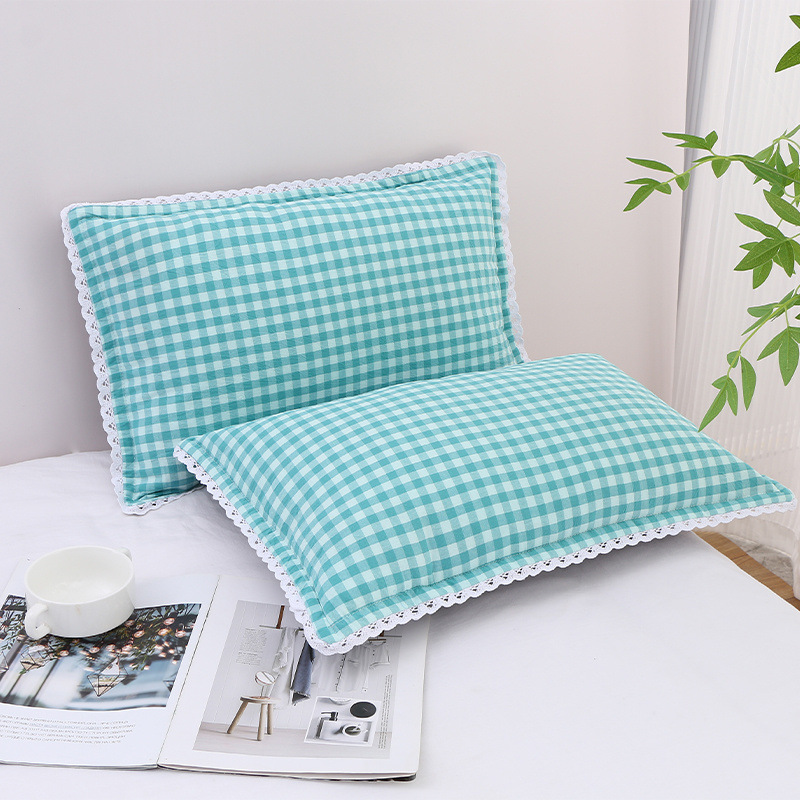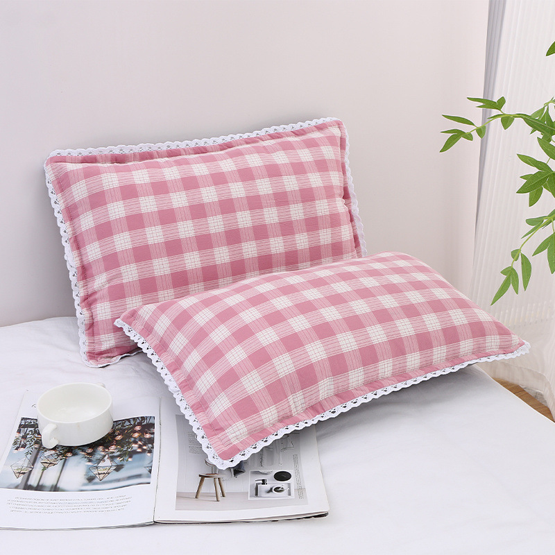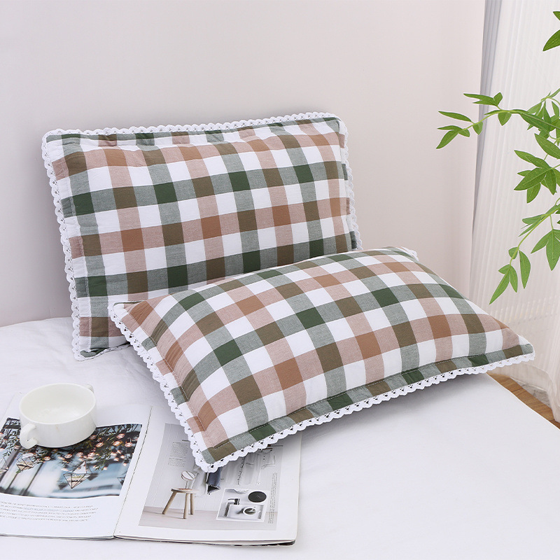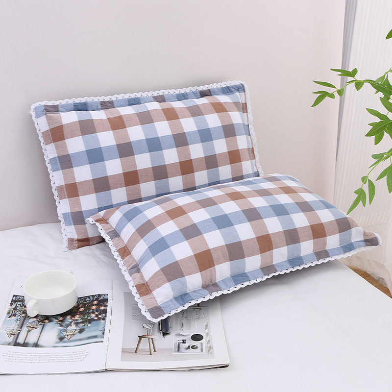 코튼 베갯벌 100 베개 타월 한 쌍의 격자 무늬 커플 베개 수건 거즈 싱글 사계절 공장 직접 판매