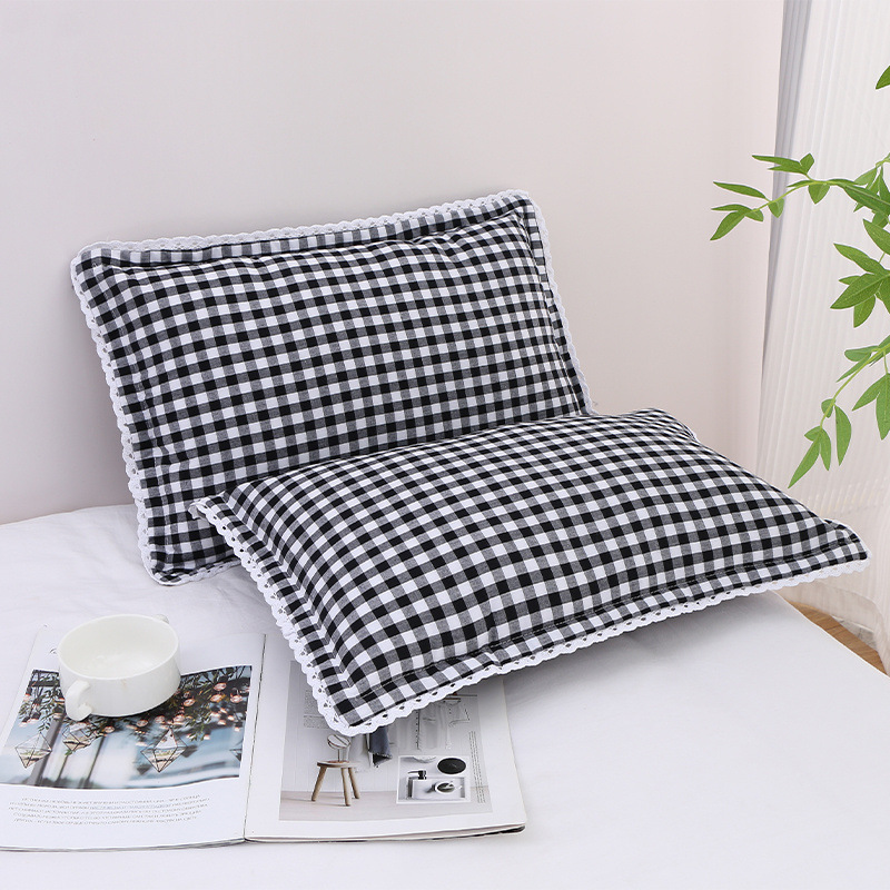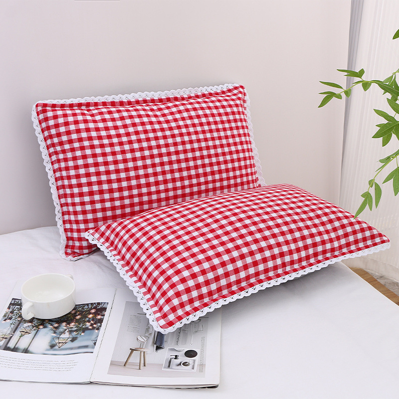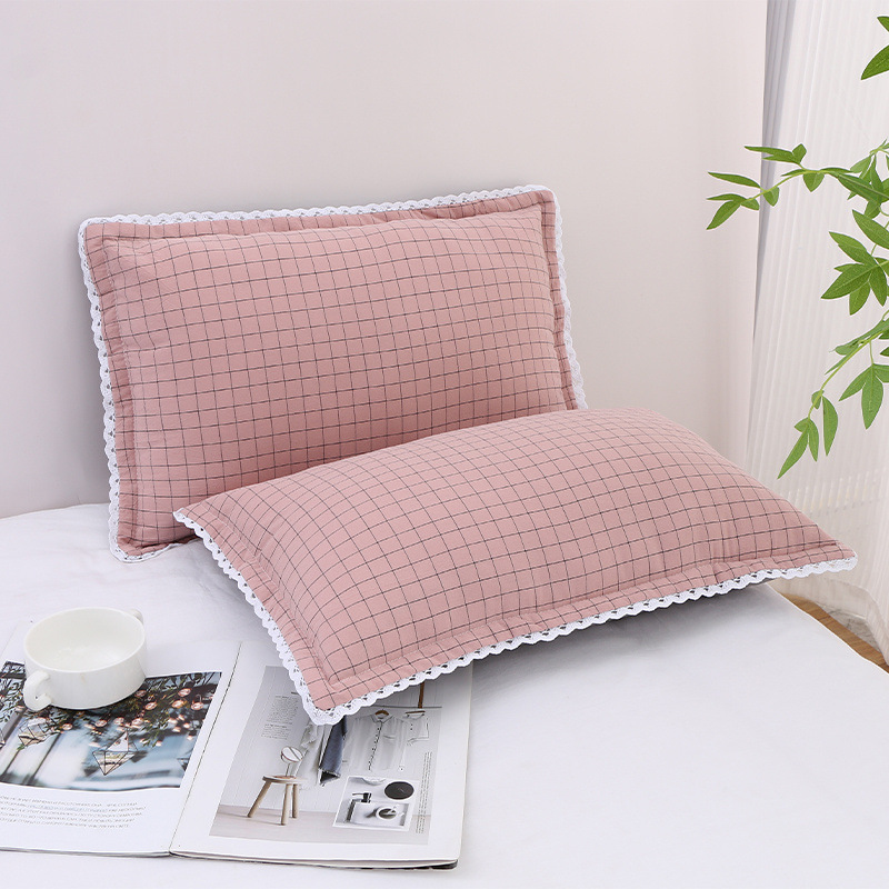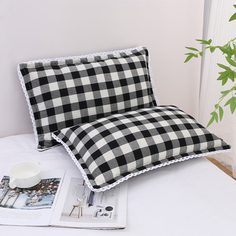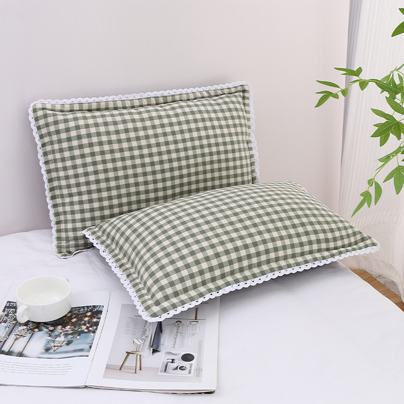 코튼 베갯벌 100 베개 타월 한 쌍의 격자 무늬 커플 베개 수건 거즈 싱글 사계절 공장 직접 판매