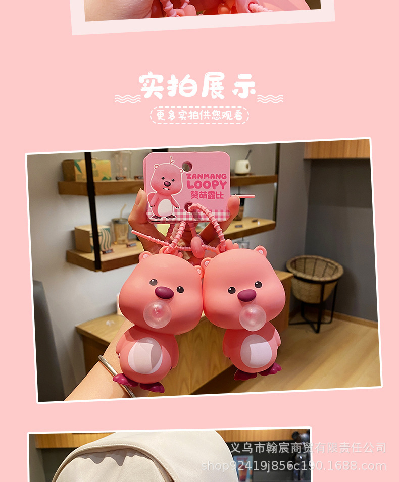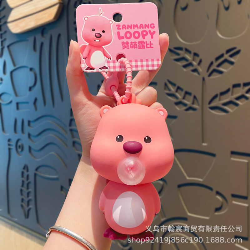 새로운 루비 침 거품 압축 핀치 르 리틀 비버 키 체인 배낭 펜던트 어린이 귀여운 곰 장난감스토어 가기