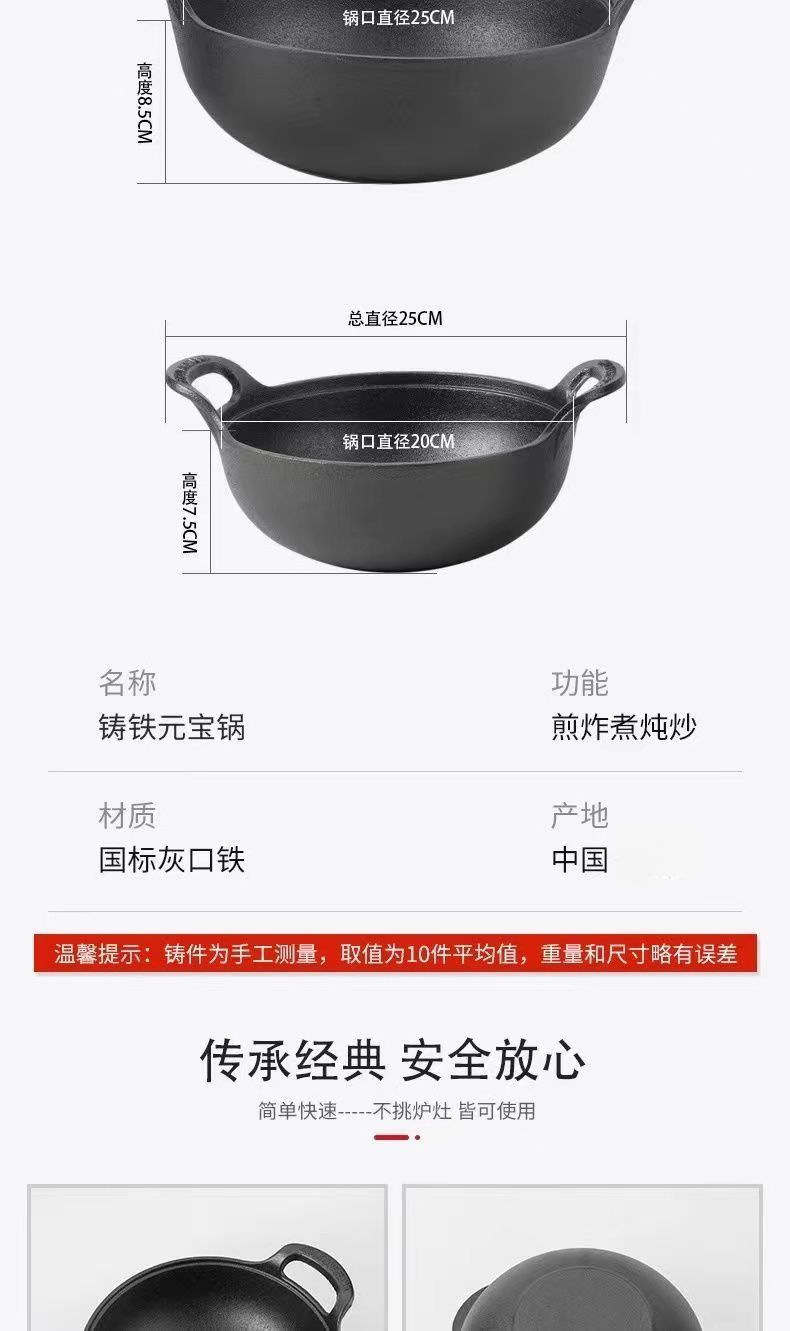 주철 Yuanbao 냄비 작은 강철 캐논 바이노럴 스튜 팬 프라이팬 비 스틱 팬 가스 유도 쿠커 유니버설 작은 철 팬 코팅스토어 가기