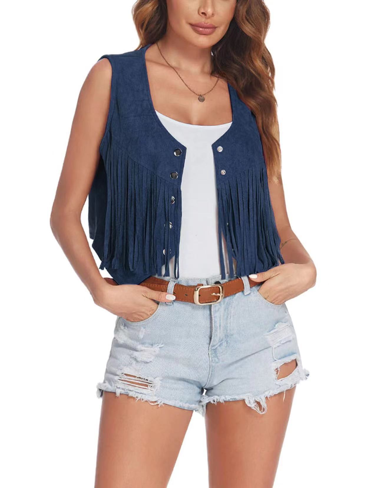 국경 간 공장 2025 짧은 술 조끼 유럽과 미국의 폭발 여성 여름 새로운 레저 복고풍 버튼 도매