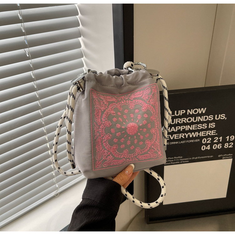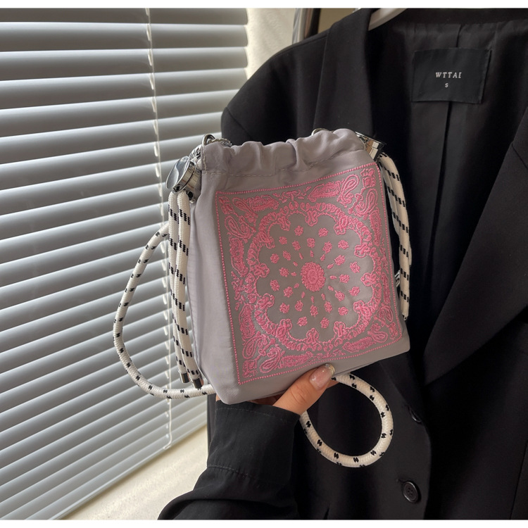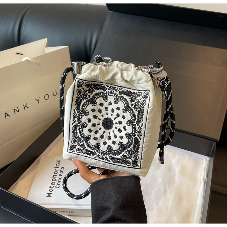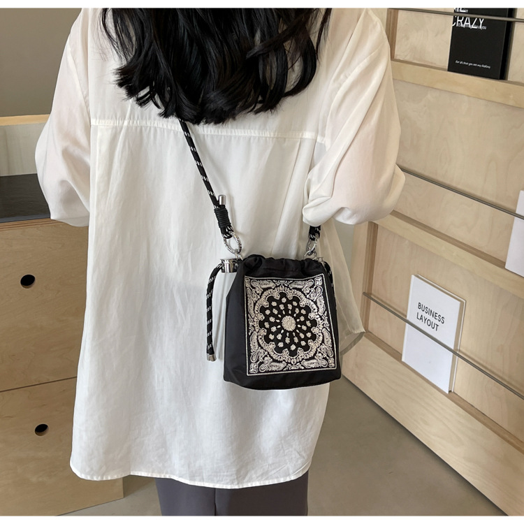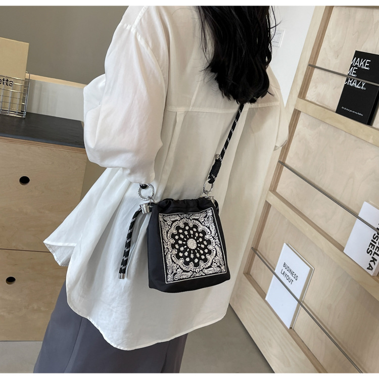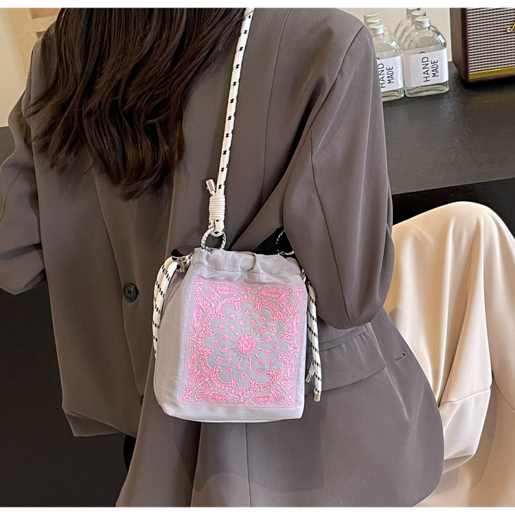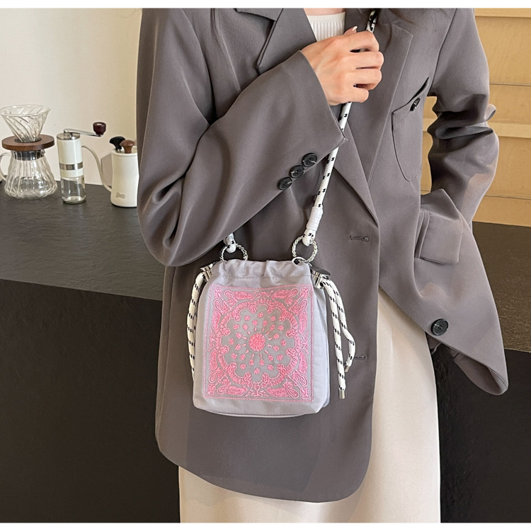 국경 간 여름 새로운 스타일 중국 자수 캔버스 가방 여성 캐주얼 올 매치 어깨 크로스 백 통근 휴대 전화 가방