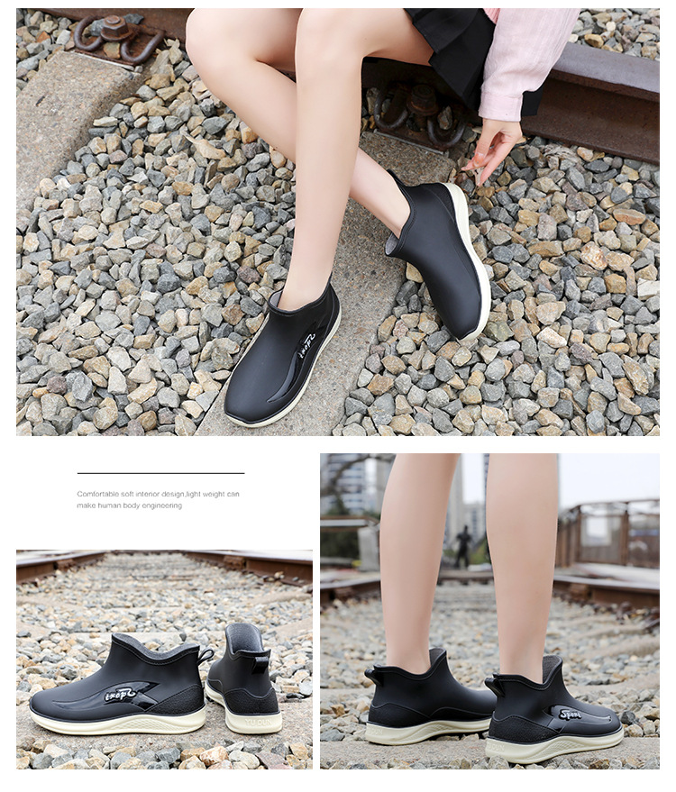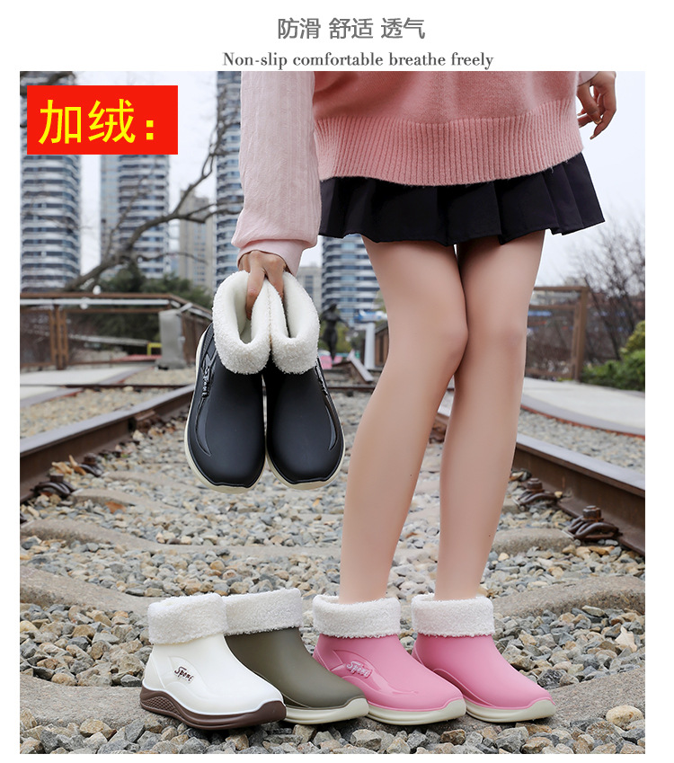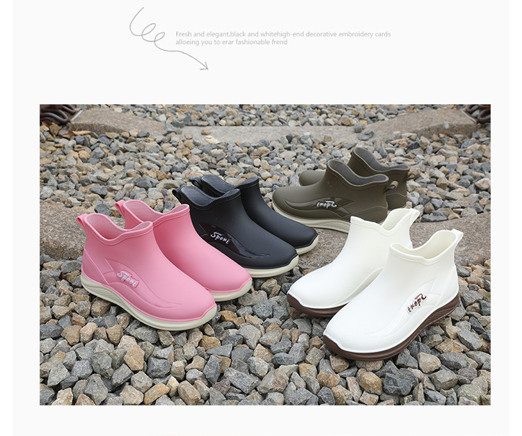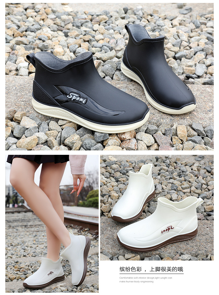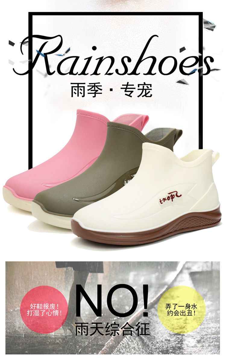 여성용 비 신발 새로운 부드러운 바닥 방수 내마모성 수화 미끄럼 방지 주방 경량 고무 신발 두꺼운 바닥 짧은 장화스토어 가기