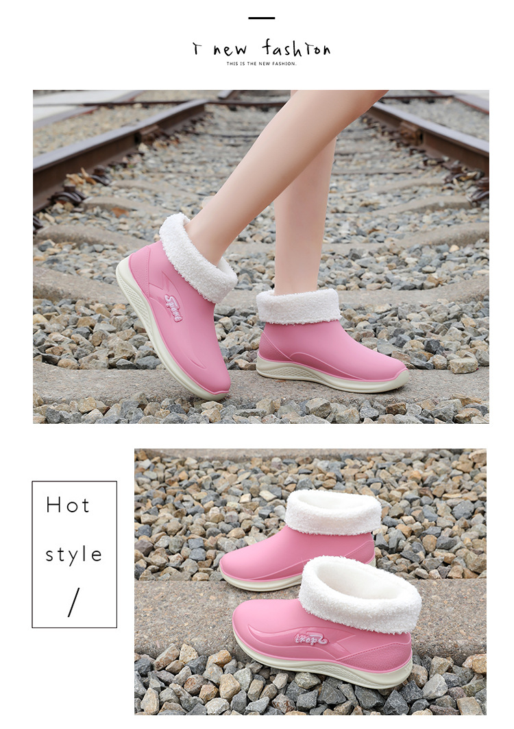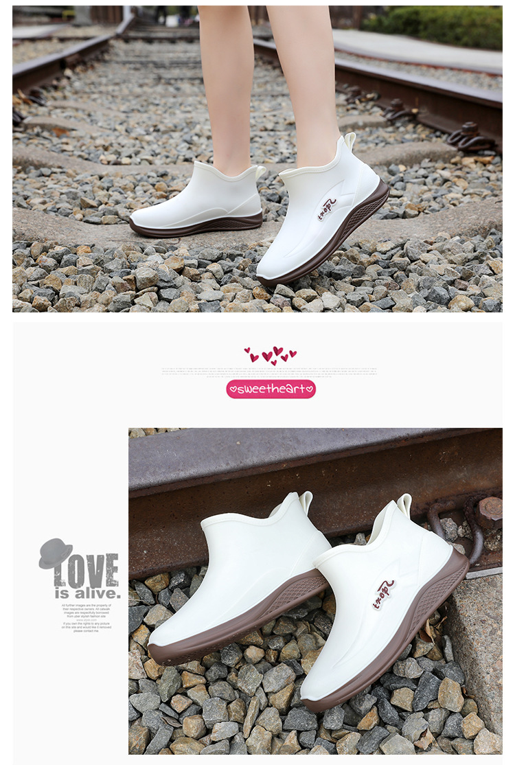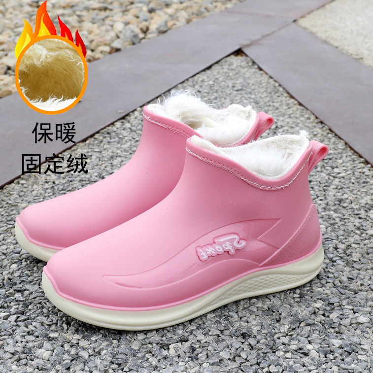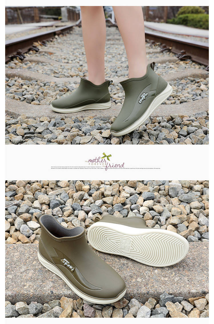 여성용 비 신발 새로운 부드러운 바닥 방수 내마모성 수화 미끄럼 방지 주방 경량 고무 신발 두꺼운 바닥 짧은 장화스토어 가기
