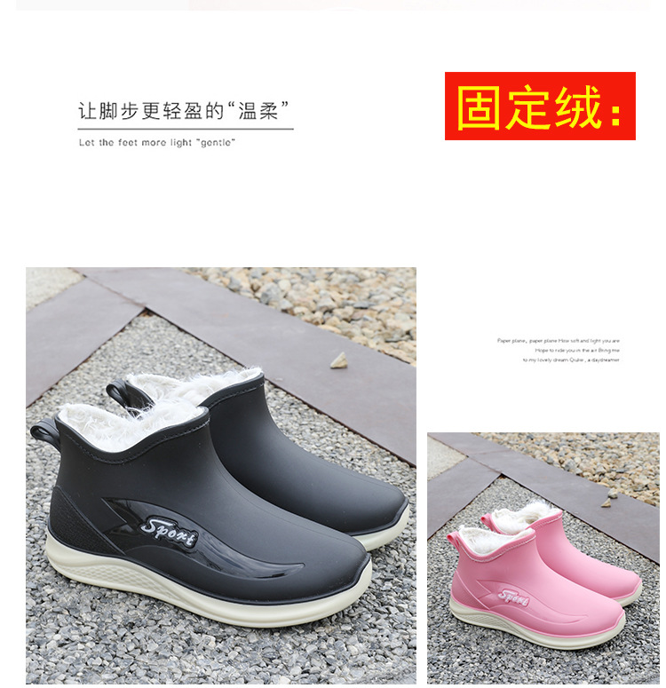 여성용 비 신발 새로운 부드러운 바닥 방수 내마모성 수화 미끄럼 방지 주방 경량 고무 신발 두꺼운 바닥 짧은 장화