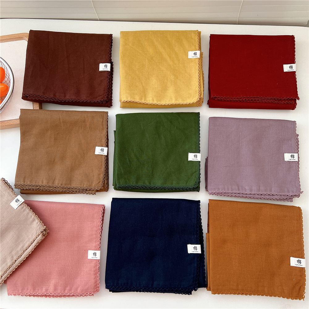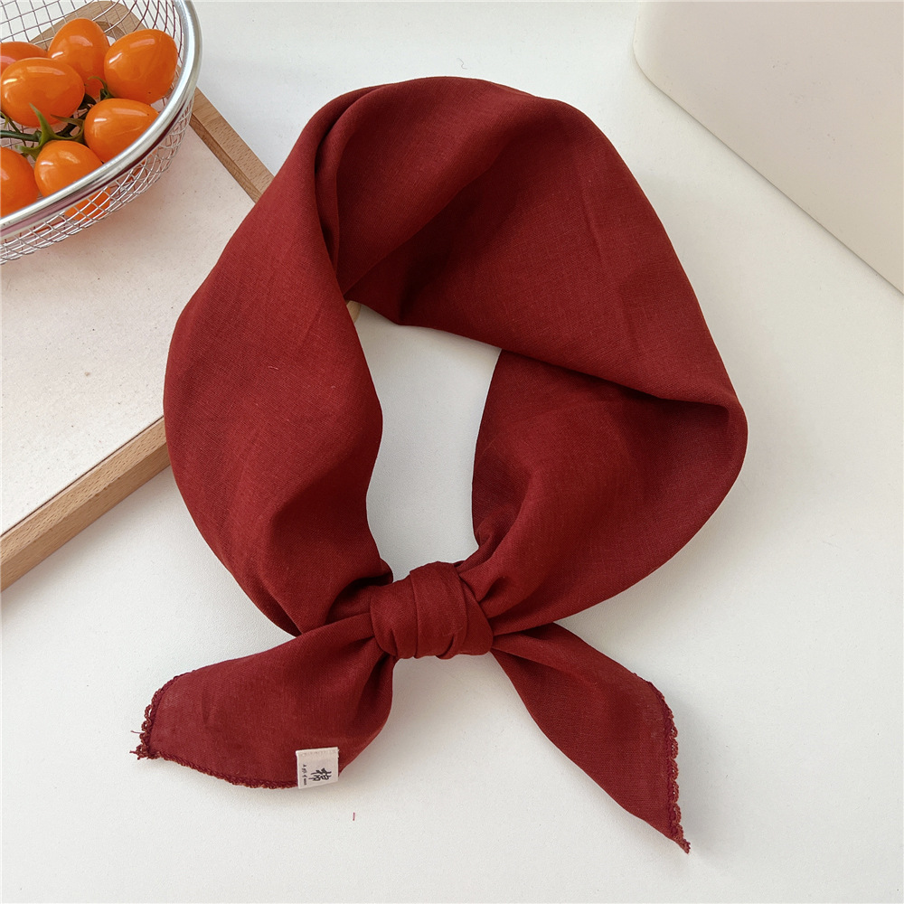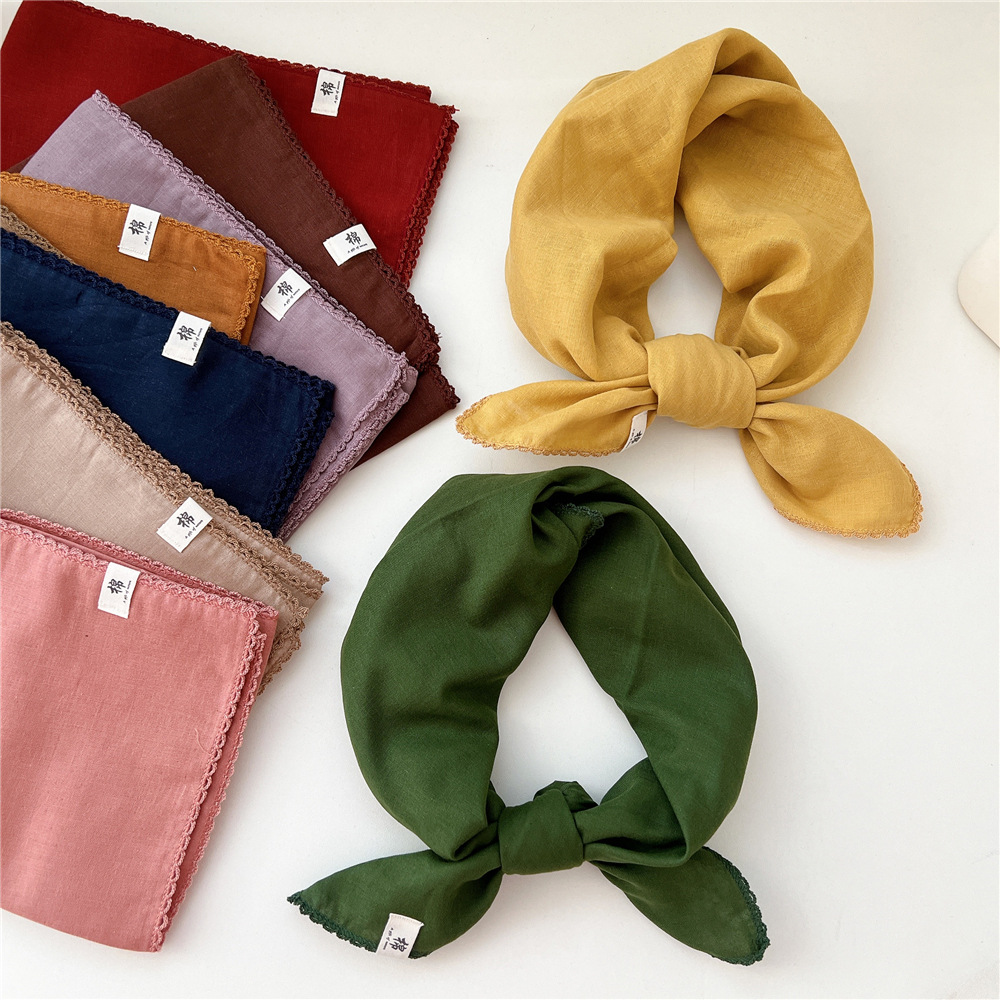 68 단색 한국 패션 우아한면과 리넨 작은 광장 여성 전문 장식 스카프 목도리 봄과 가을 스카프