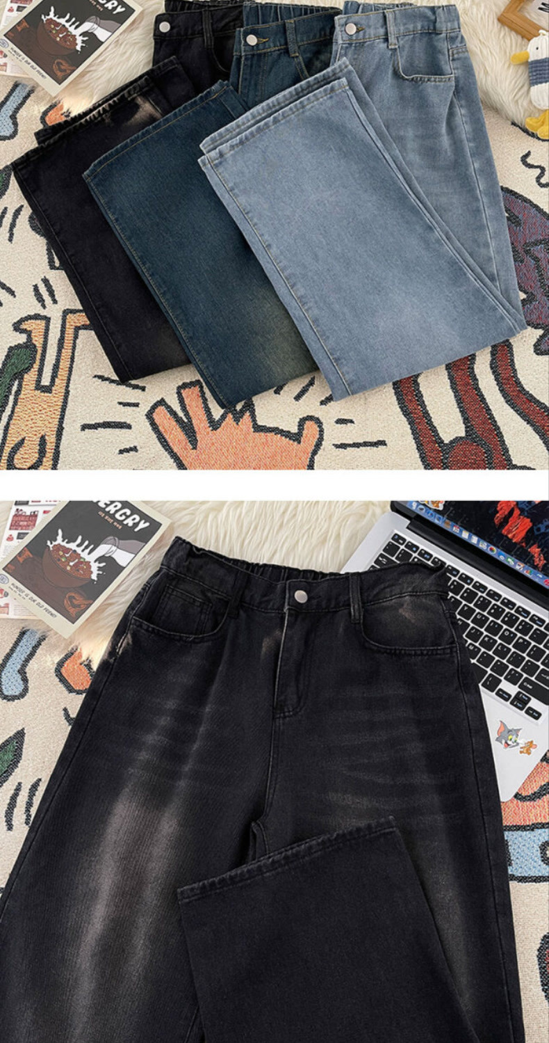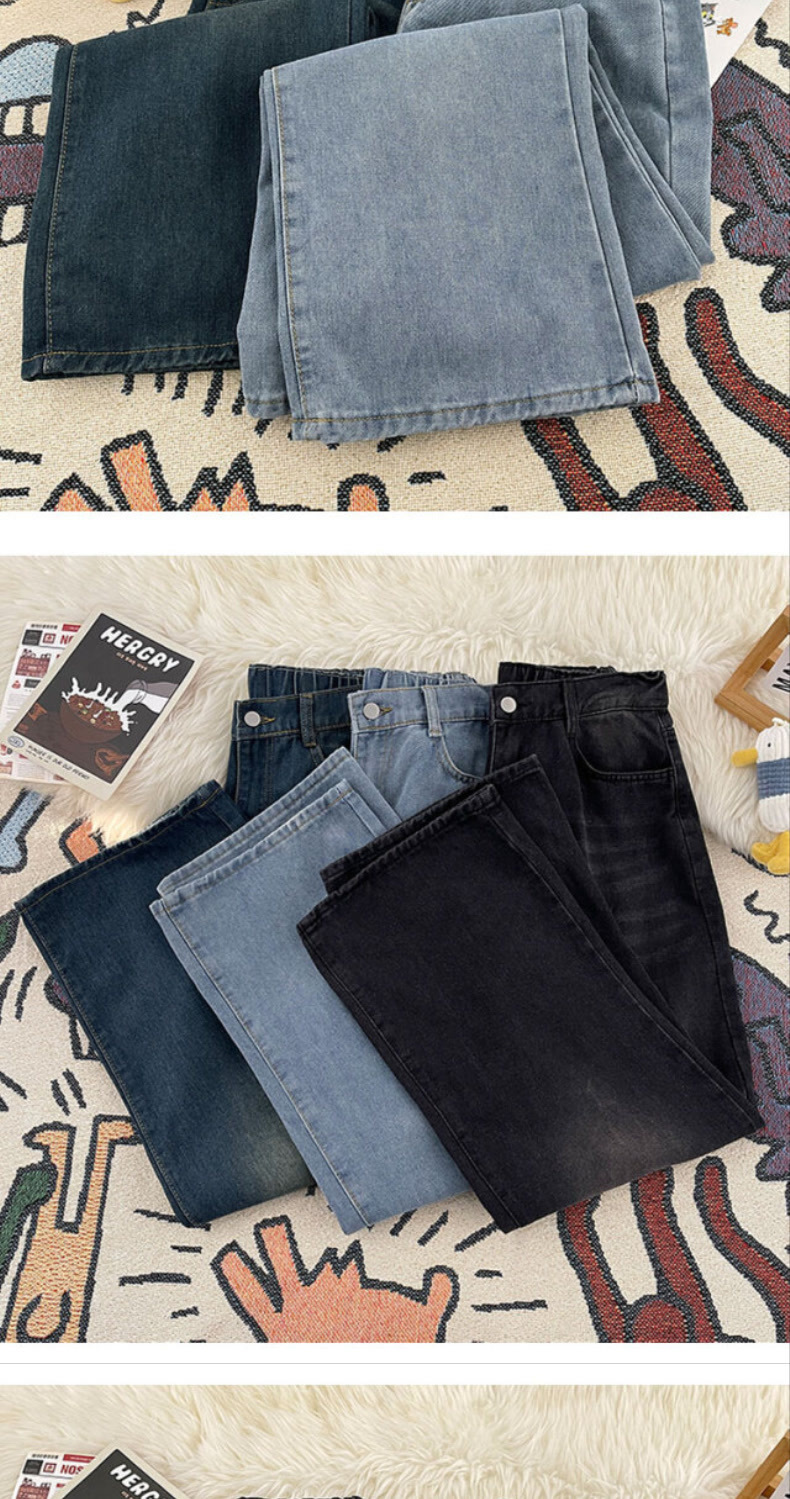 높은 허리 넓은 다리 청바지 여성의 봄과 가을 새로운 느슨한 슬리밍 스트레이트 튜브 트렌디 긴 바지스토어 가기