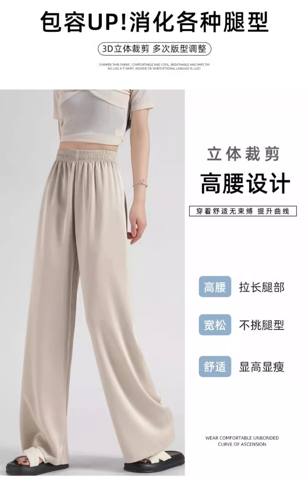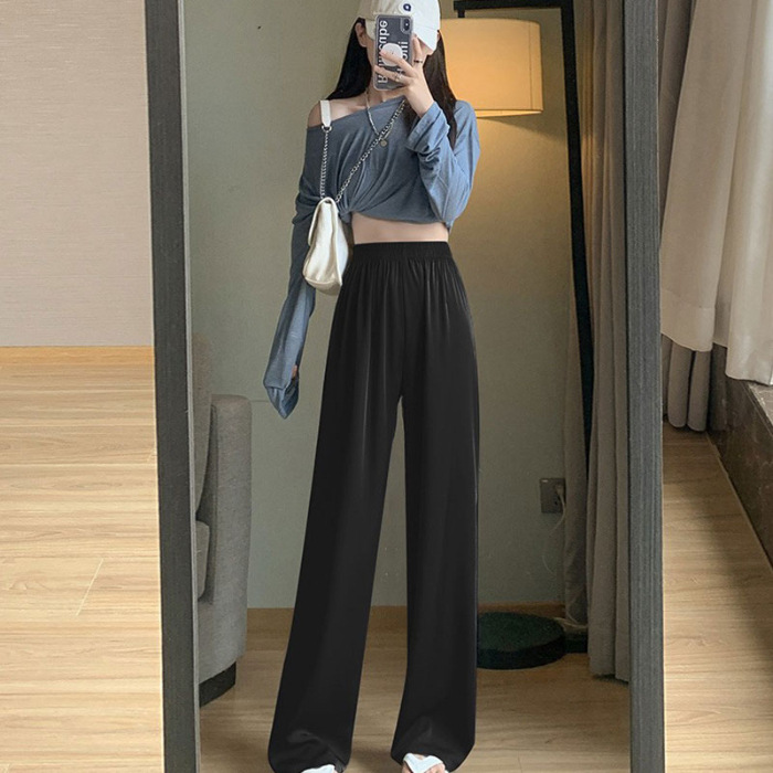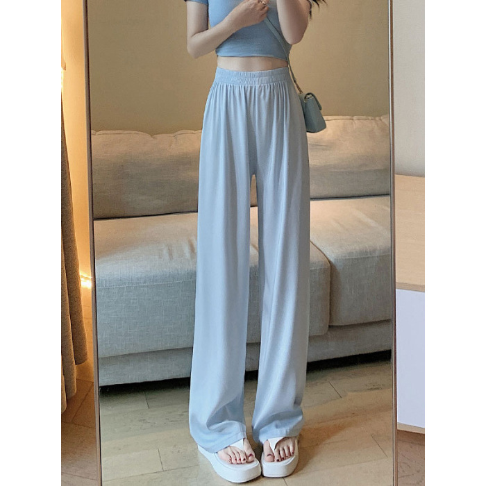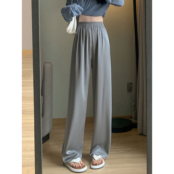 아세트산 새틴 넓은 다리 바지 여자 2025 새로운 여름 얇은 높은 허리 더미 쿨 선스크린 캐주얼 아이스 실크 바지